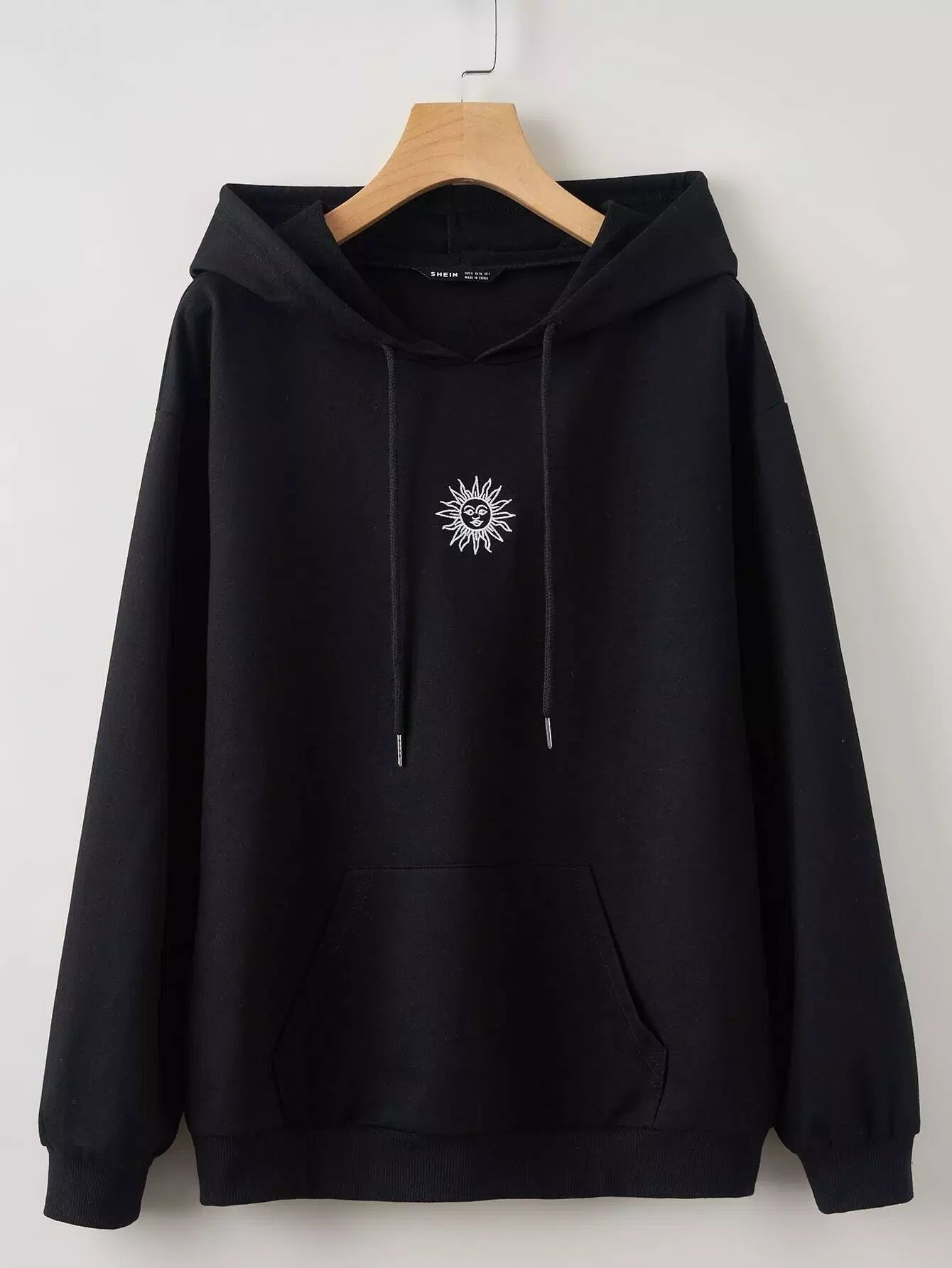 Sun Print Kangaroo Pocket Drawstring Hoodie