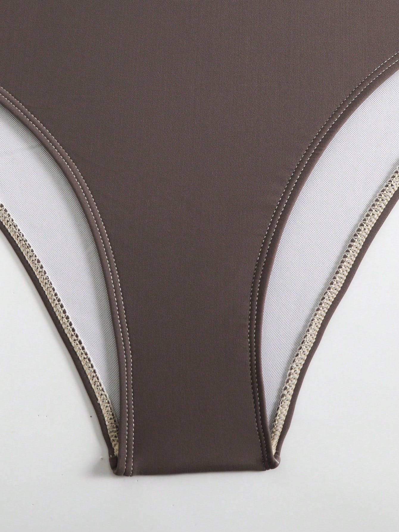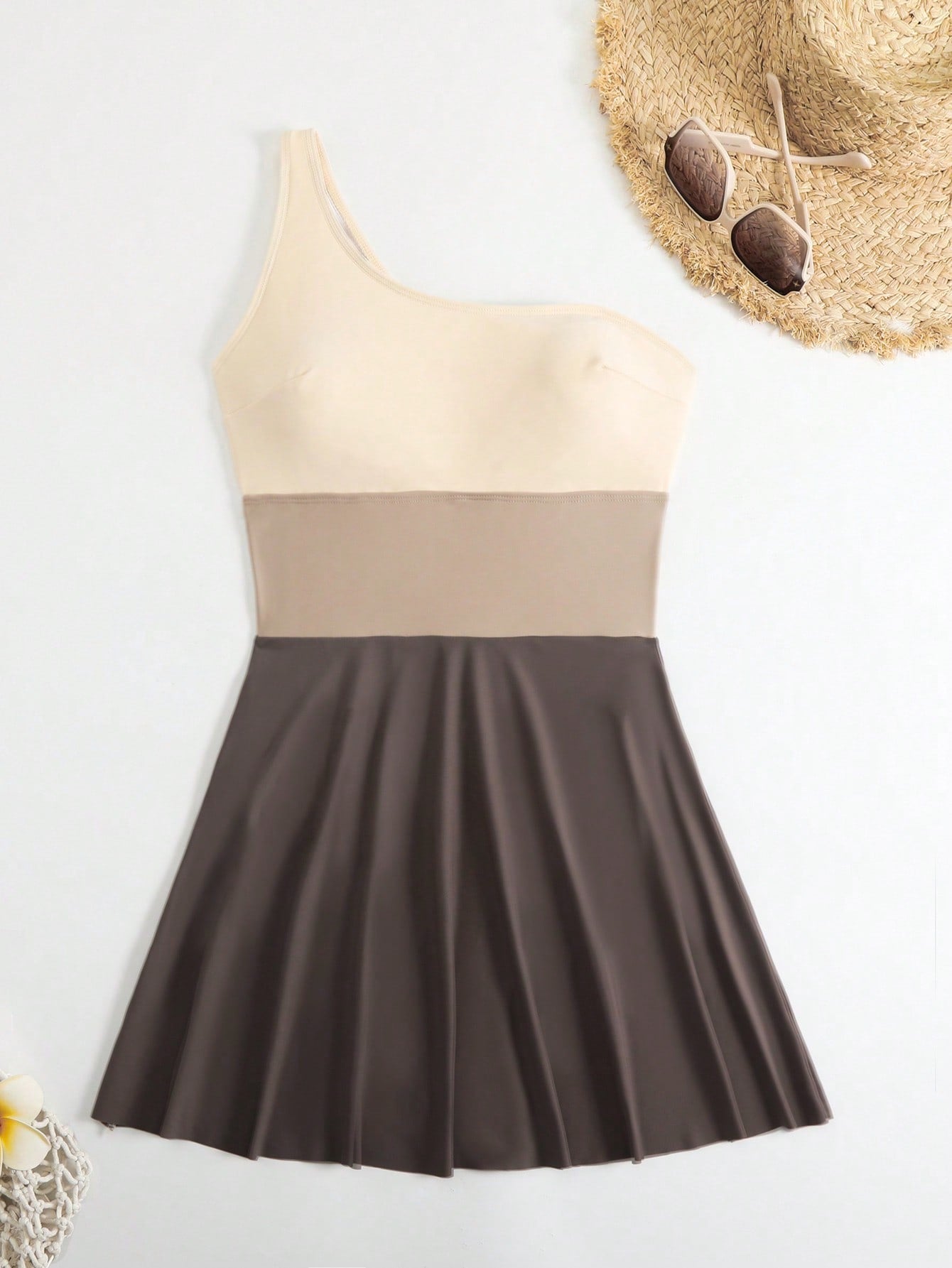 Swim Lushoire 1pc Women's Multi-Color Patchwork Design Spaghetti Strap Tankini Swimsuit Summer