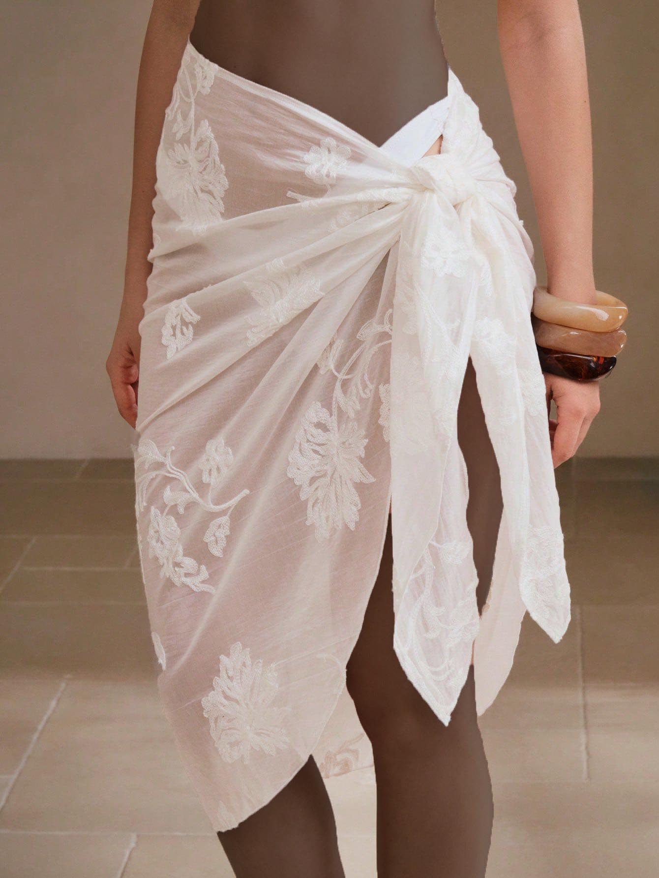 Swim Oasis Floral Embroidery Cover-Up Skirt, Vacation Style For Summer