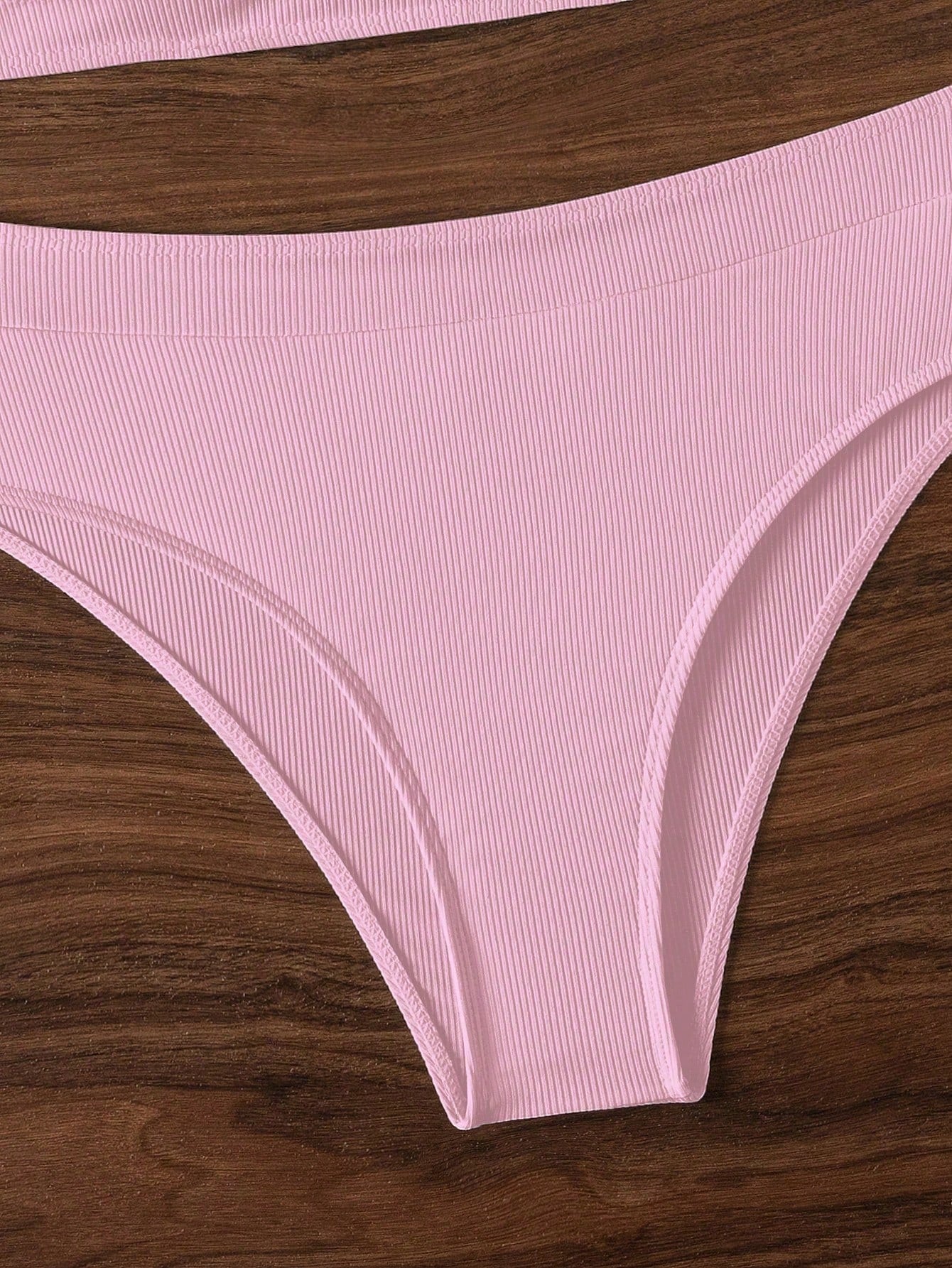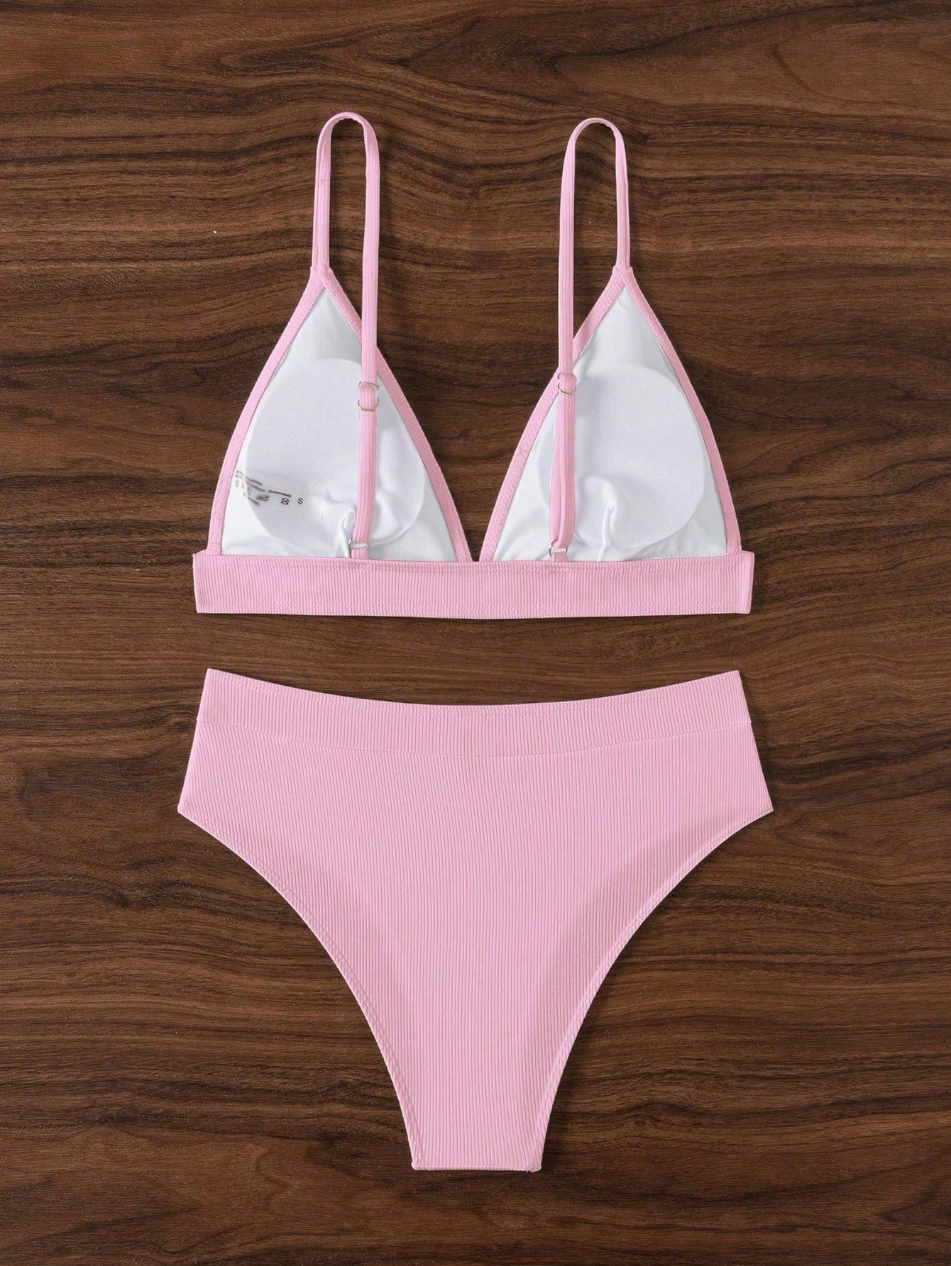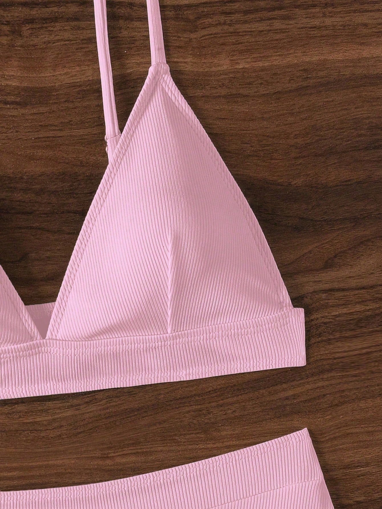 Swim Women's Solid Color Sexy Bikini Set For Summer Beach, Wireless