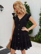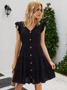 Swiss Dot Ruffle Trim Button Up A-Line Dress