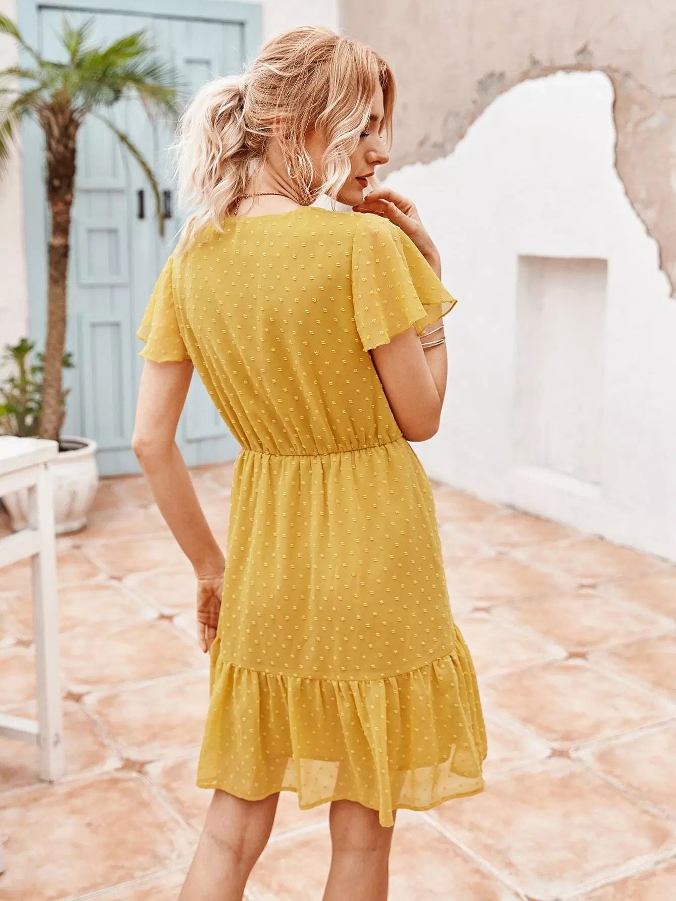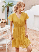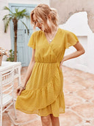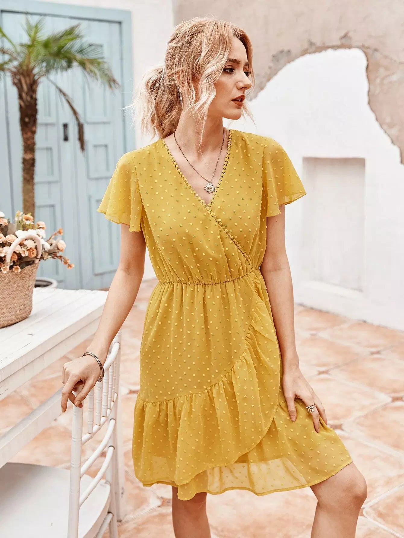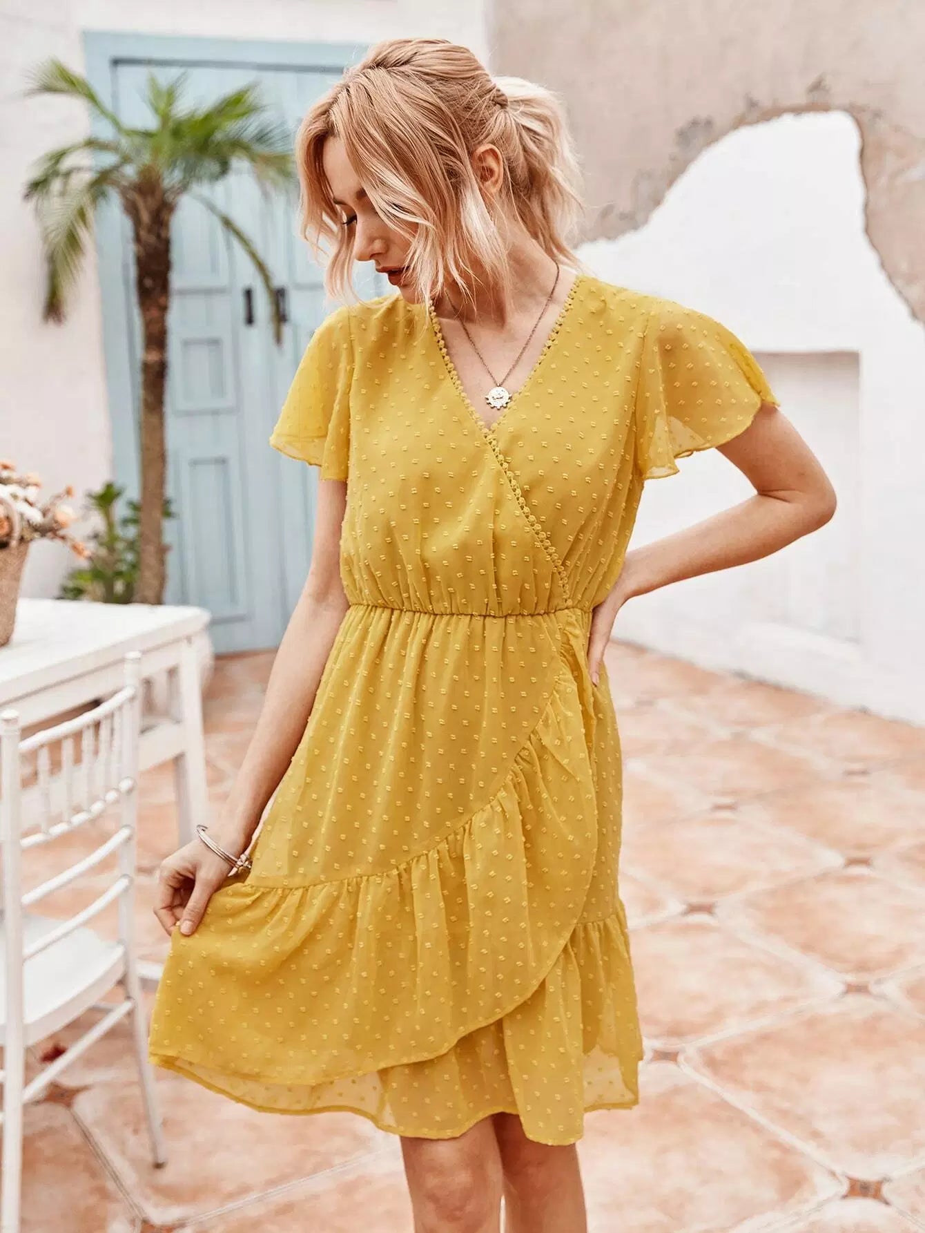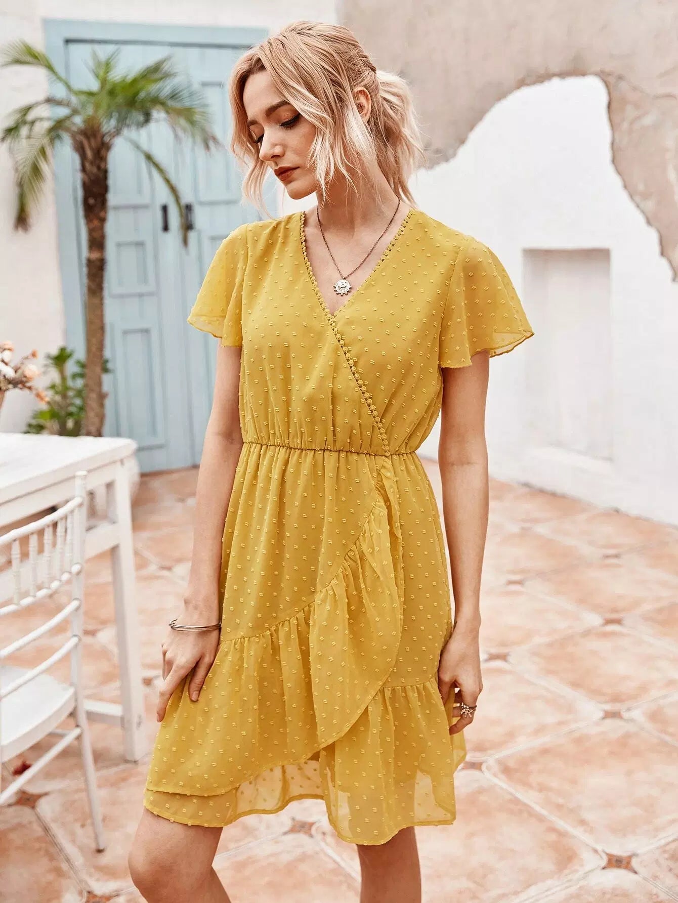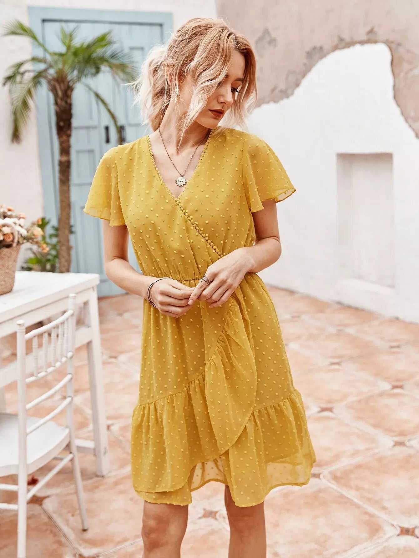 Swiss Dot Solid Wrap Dress