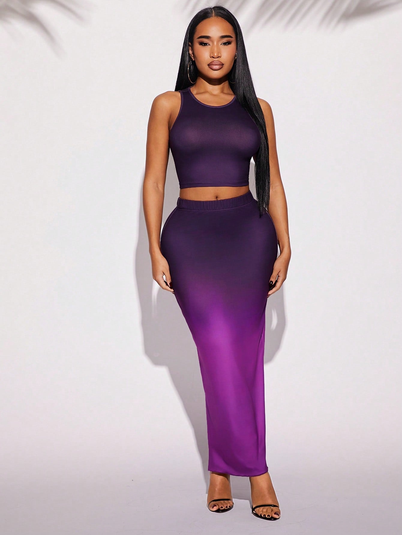 SXY Women's Purple Ombre Two Pieces Set: Sleeveless Crop Top And Maxi Skirt Co-Ord Set
