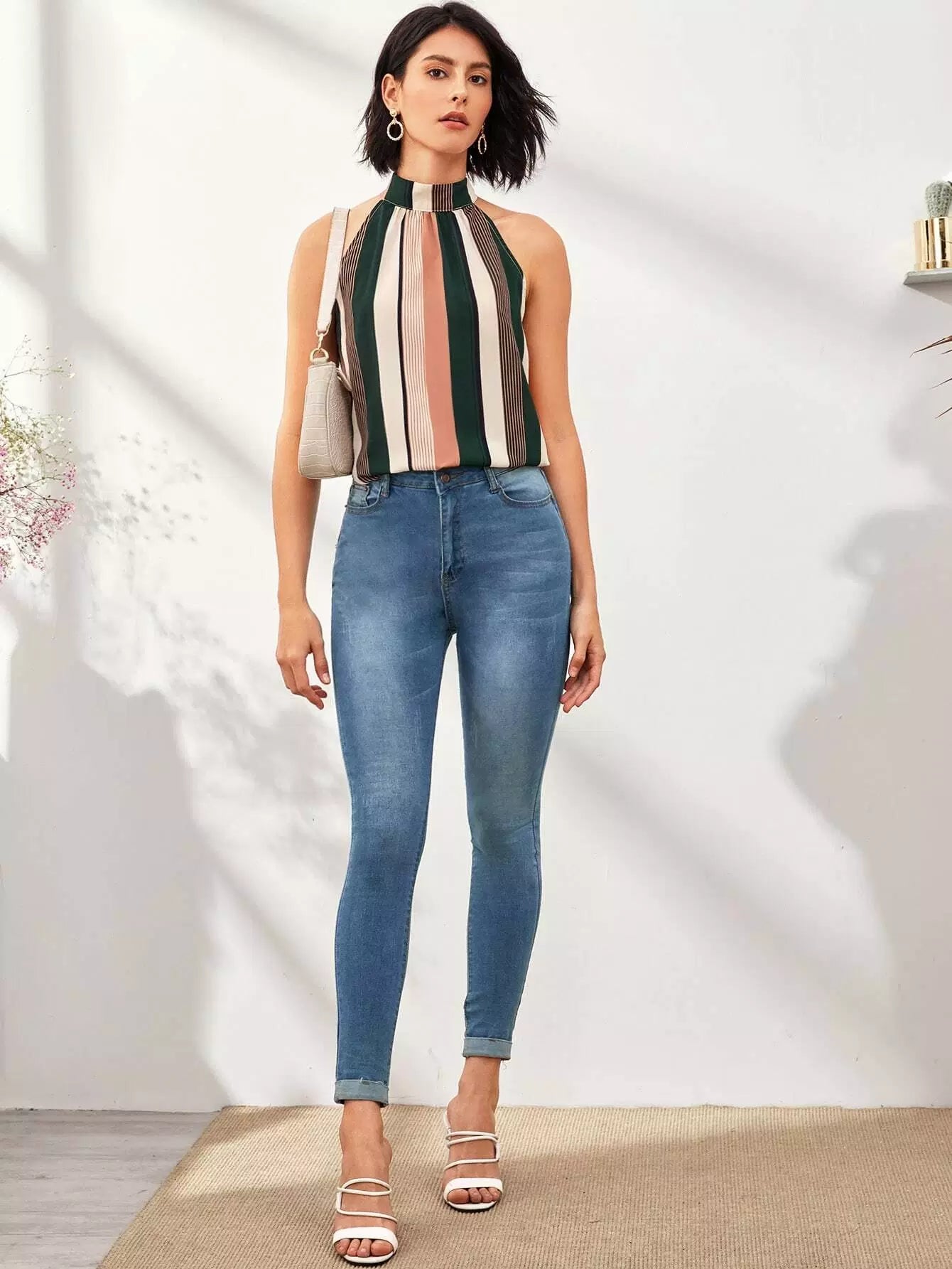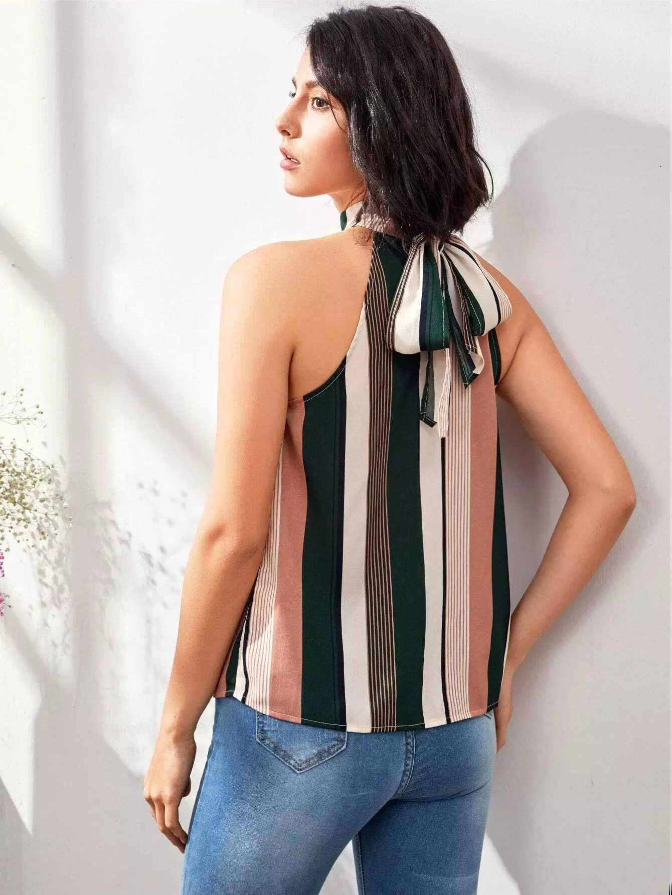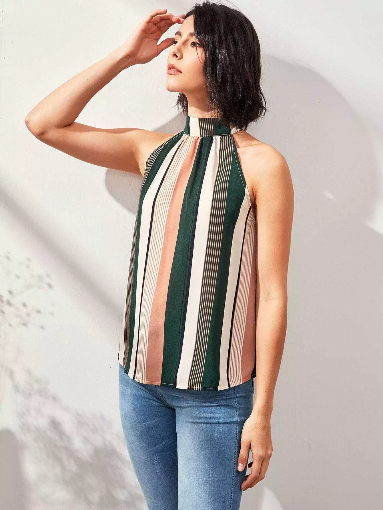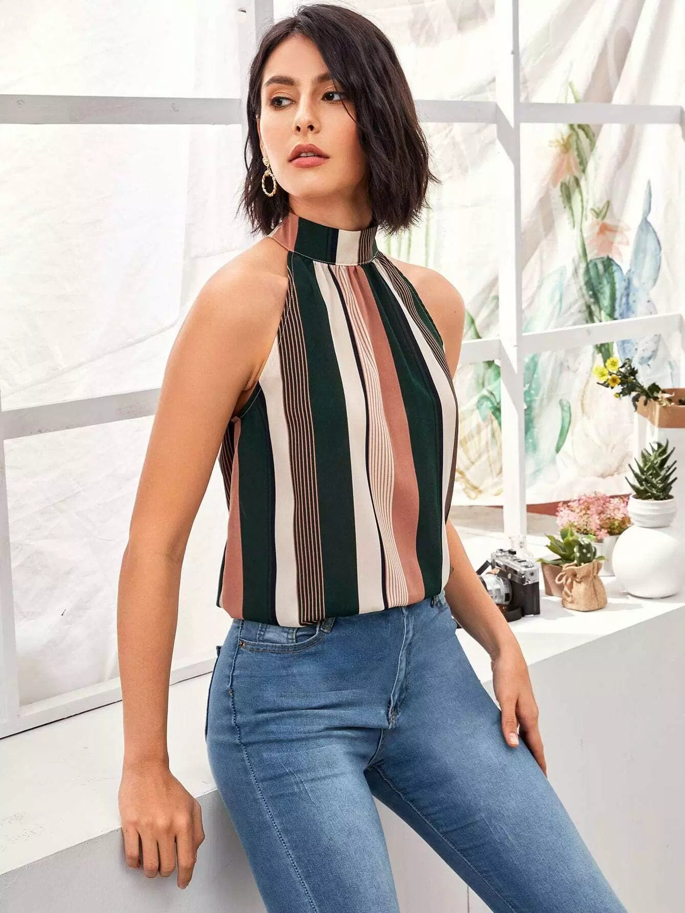 Tie Back Striped Halter Top