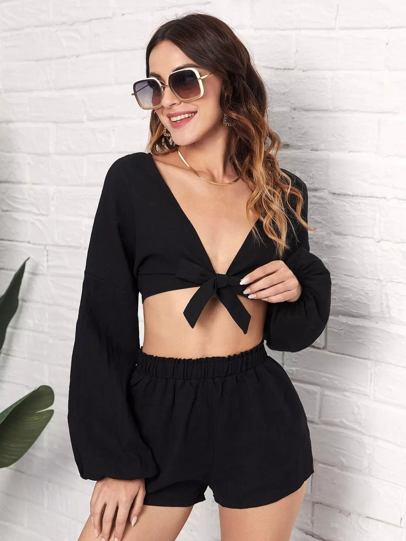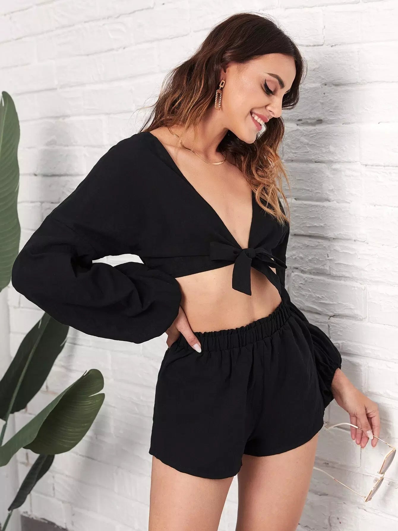 Tie Front Crop Top & Shorts
