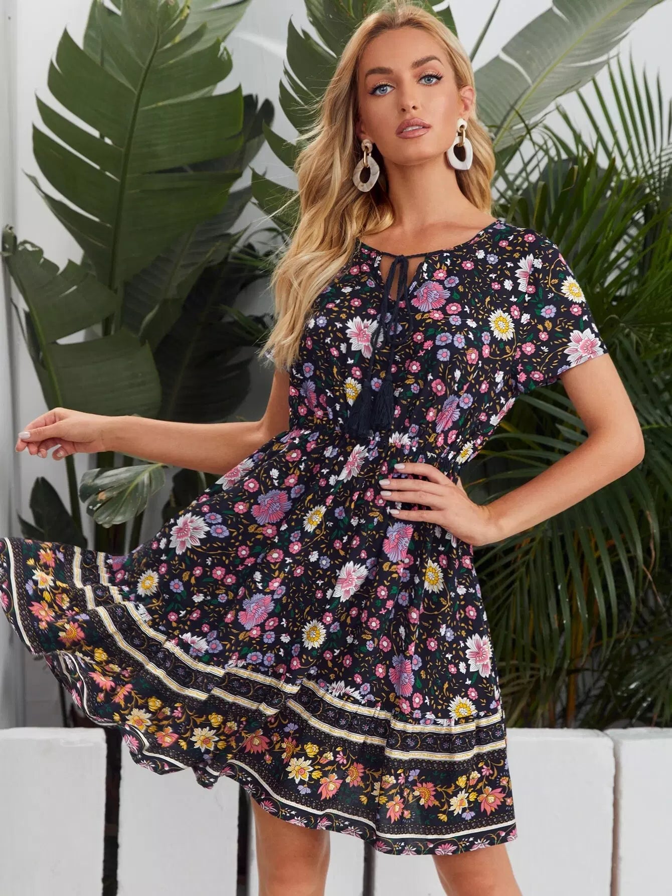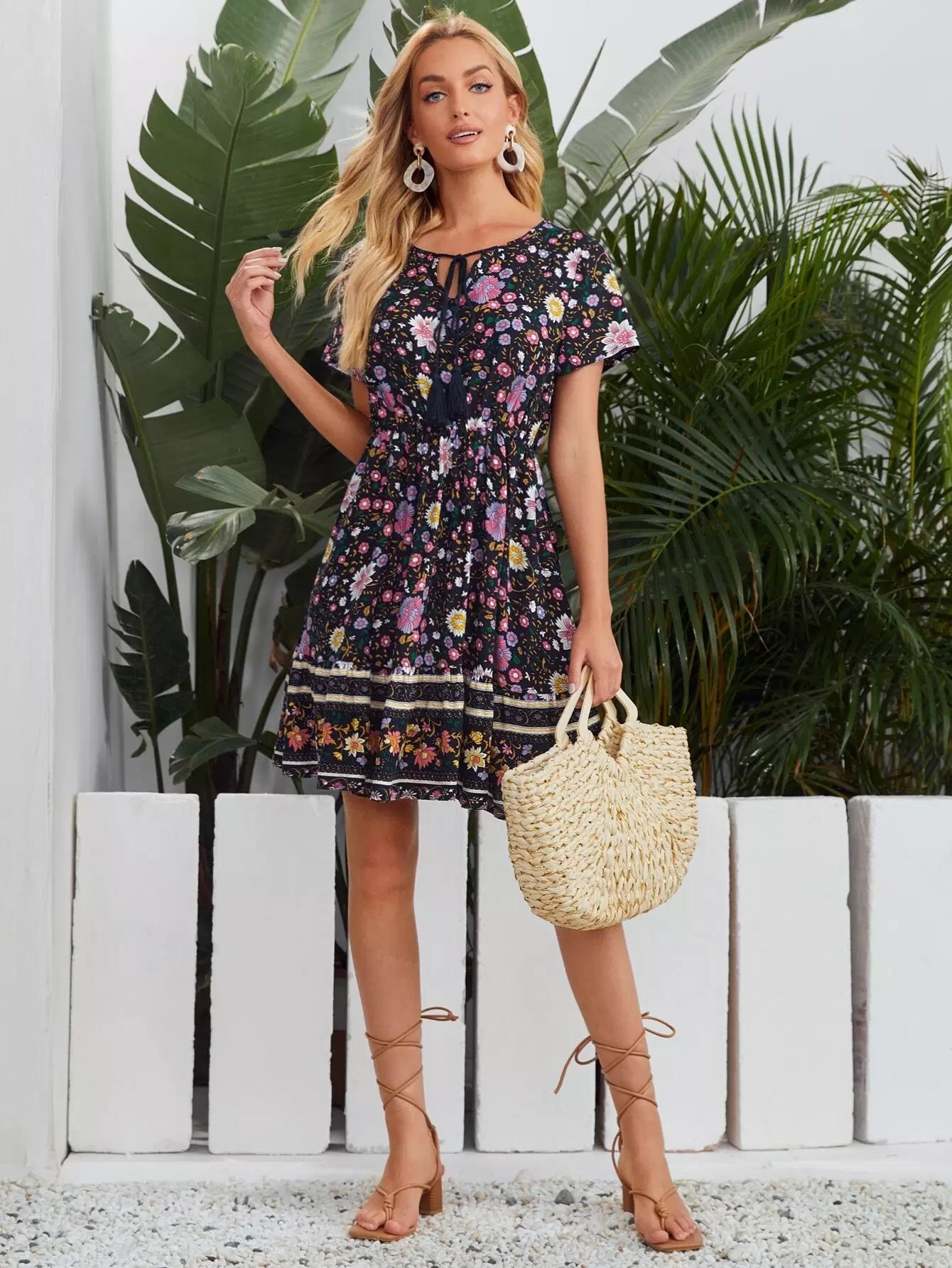 Tie Neck Floral Dress