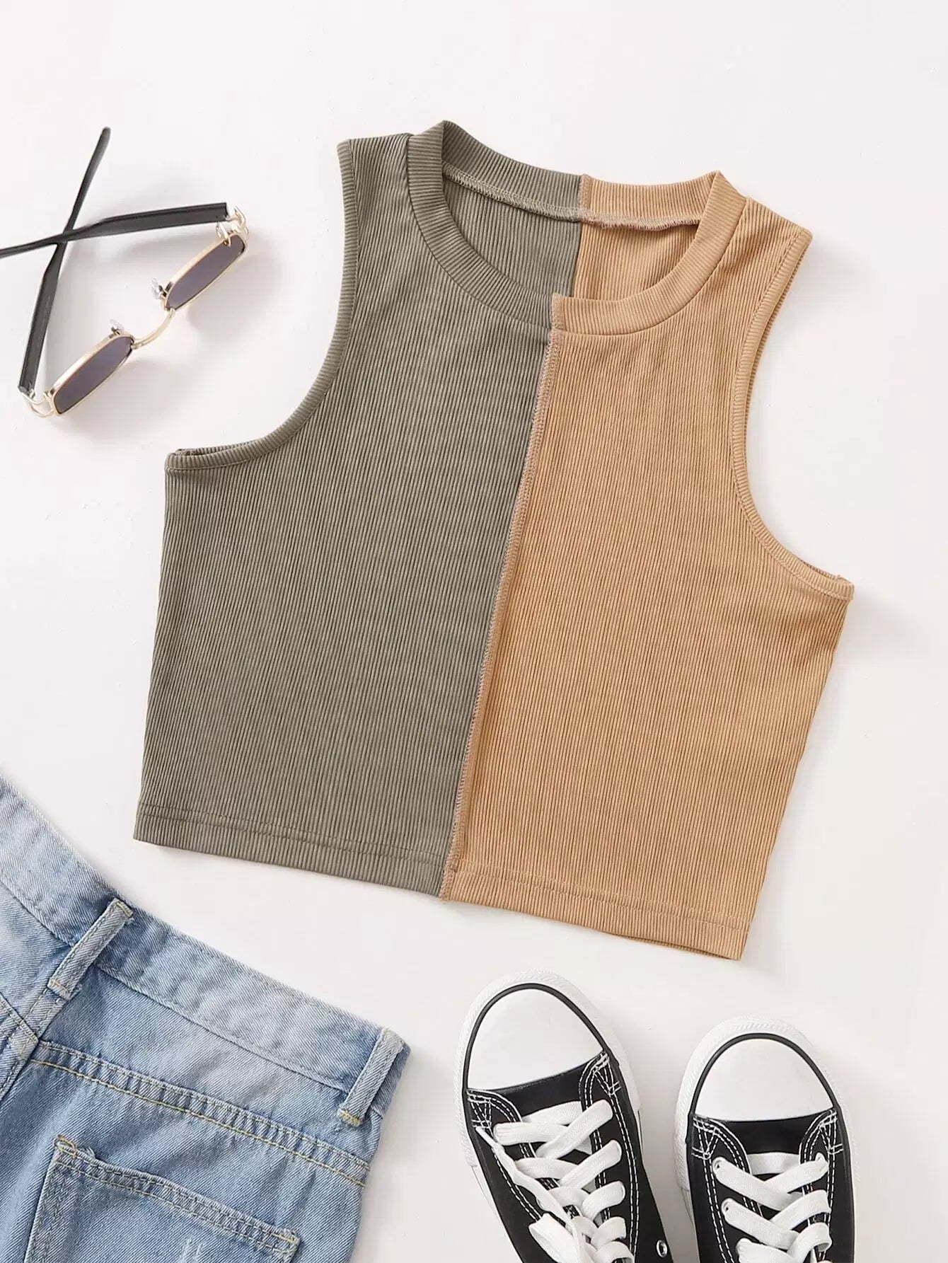Two Tone Rib-knit Tank Top