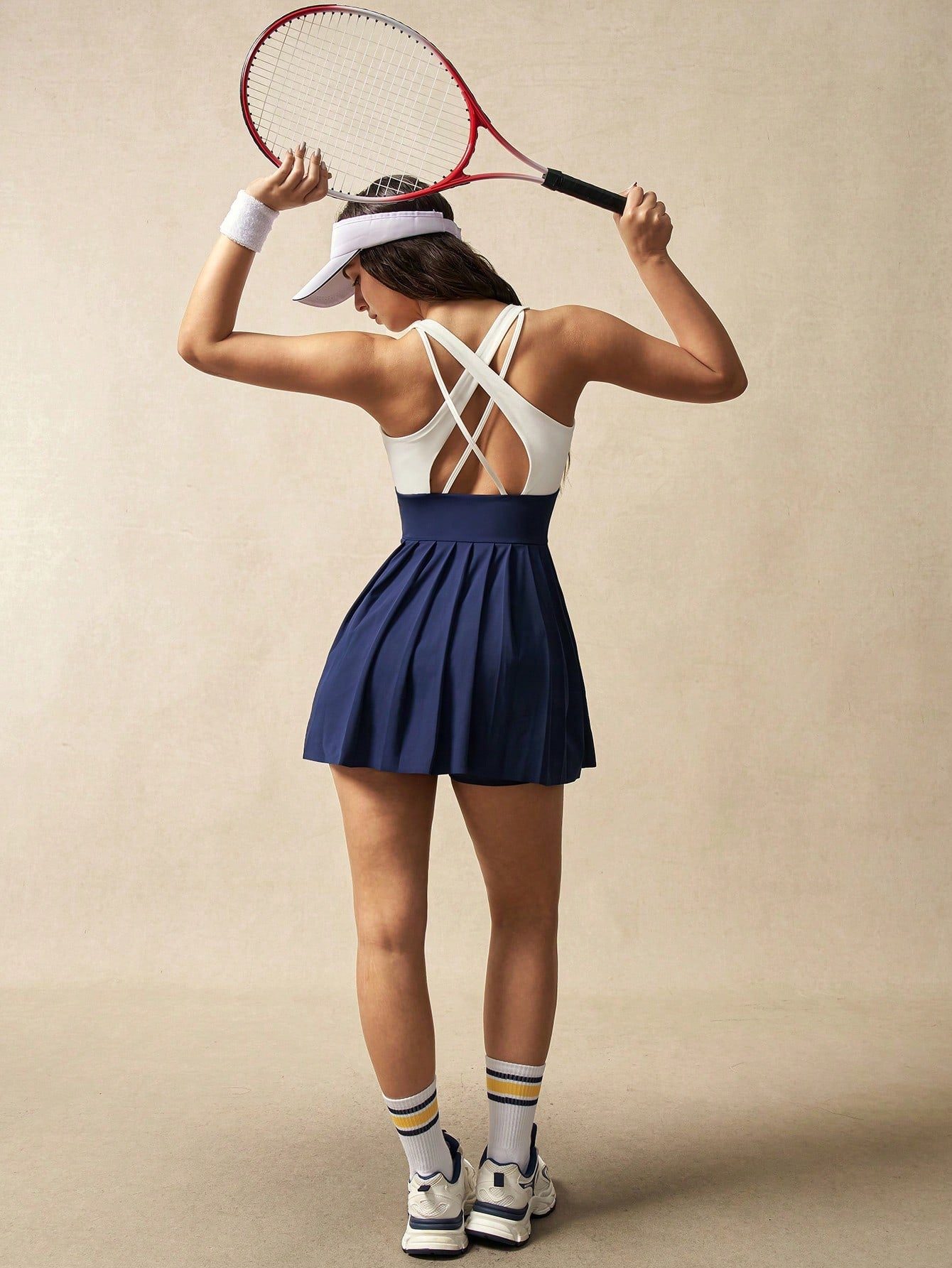 VARSITIE Women Contrast Color Pleated Hem Sleeveless Casual Fitness Sports Dress