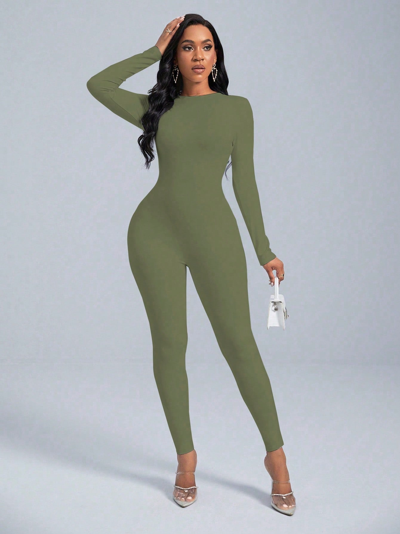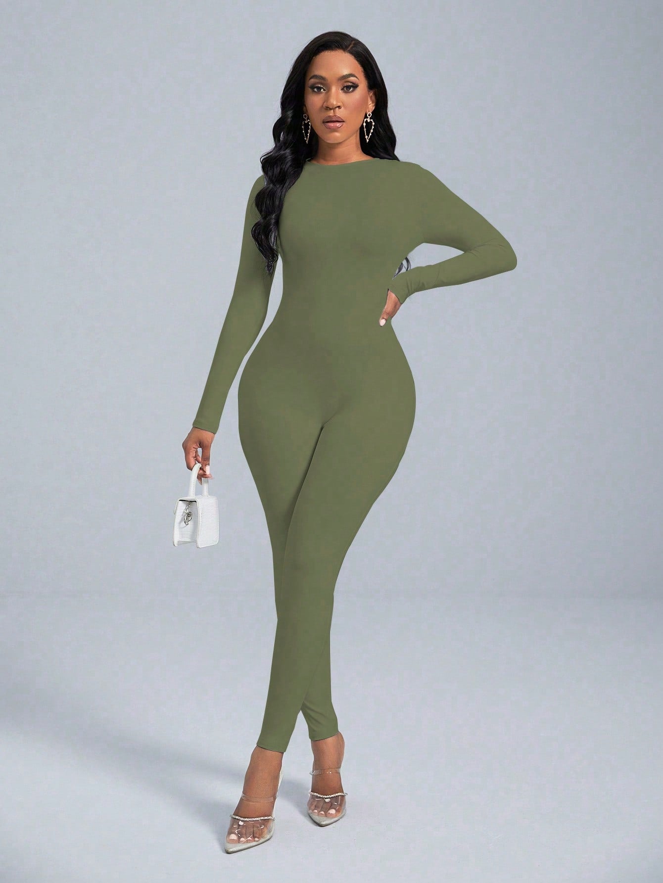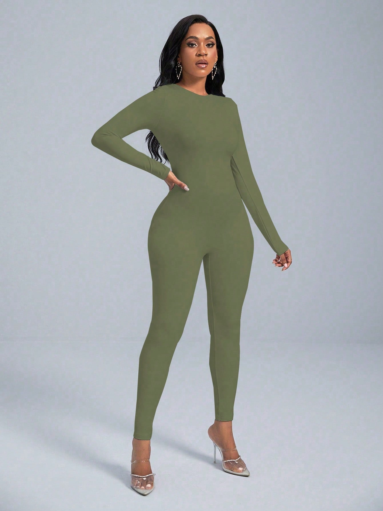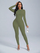 VaVaBold 1 Piece Solid Color Long Sleeve Skinny Jumpsuit