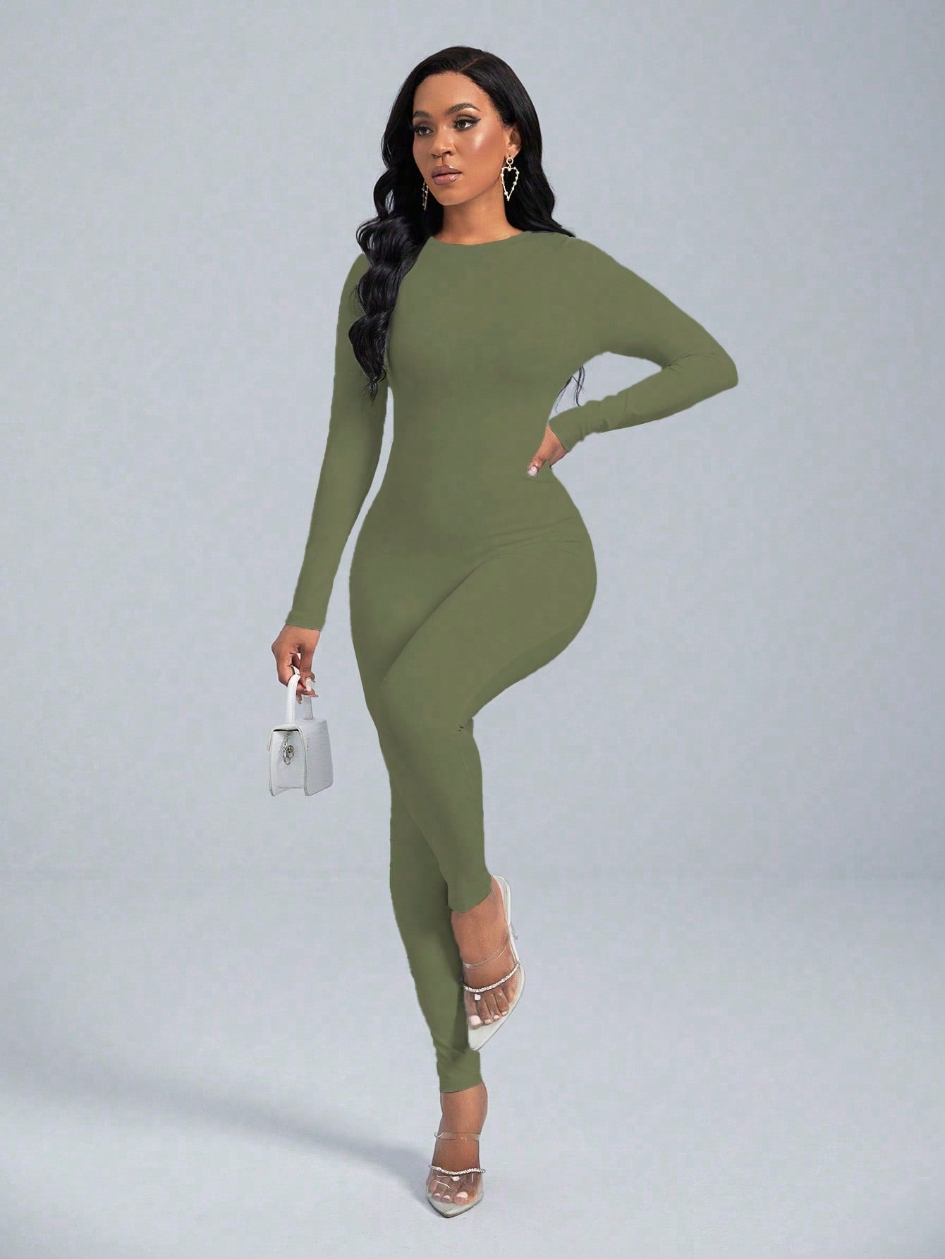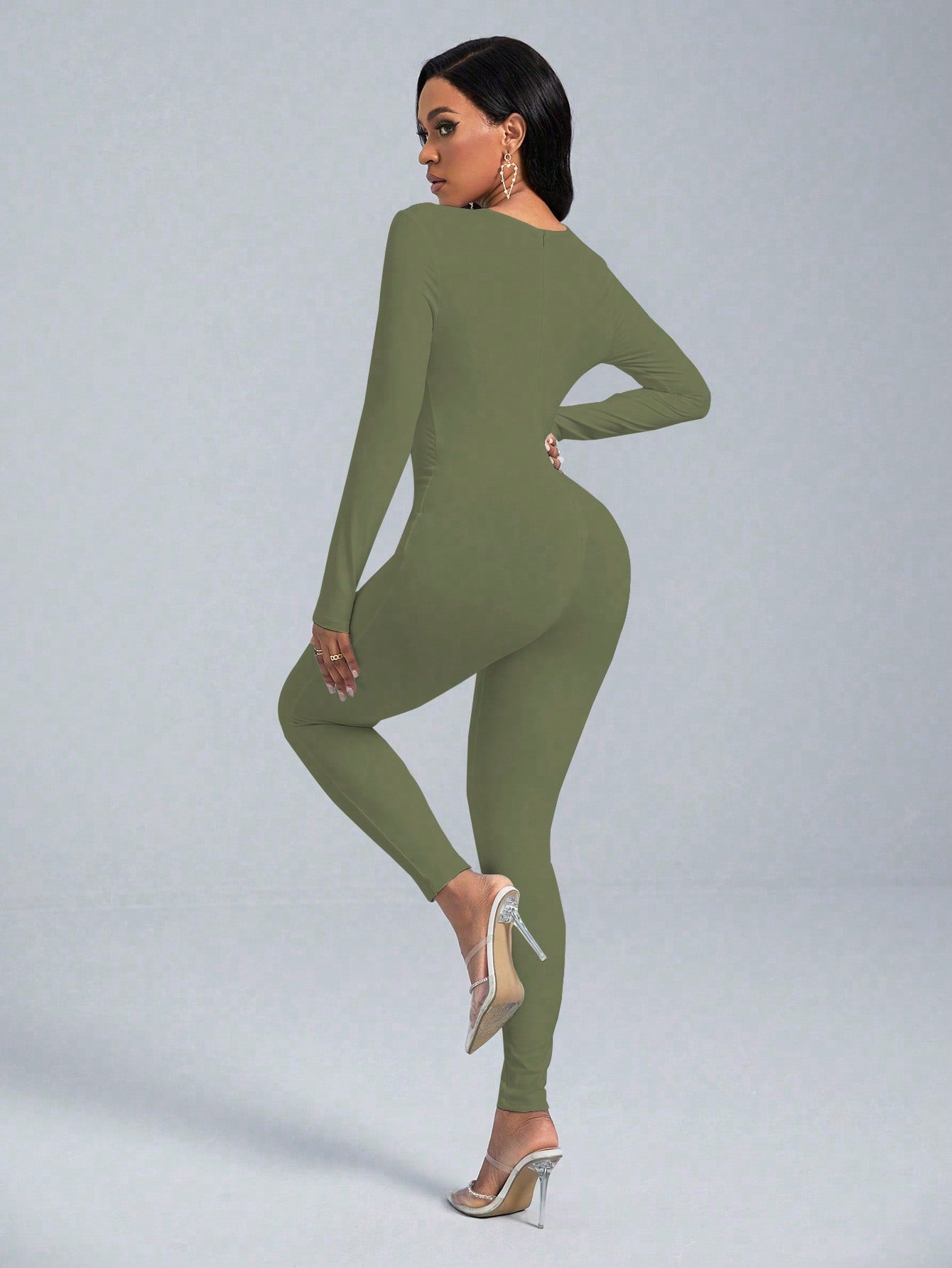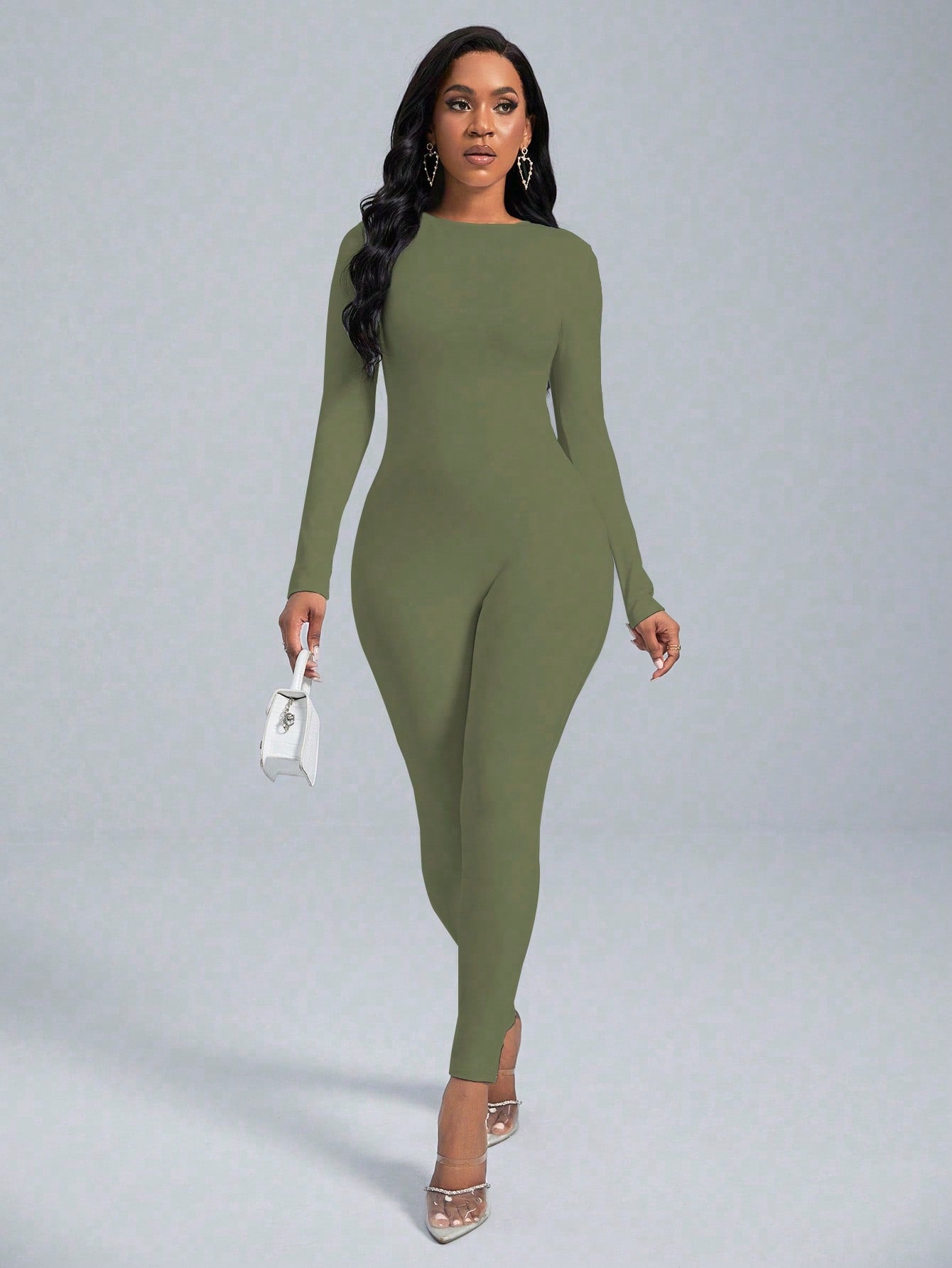 VaVaBold 1 Piece Solid Color Long Sleeve Skinny Jumpsuit
