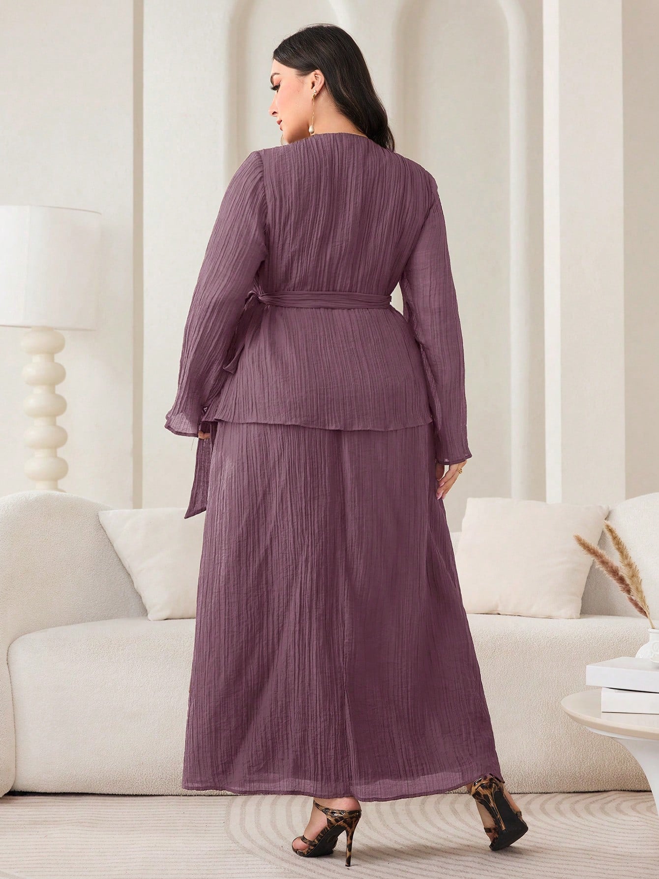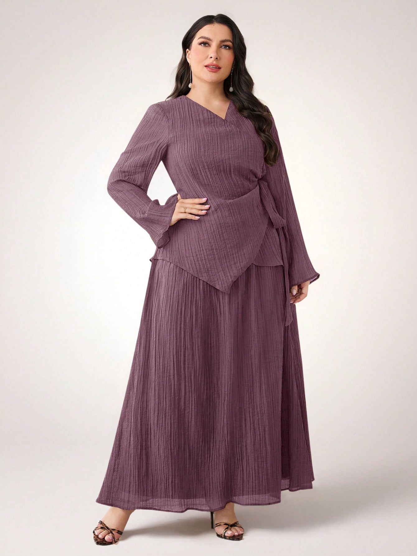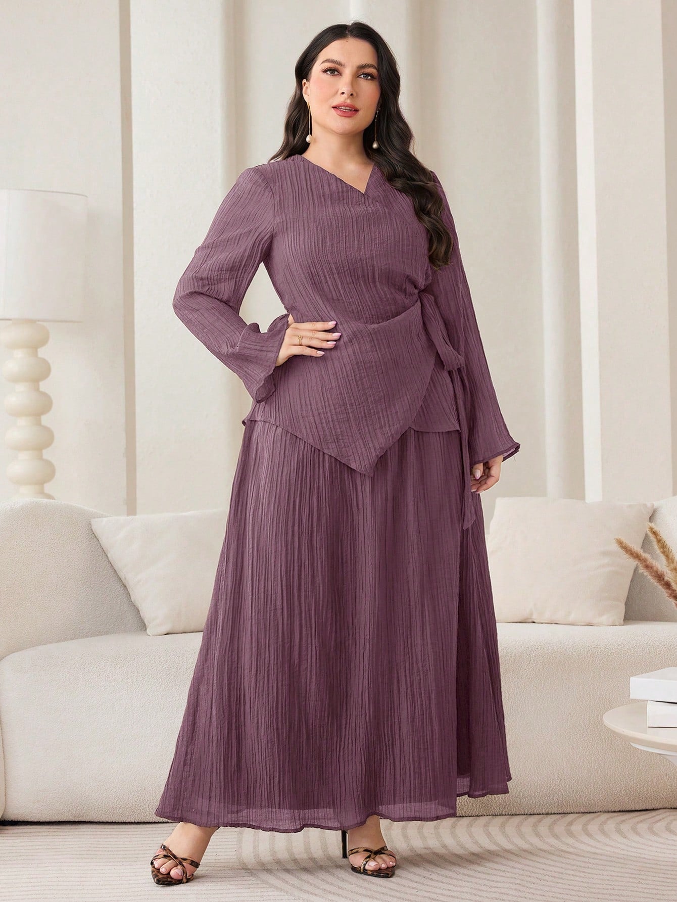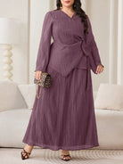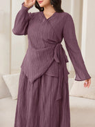 Veilorie 2pcs/Set Plus Size Women Solid Side Tie Asymmetric Hem Top And Skirt Casual Co-Ord Set