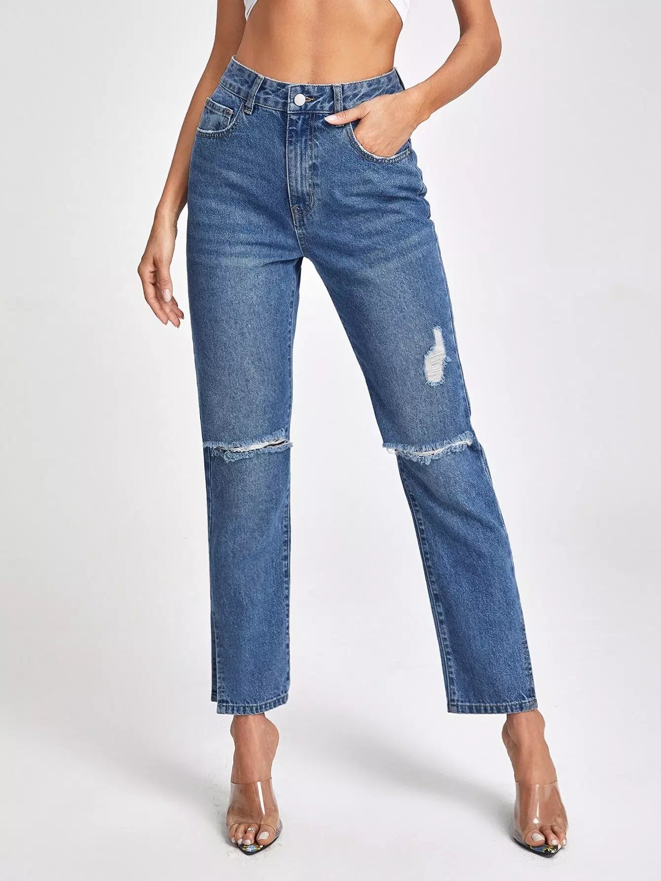 Vintage Breaking Mid-Waist Denim Mom Jeans