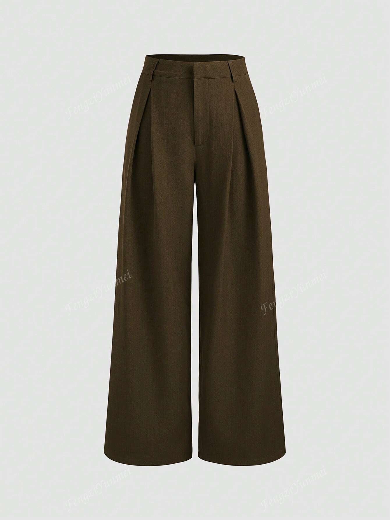 Women High Waist Straight Wide Leg Casual Pants, Solid Color, For Daily Commute