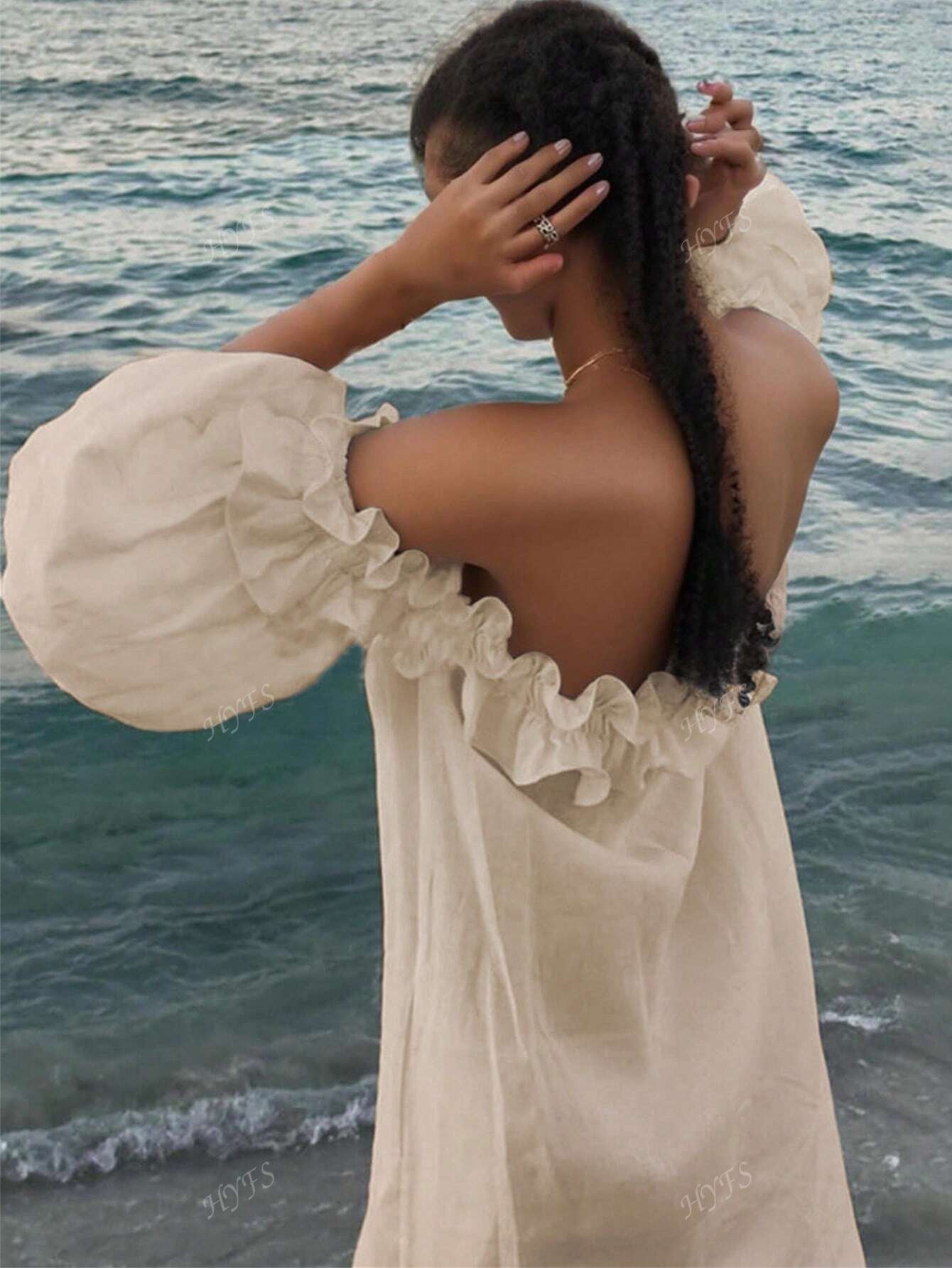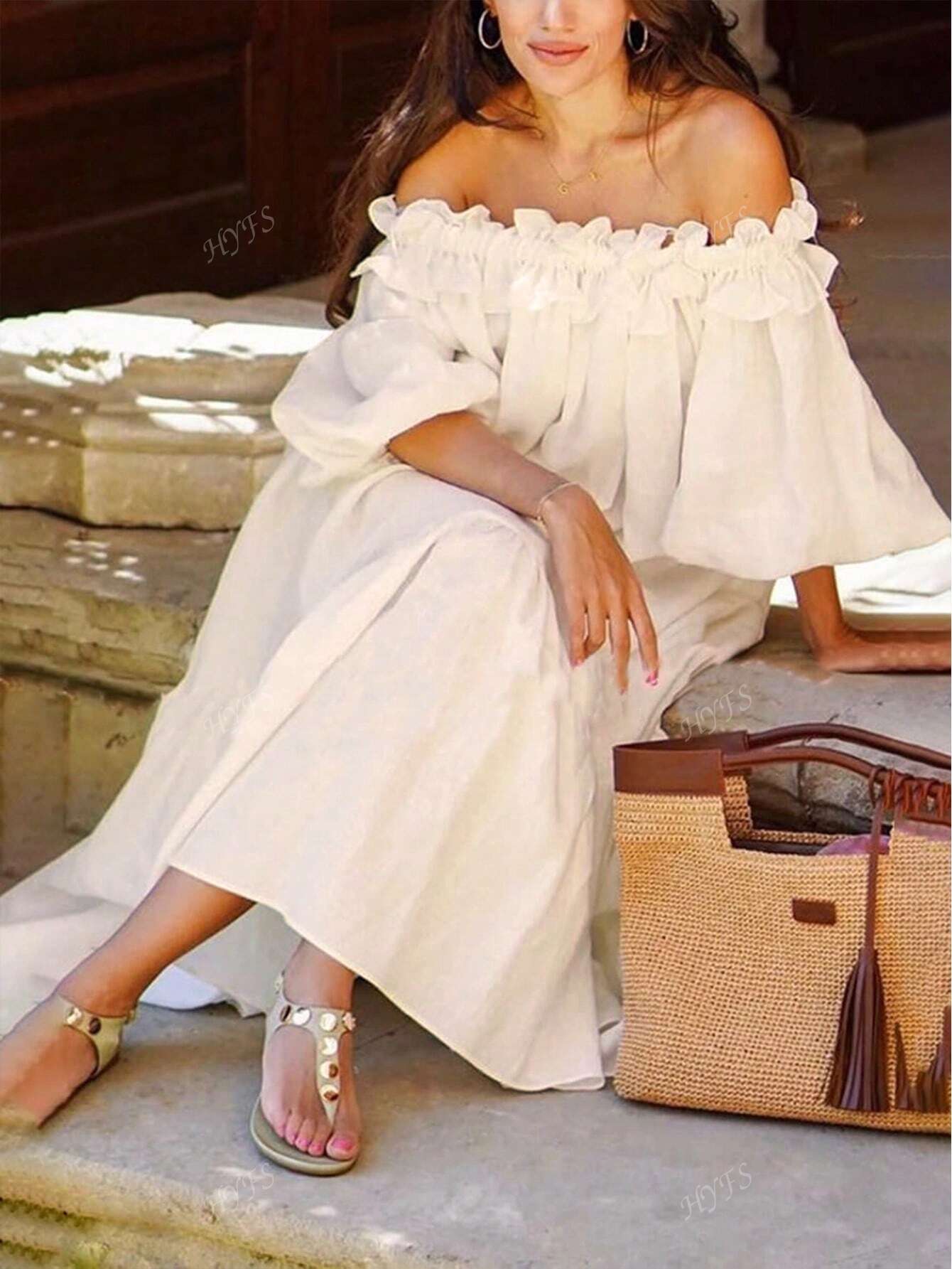 Women's Fashion Elegant Vacation Casual Solid Color Off-Shoulder Long Dress With Side Slits