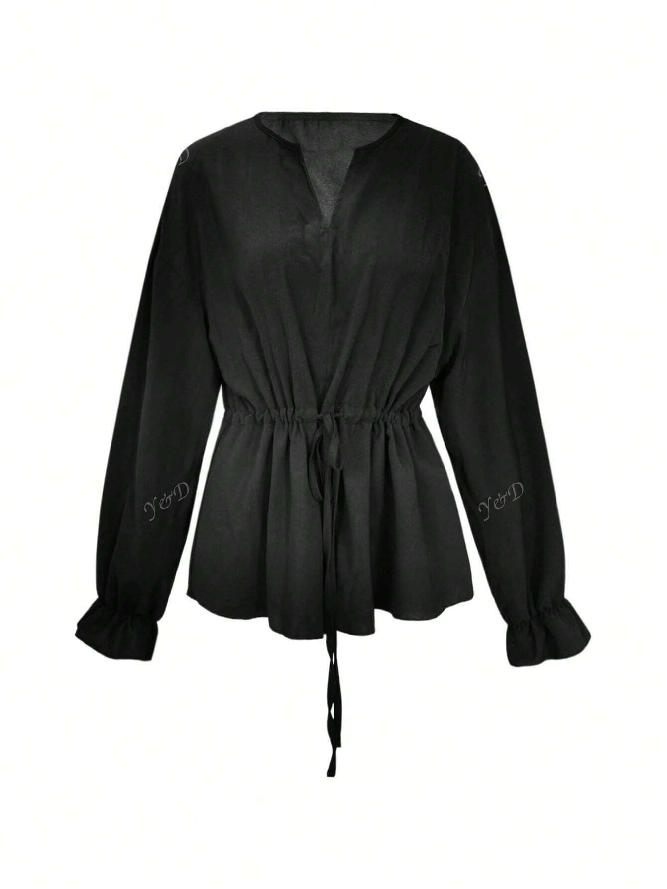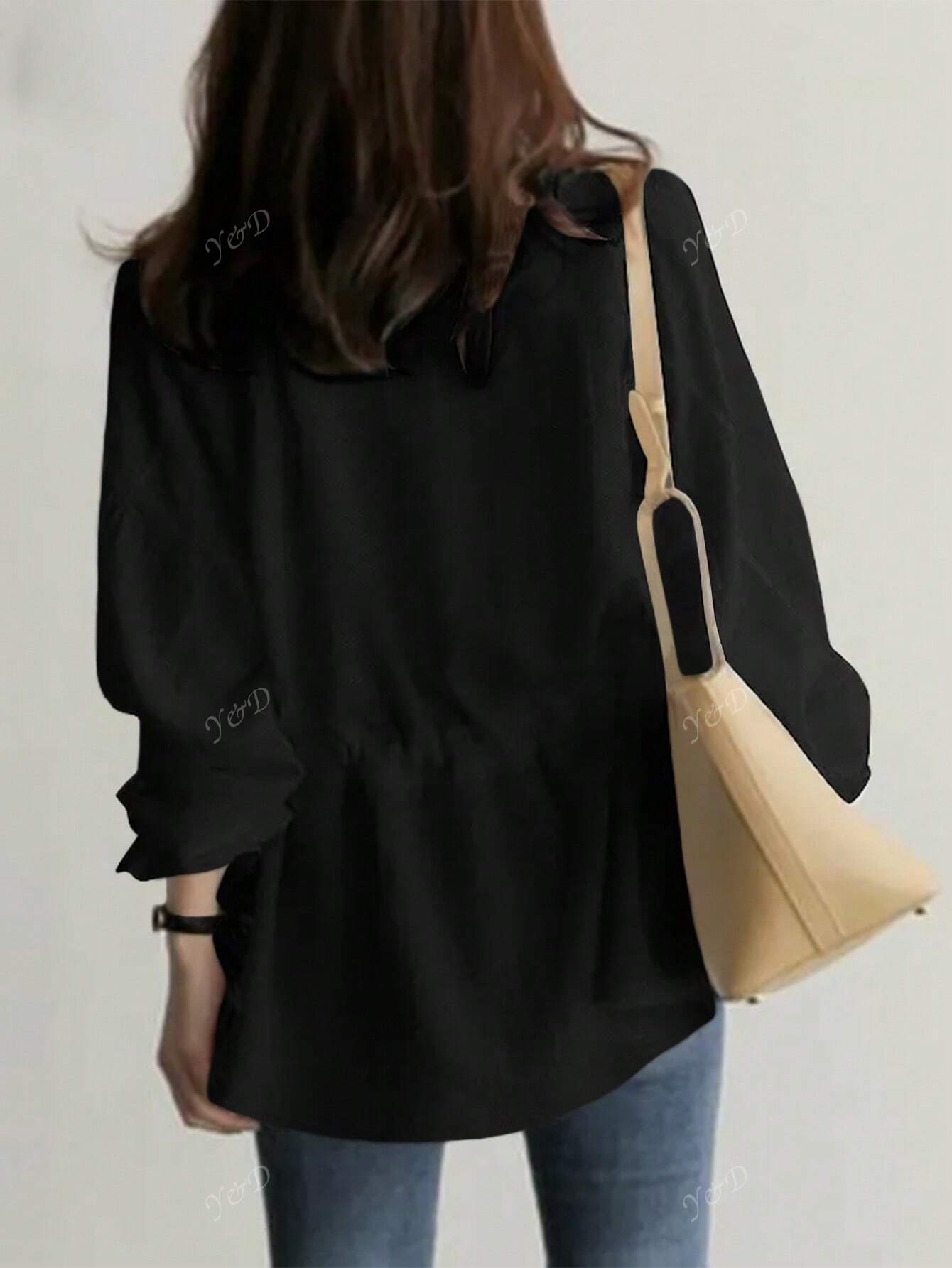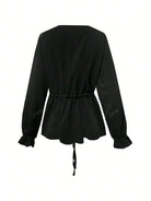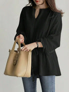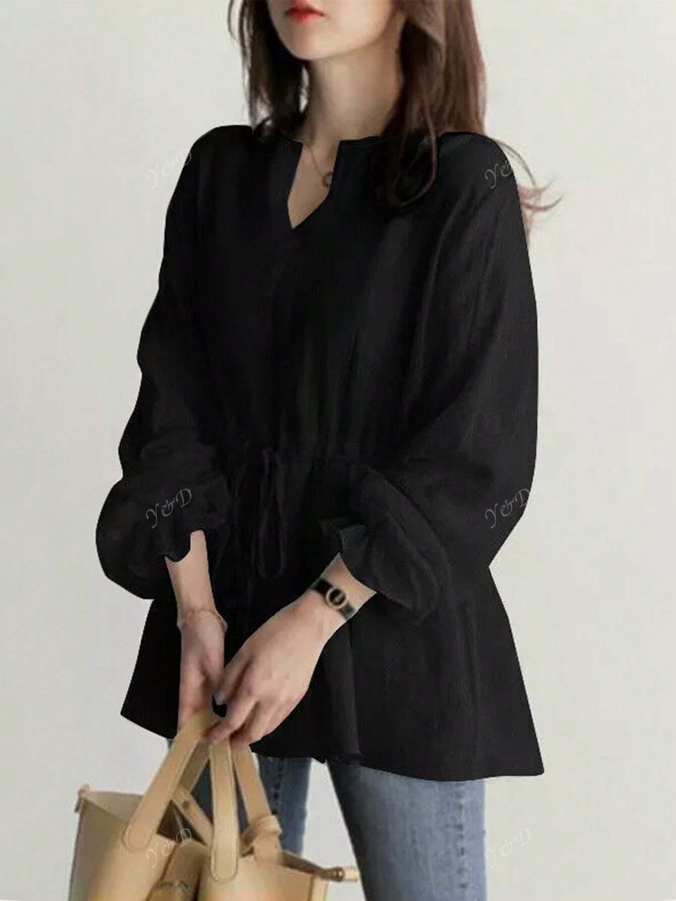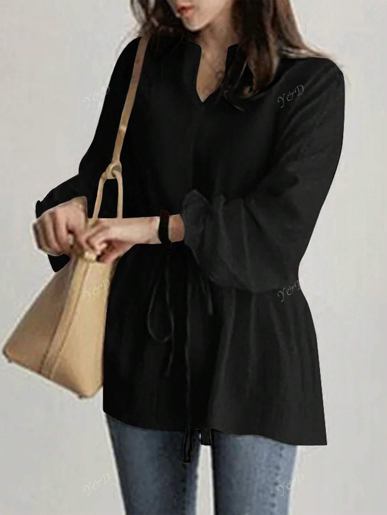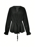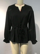 Women's V-Neck Joker Tunic Shirt Women's Cross-Border New Retro Casual Loose Long-Sleeved Lace-Up Shirt