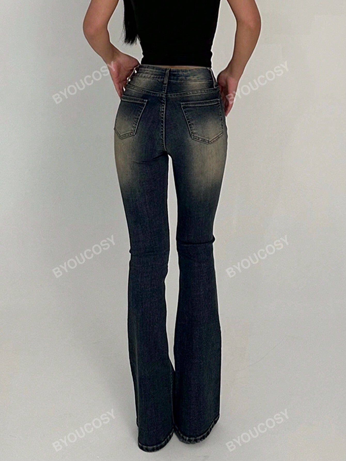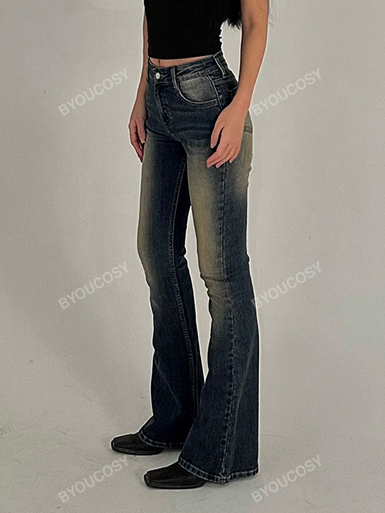 Women's Vintage Distressed Stretch Slim-Fit Bootcut Jeans
