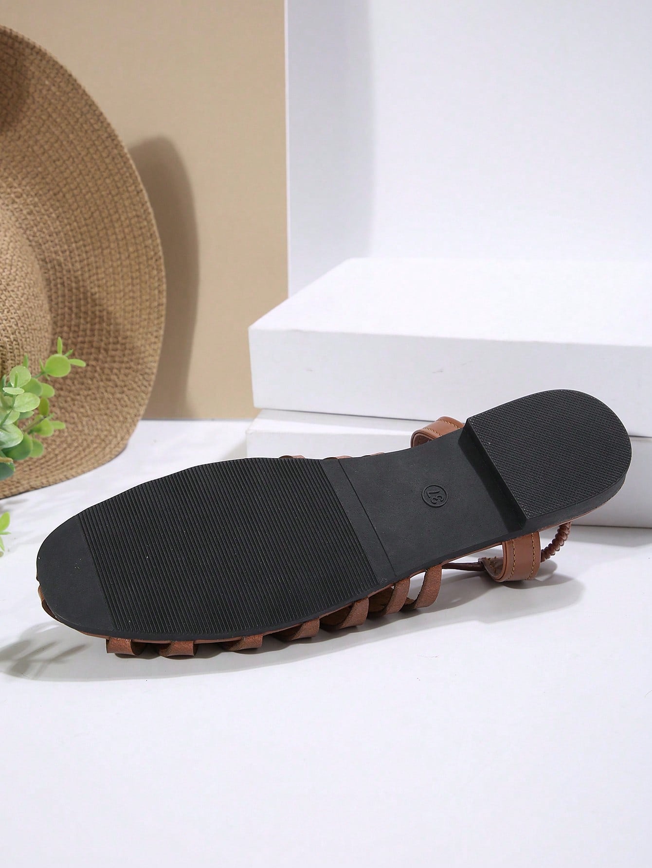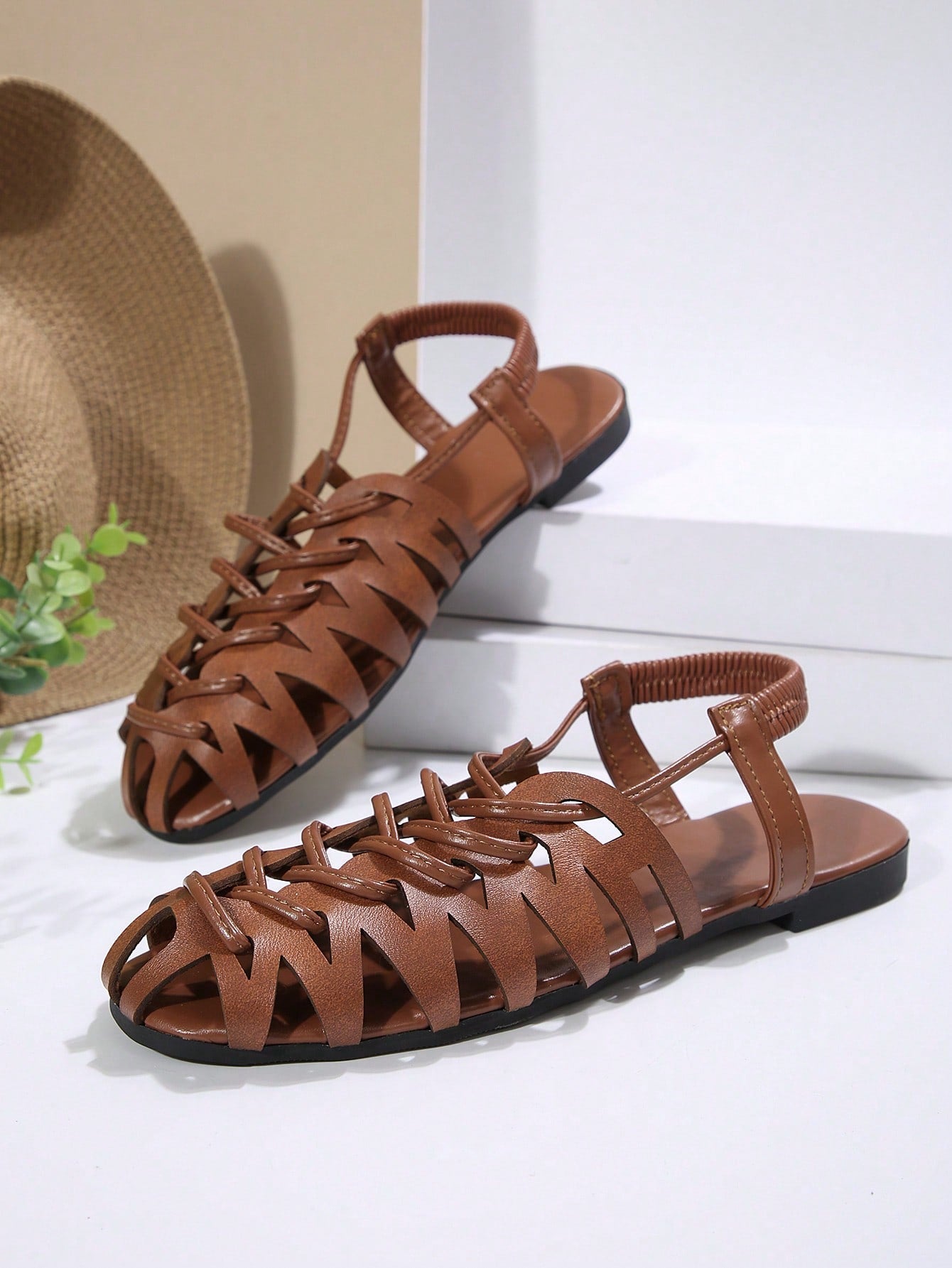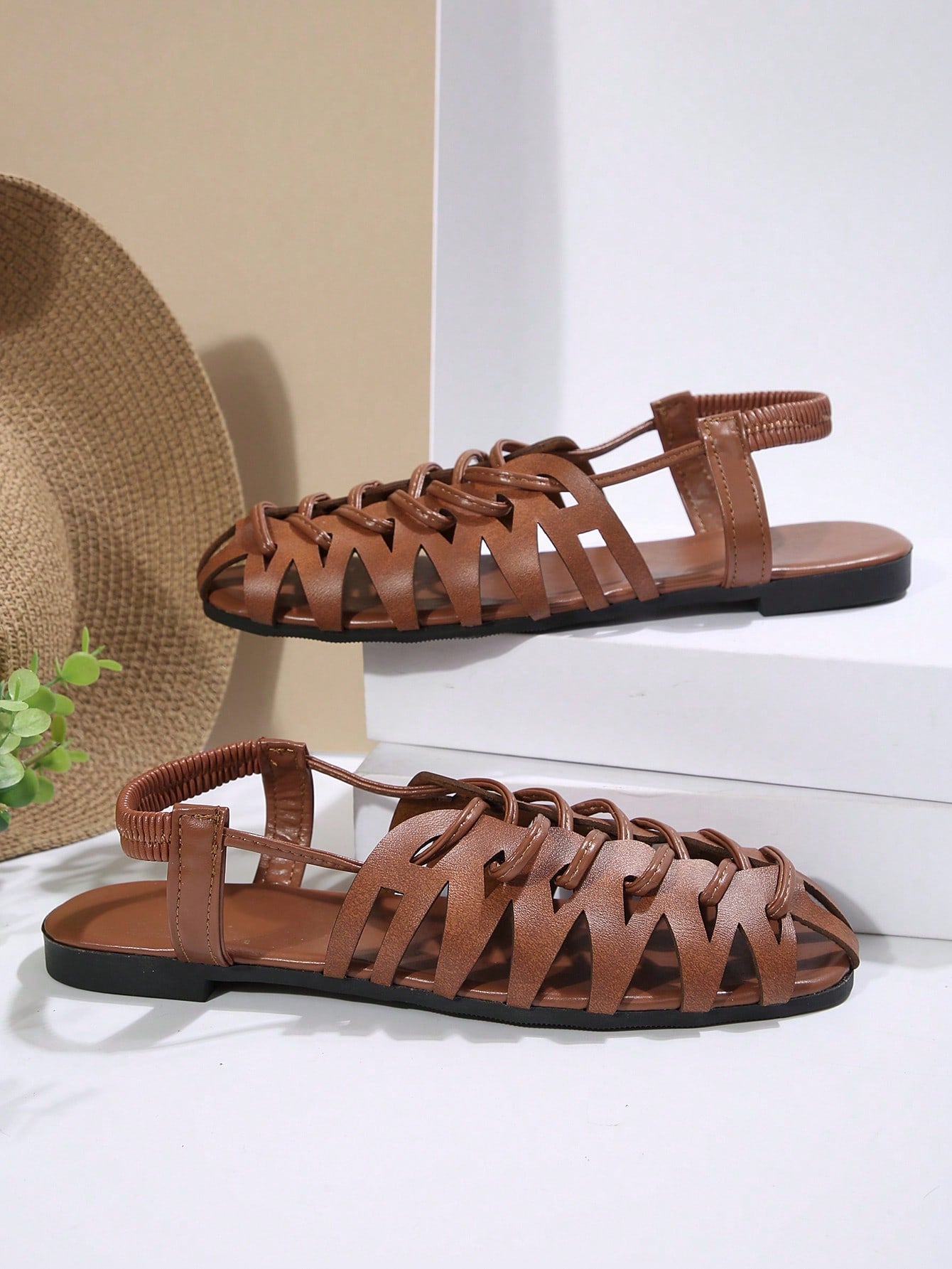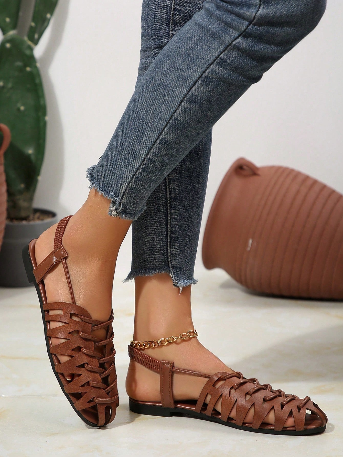 Women's Vintage Style Woven Hollow Closed Toe Chunky Heeled Sandals