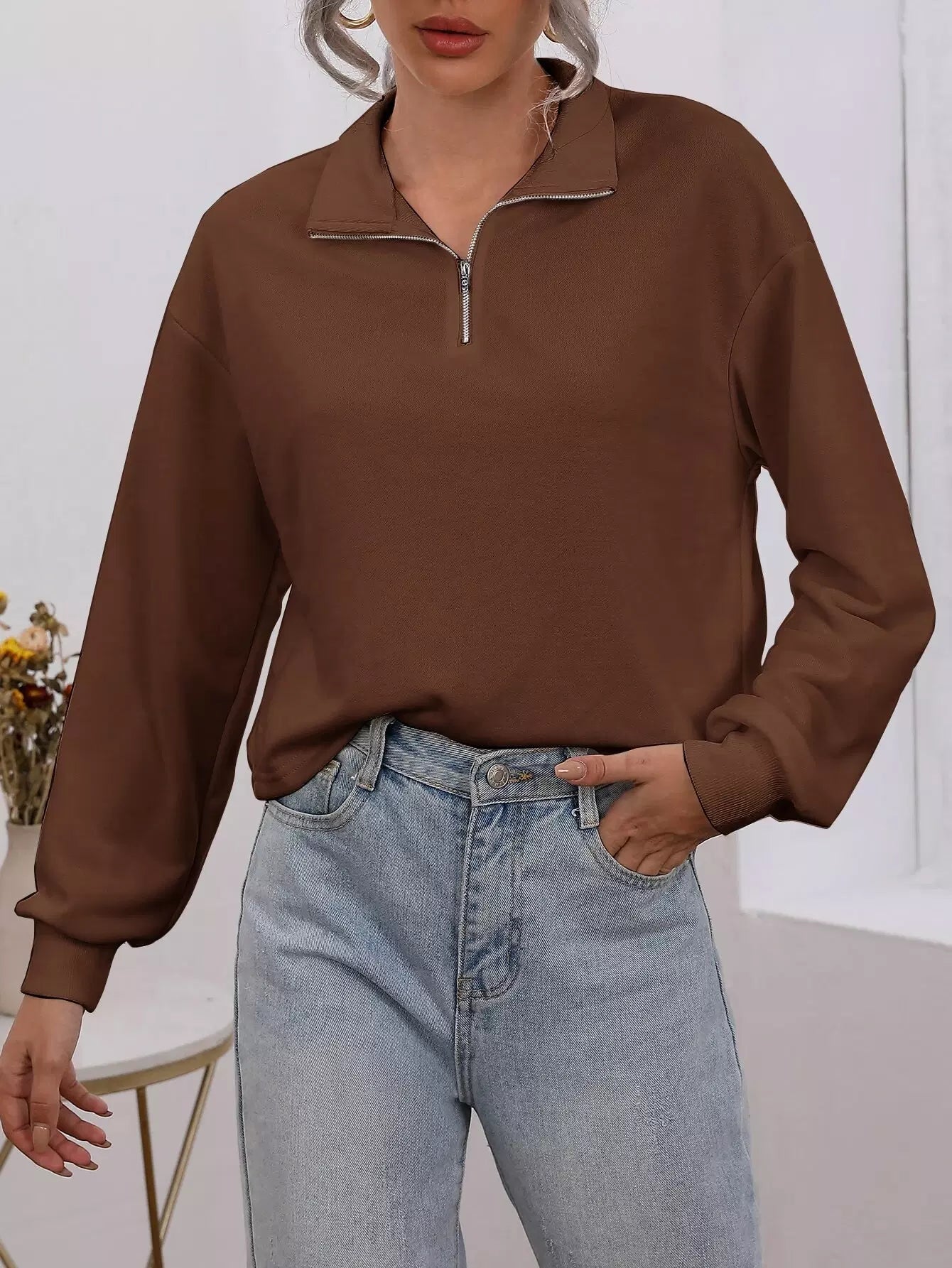 Zipper Front Sweatshirt