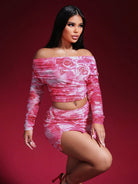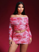 women Zolique Women's Off Shoulder Sexy Convertible Mesh Rose Woven Mesh Dress Suit