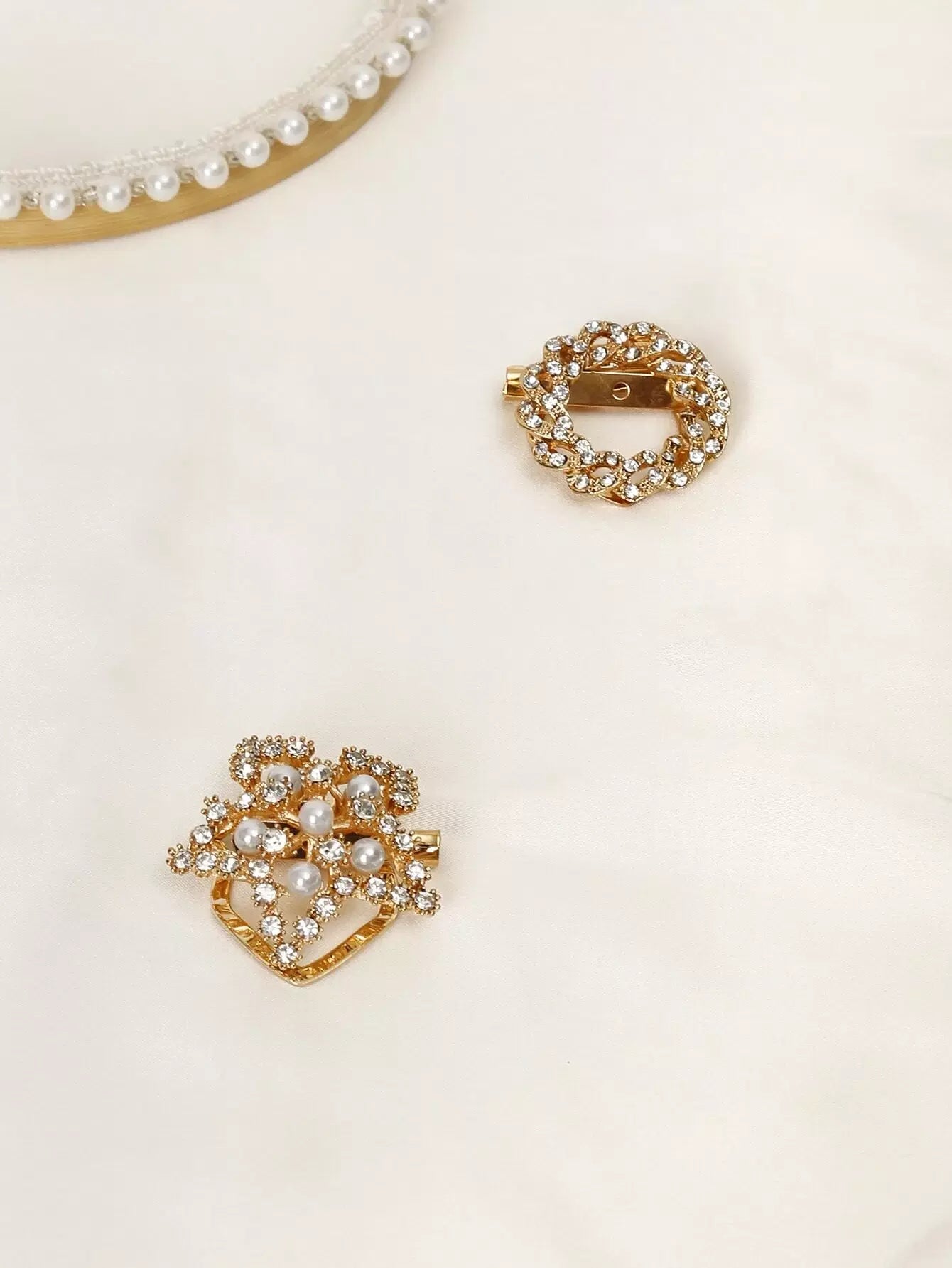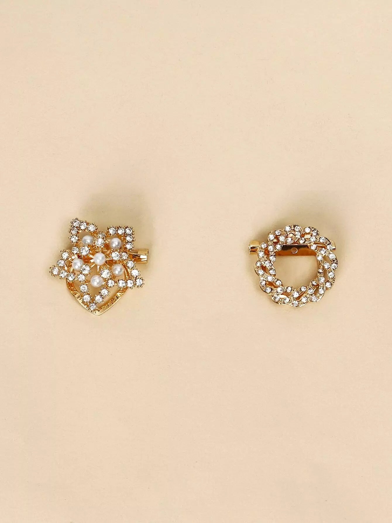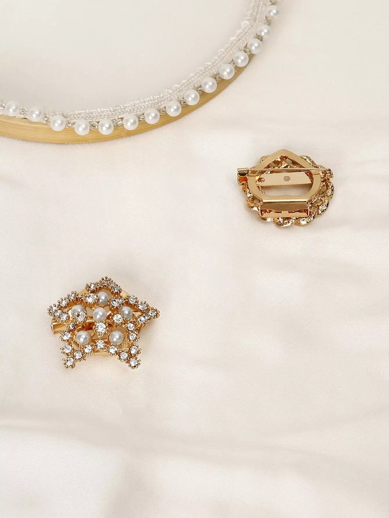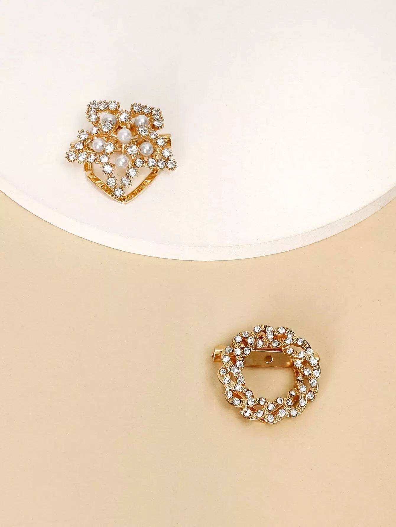 2pcs Faux Pearl & Rhinestone Decor Scarf Safety Pin