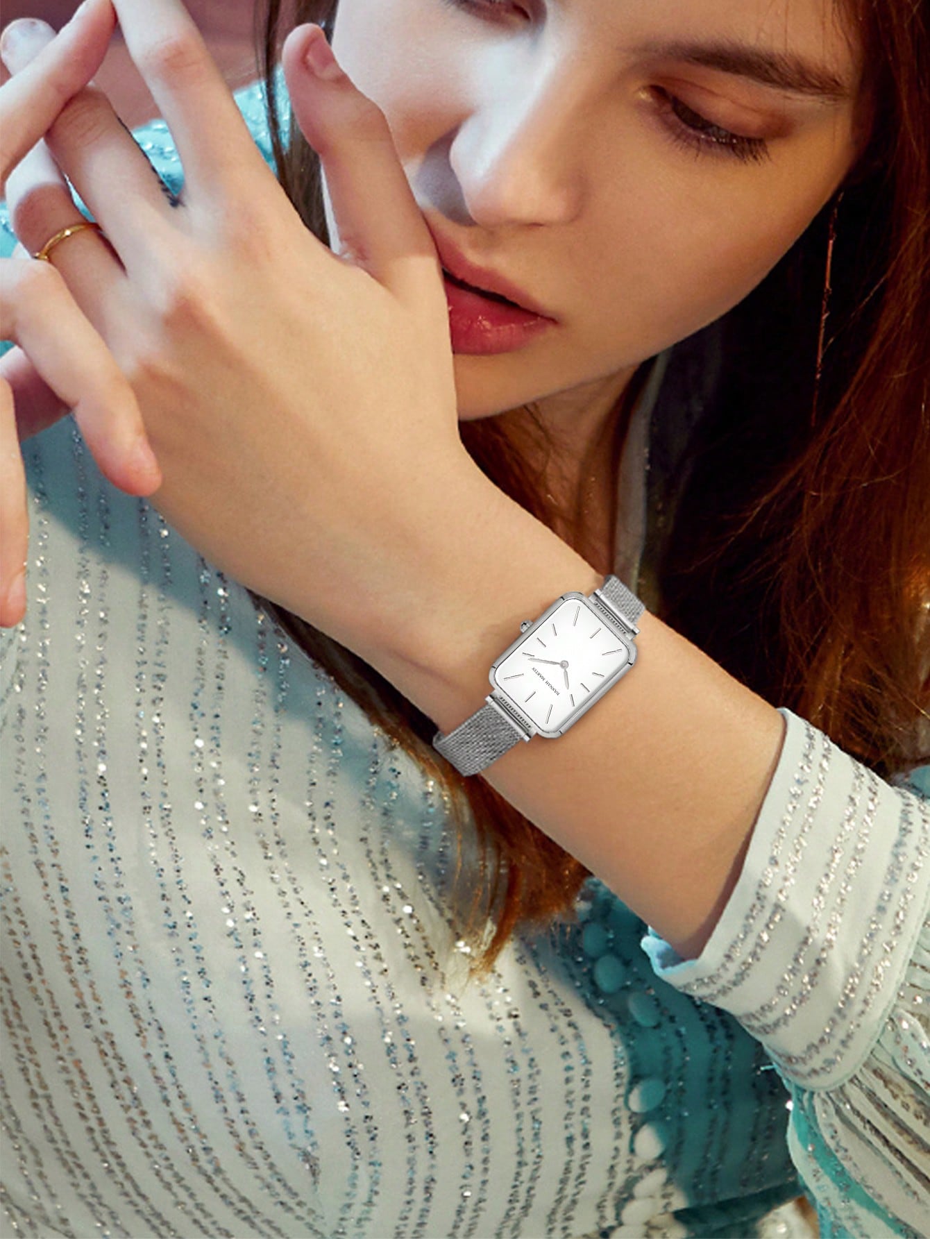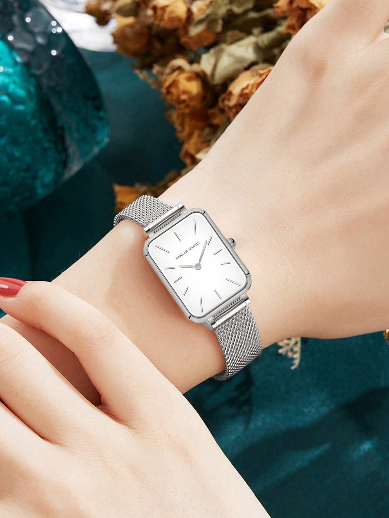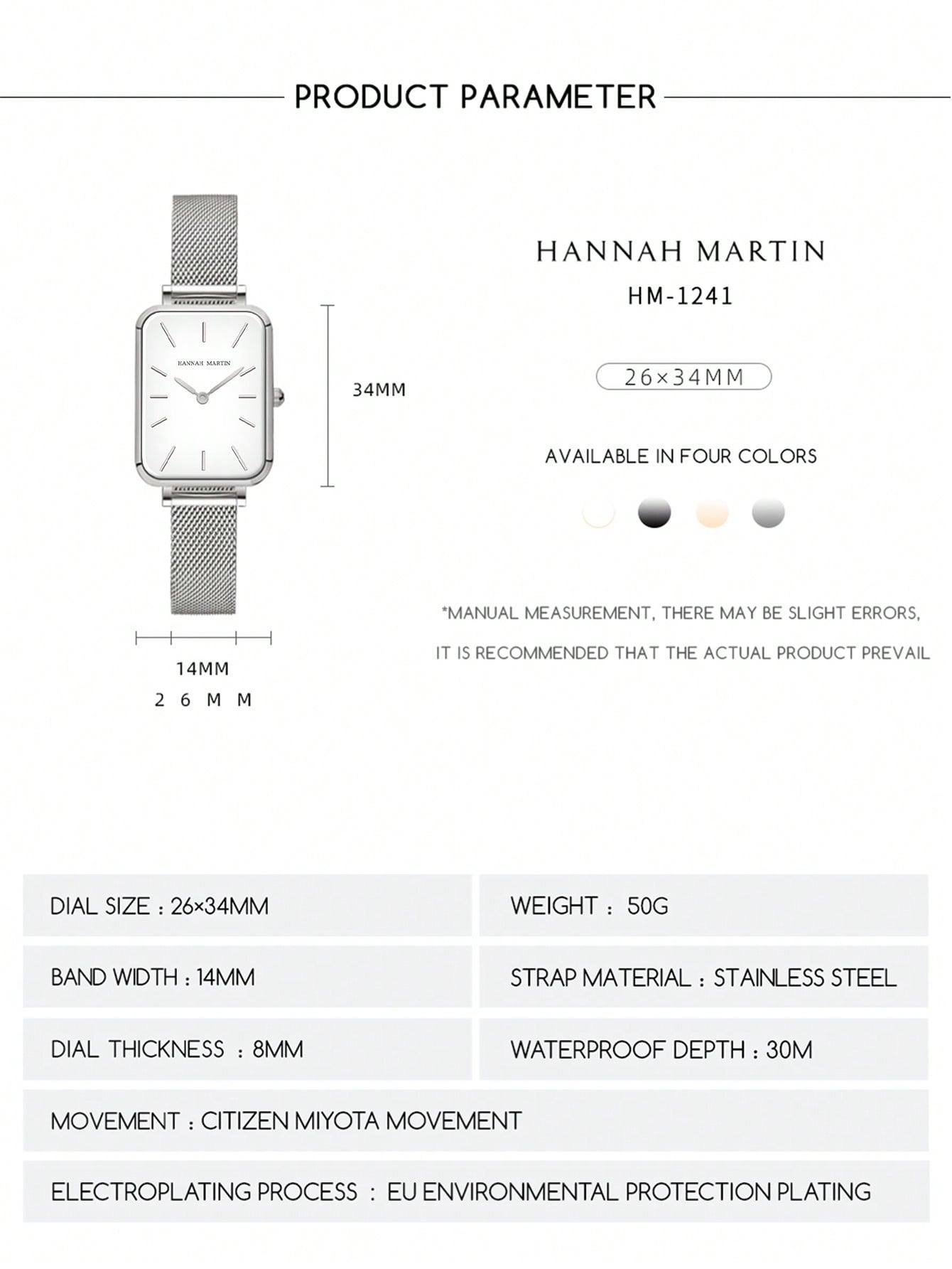 HANNAH MARTIN 1PC Fashion Square Watch 34mm Rose Gold&Silver&Gold&Black Minimalist Style Original Japanese
