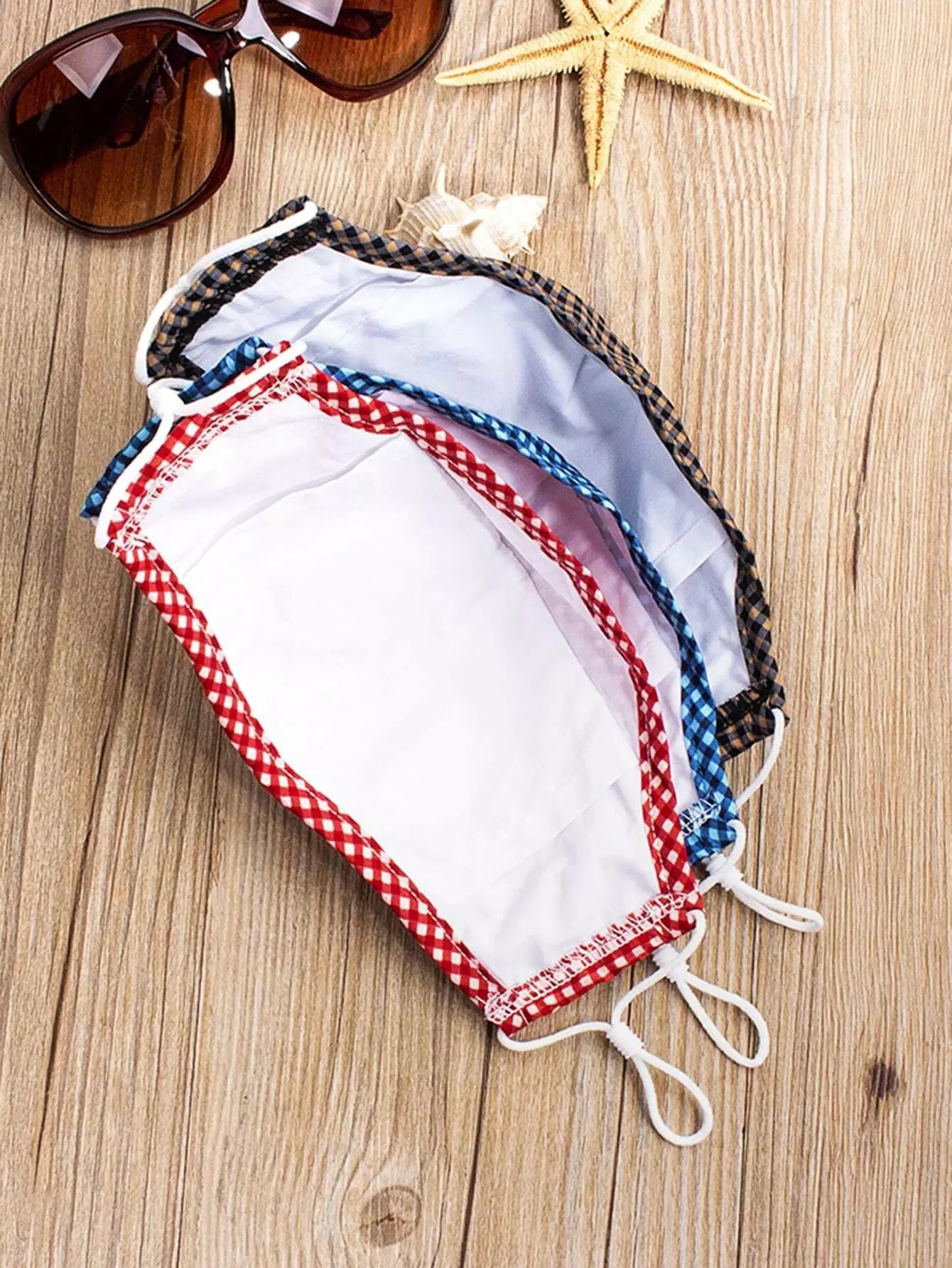 Women - 1pc Gingham Pattern Face Covering With Valve Breathable
