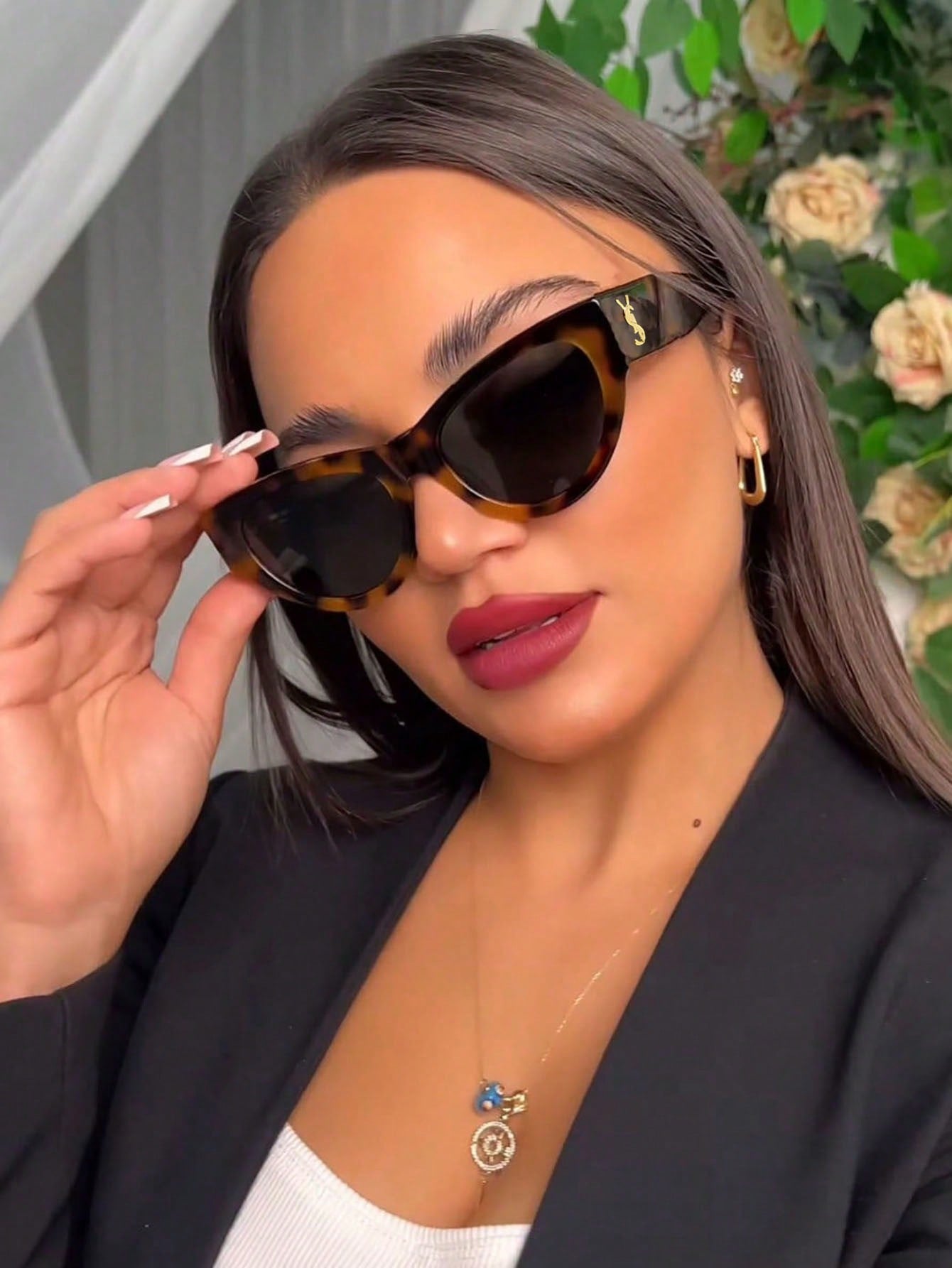 1pc Poplar Forest Cat Eye Glasses Women's Fashion Glasses Super Cool Retro Slimming Glasses Cat Eye