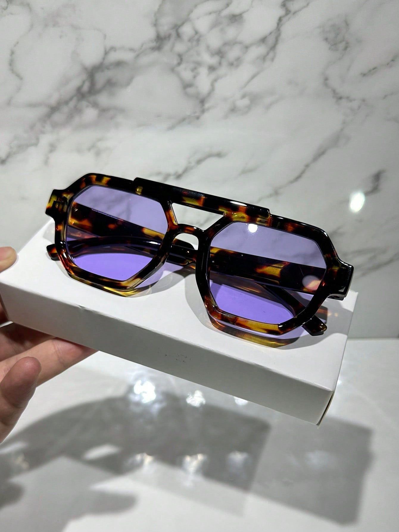 1pc Women's Casual Retro Square Aviator Style Leopard Pattern Blue Brown Fashion Fashion Glasses