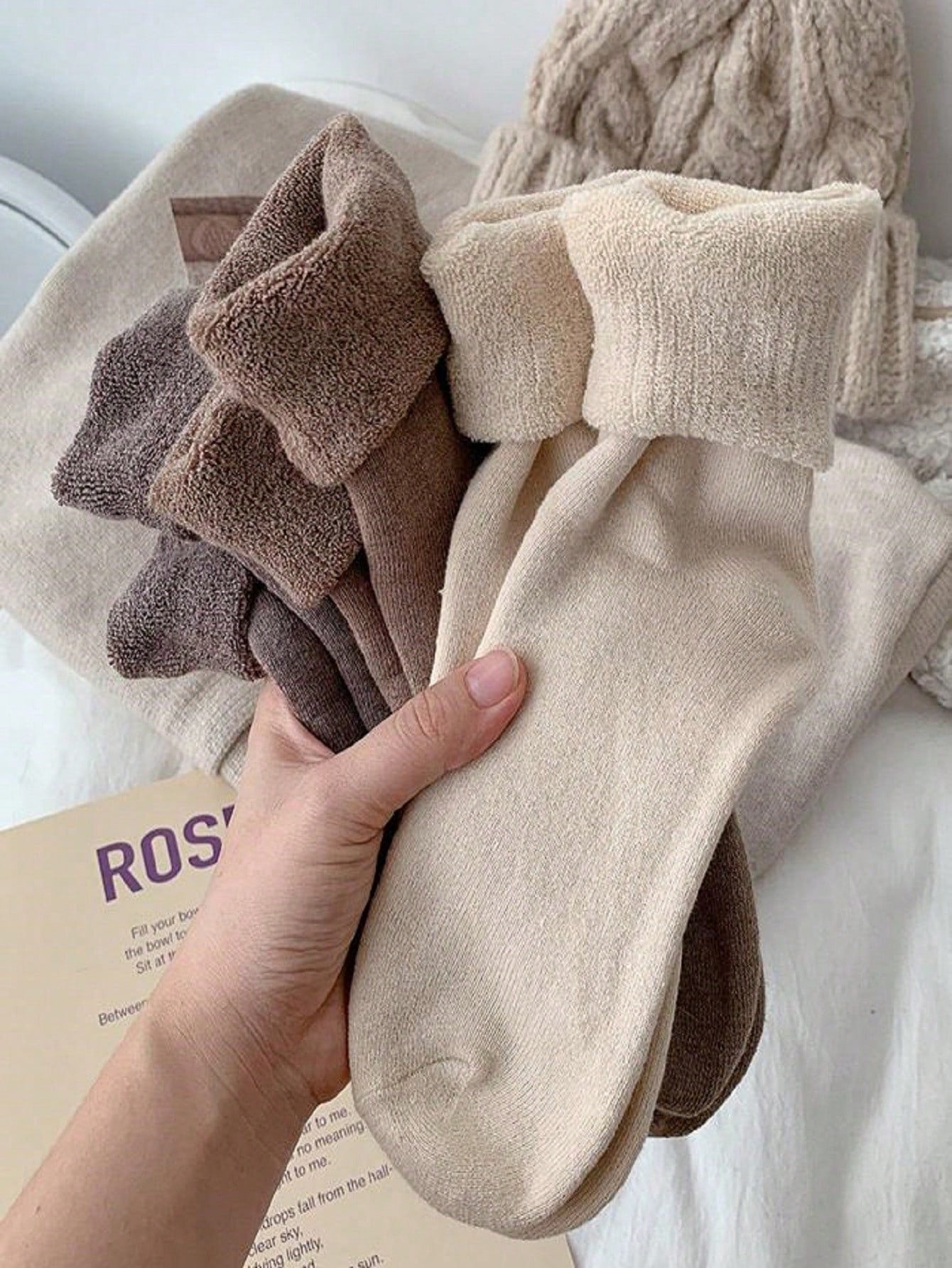3 Pairs Women Thick - Versatile - Casual Warm Wool Crew Socks For Autumn/Winter