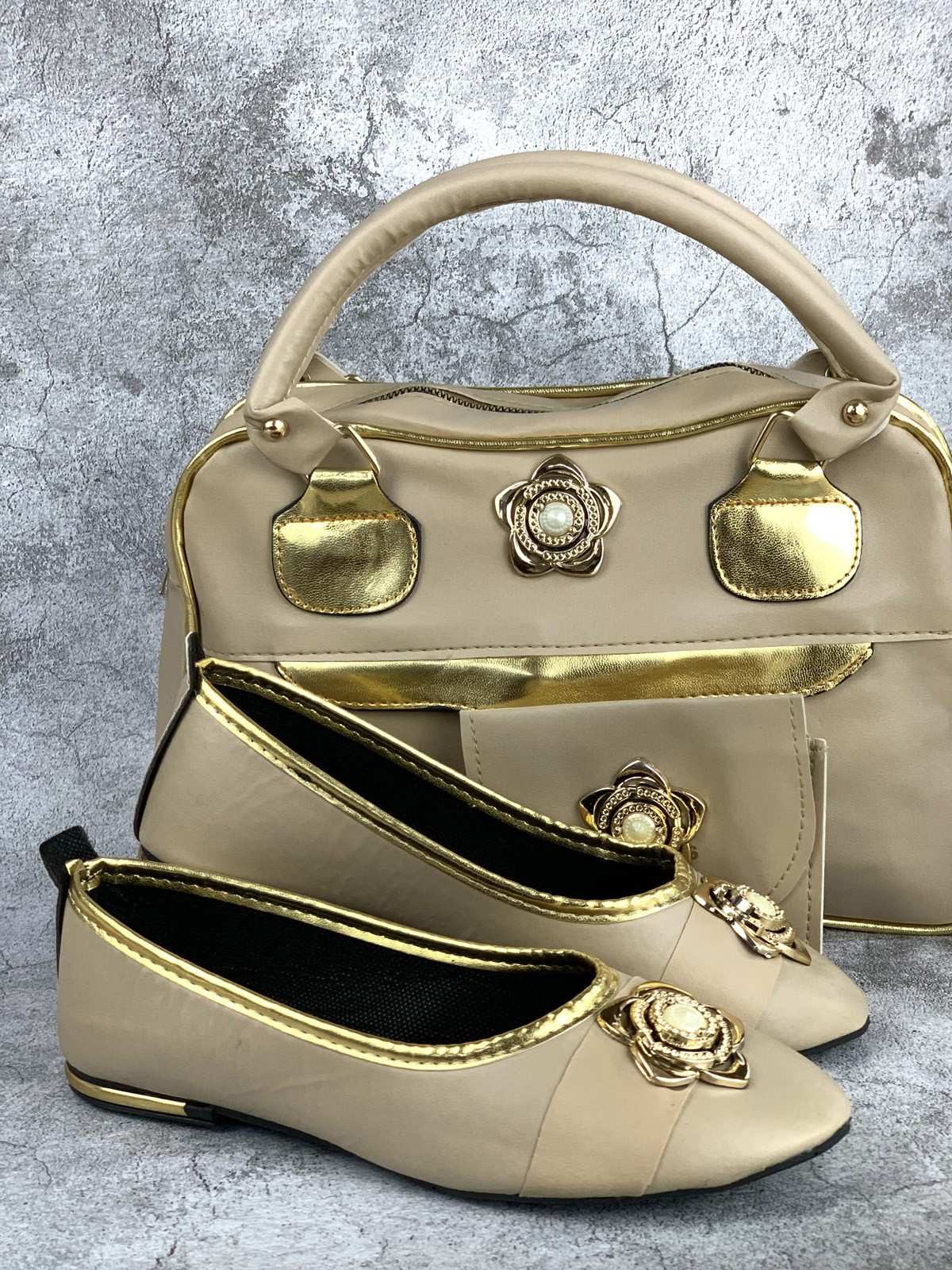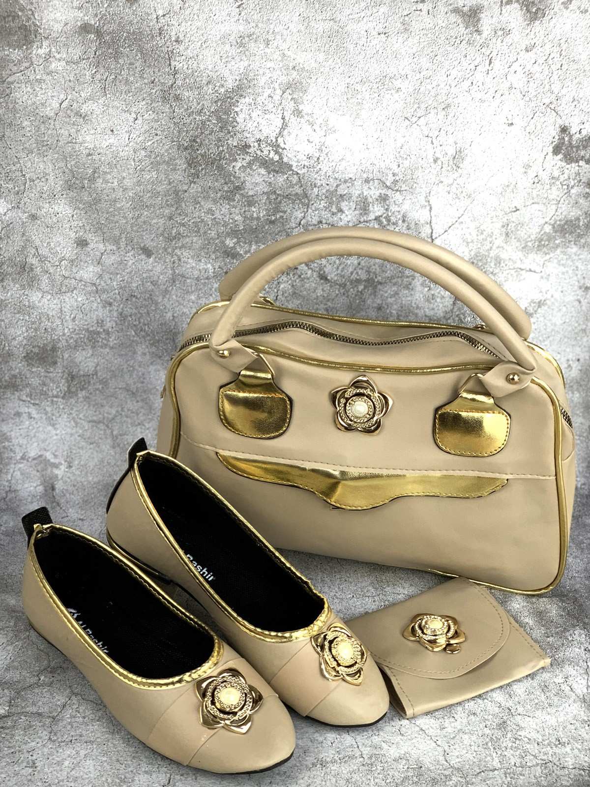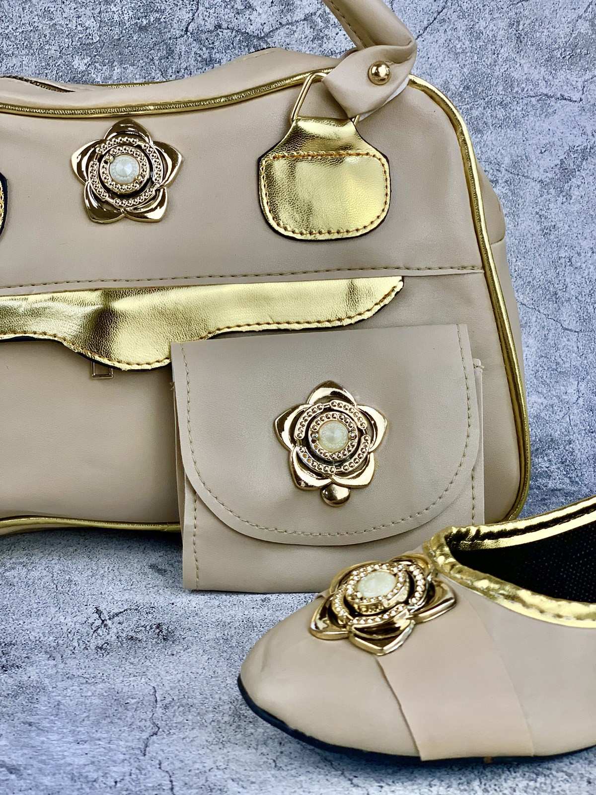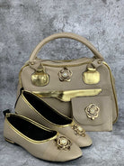 Women - Bag, shoes and wallet in gray with golden edges and rose