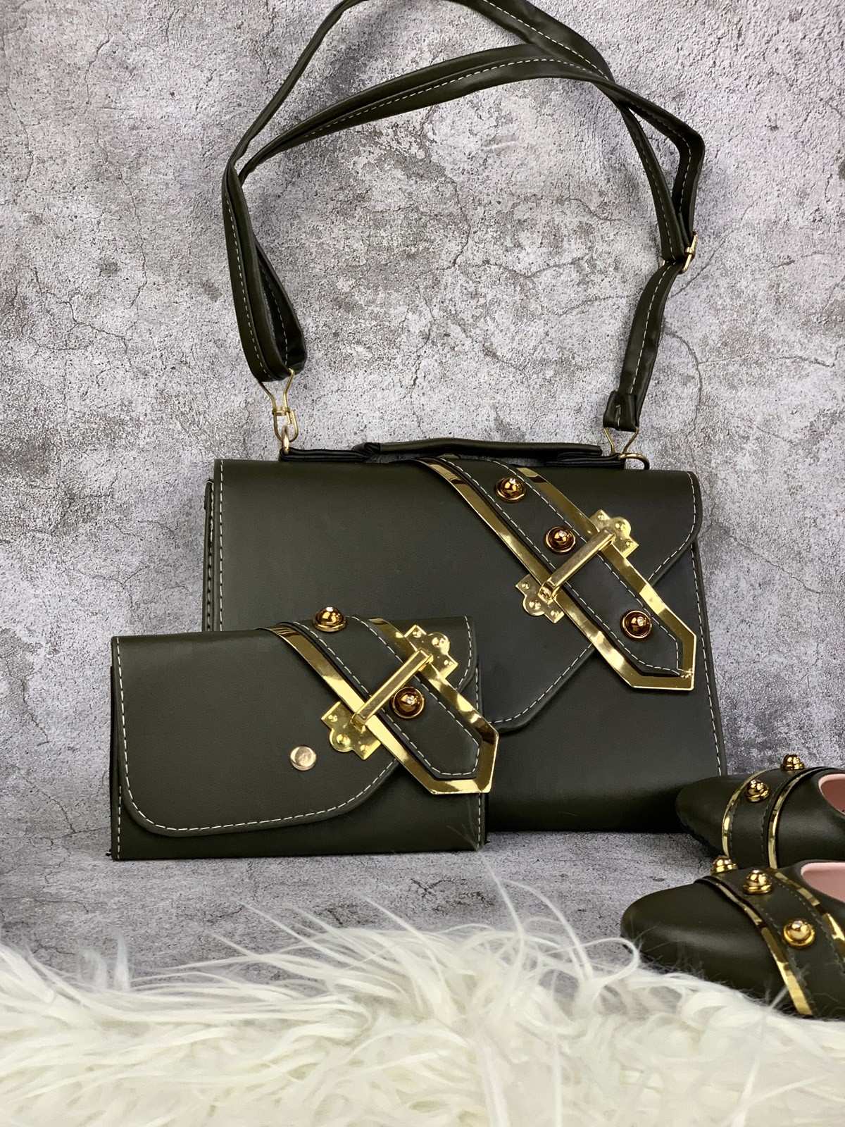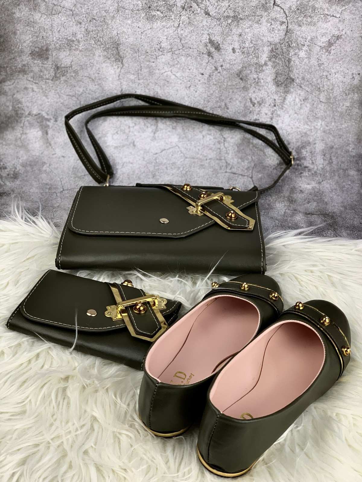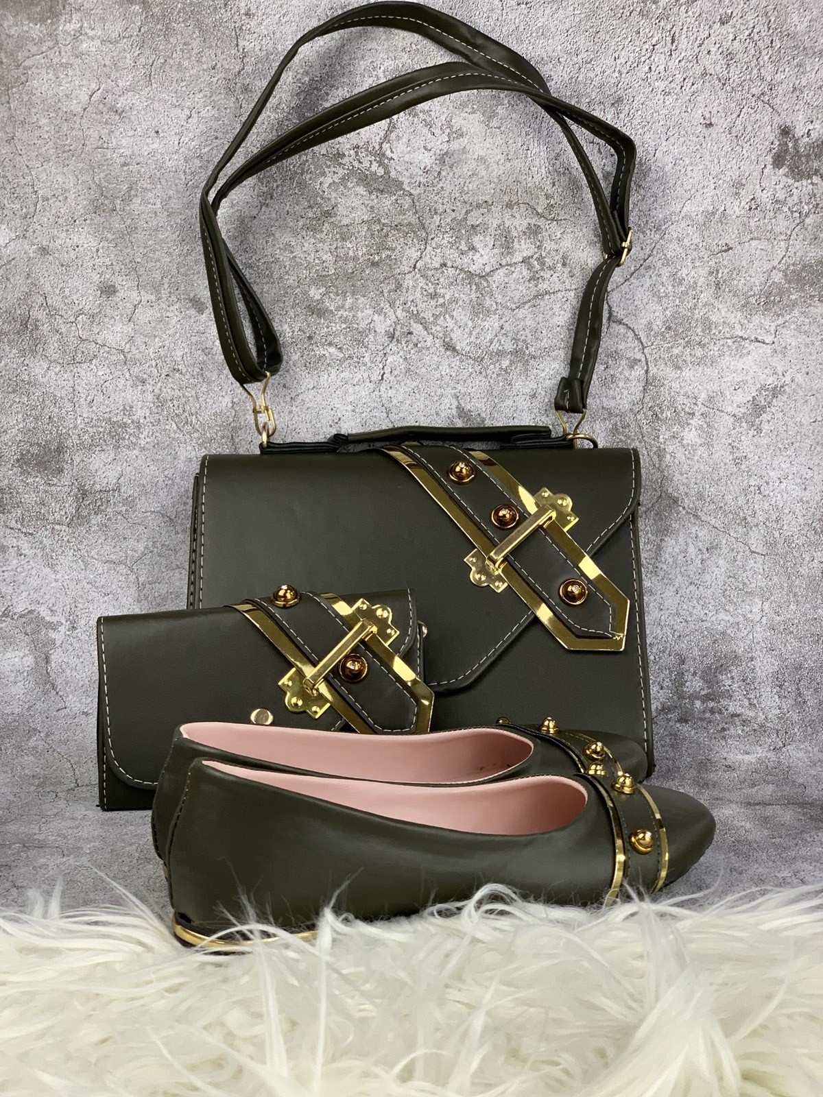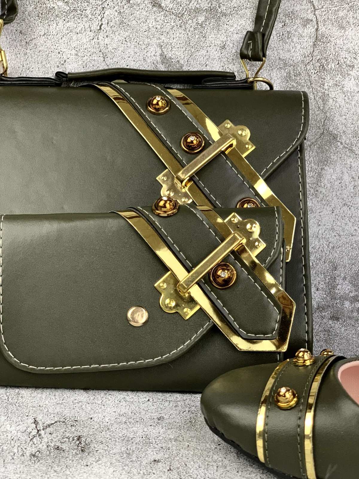 Women - Bag, shoes and wallet in oily with a decorative metal ring