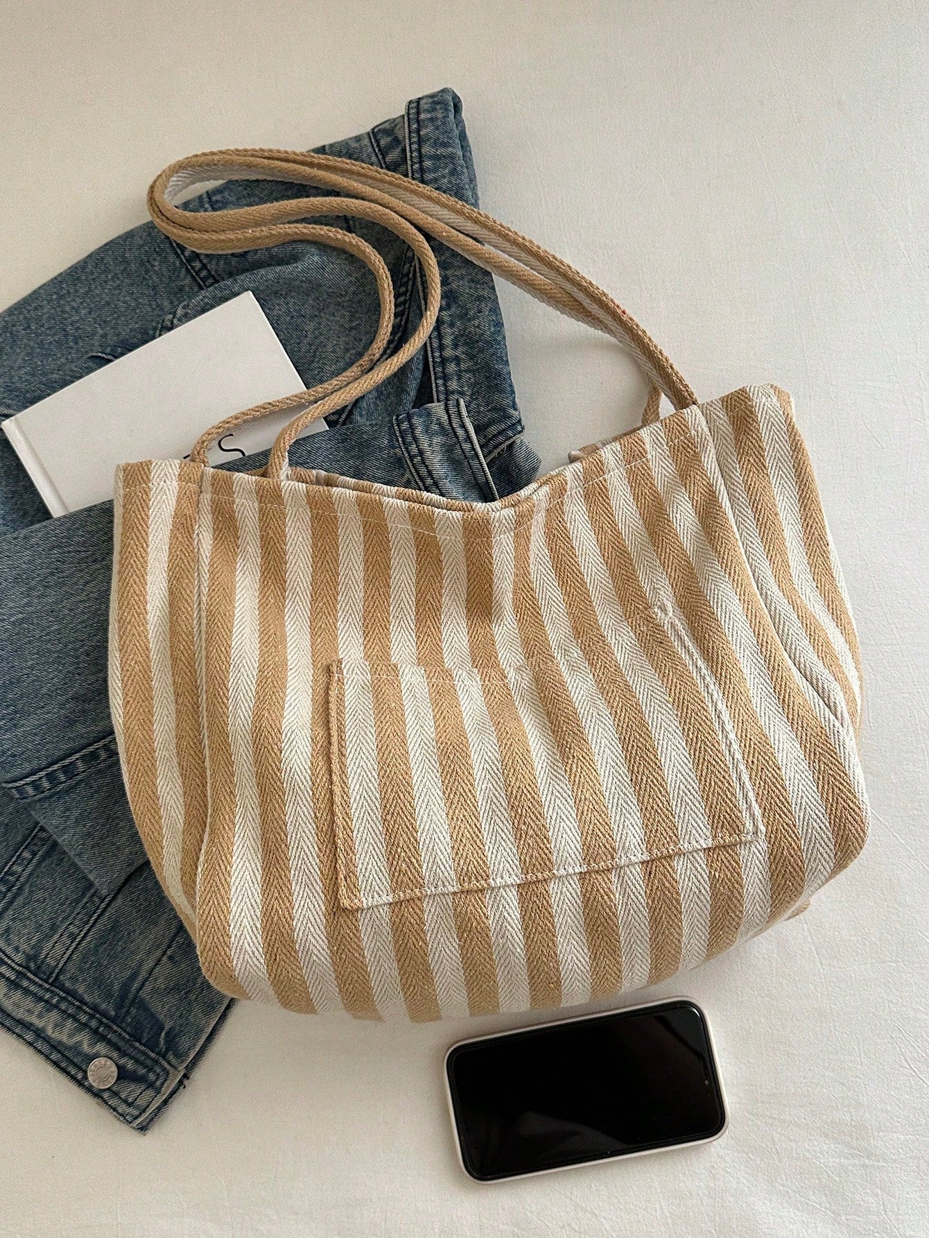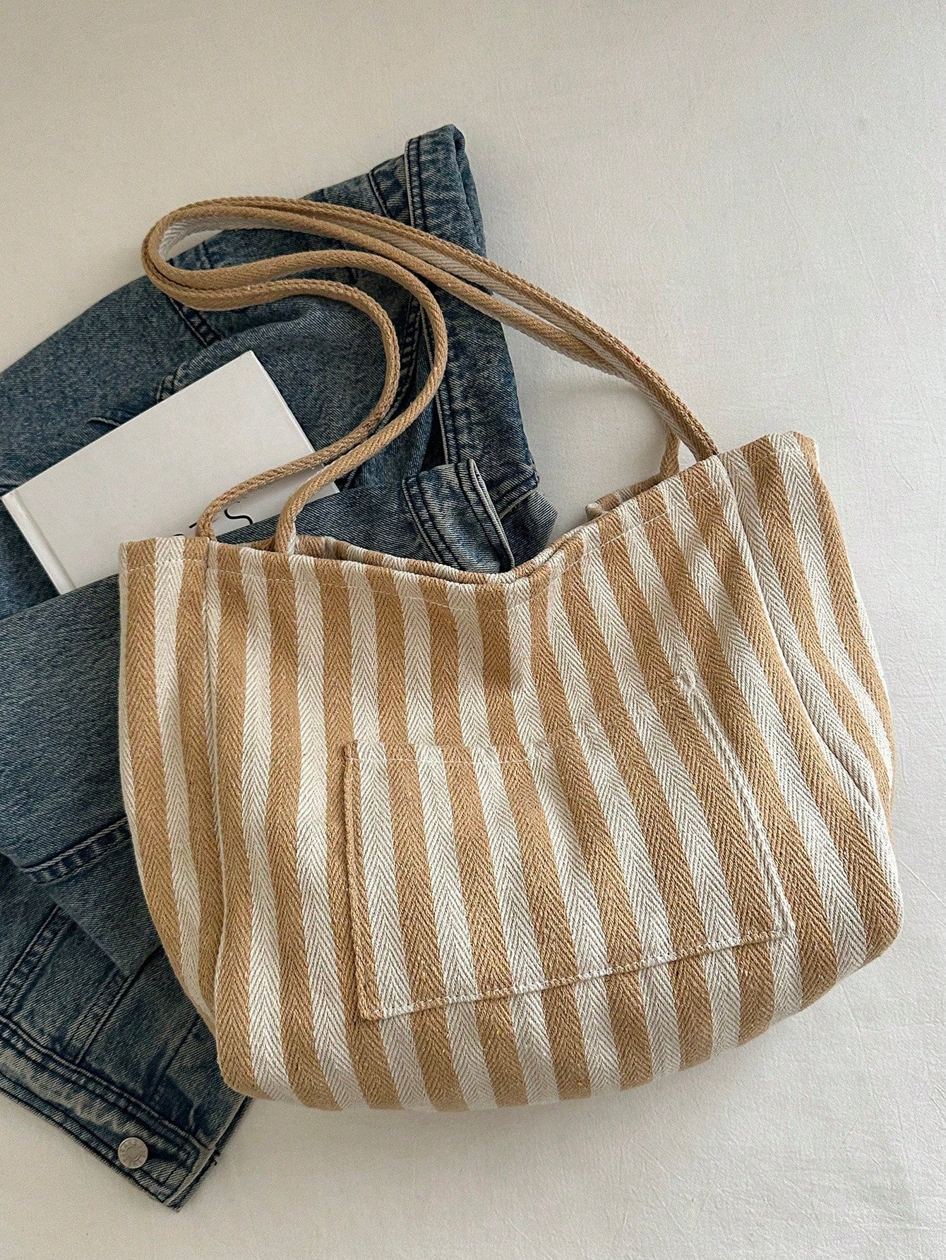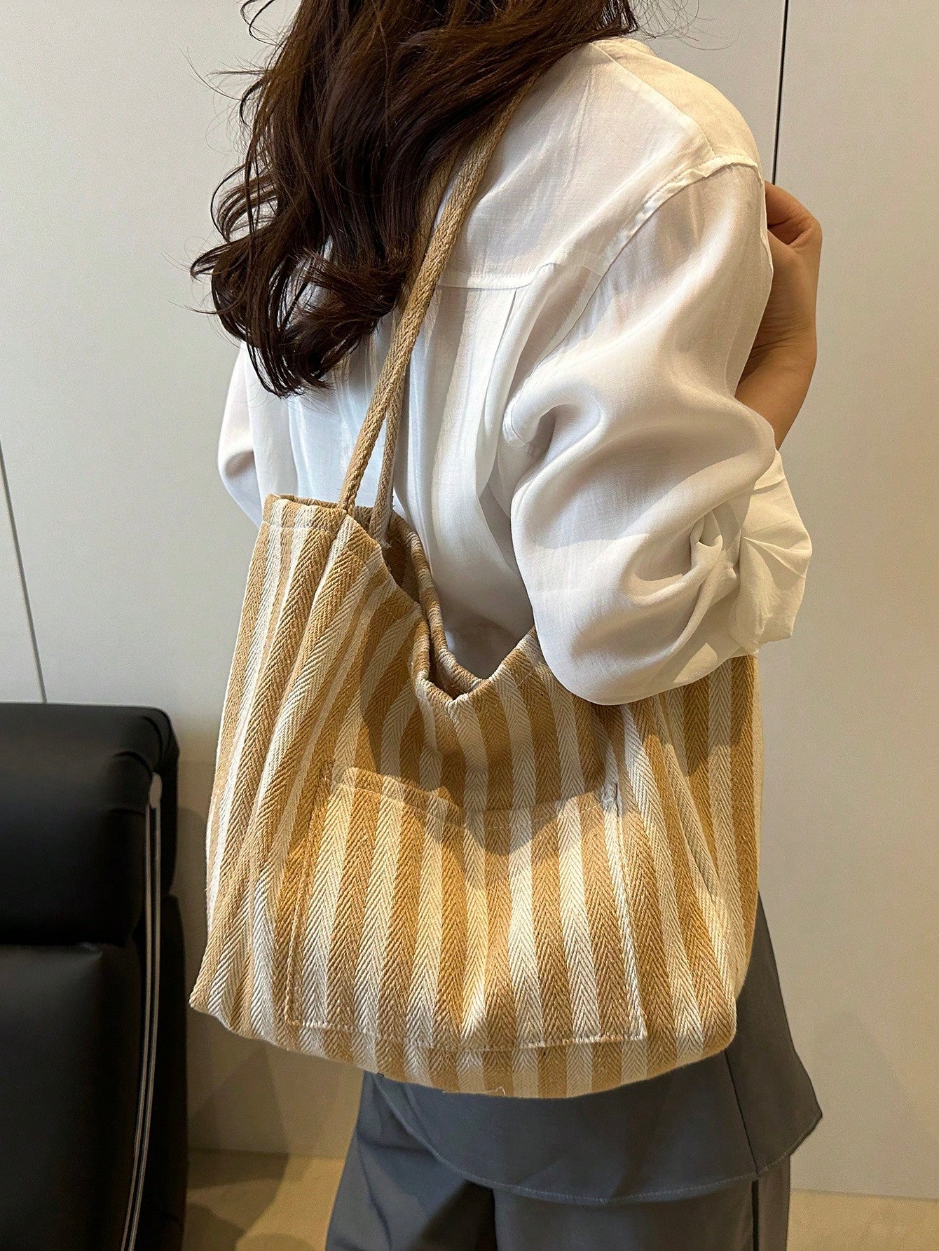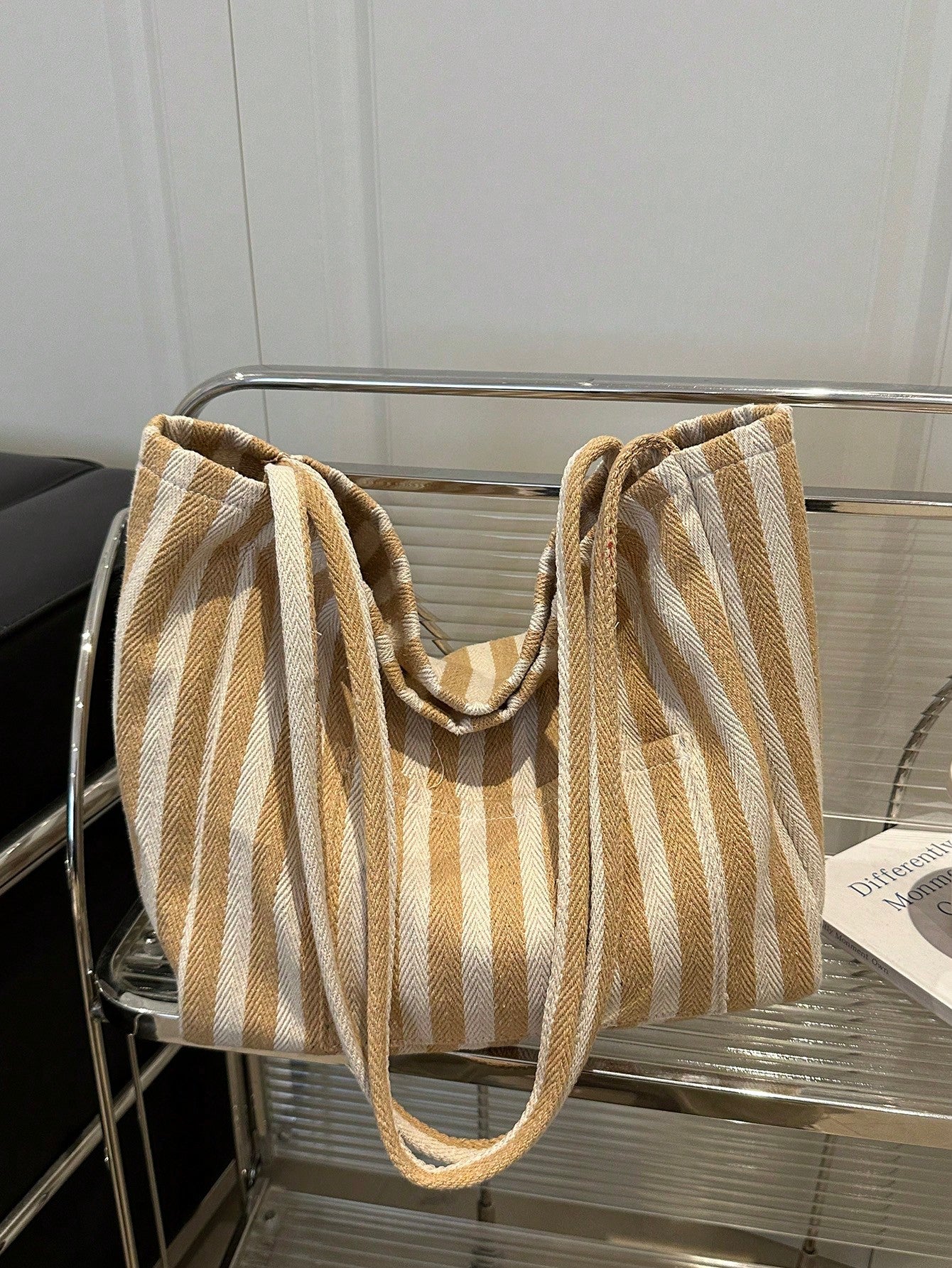 Chic Retro Striped Canvas Tote Bag - Artistic Style