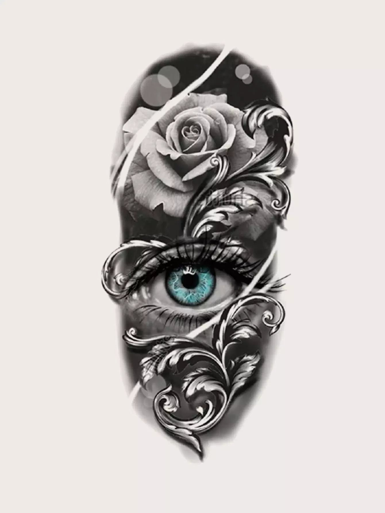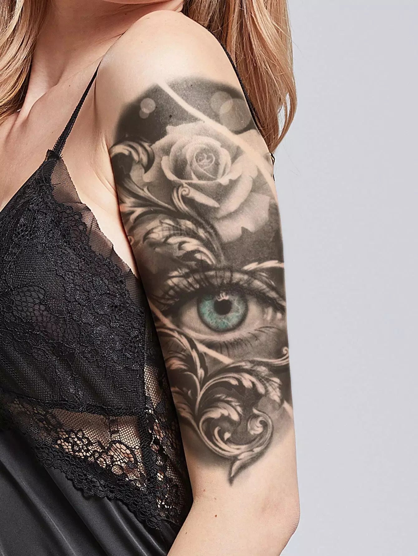 Women - 1sheet Eye & Floral Pattern Tattoo Sticker
