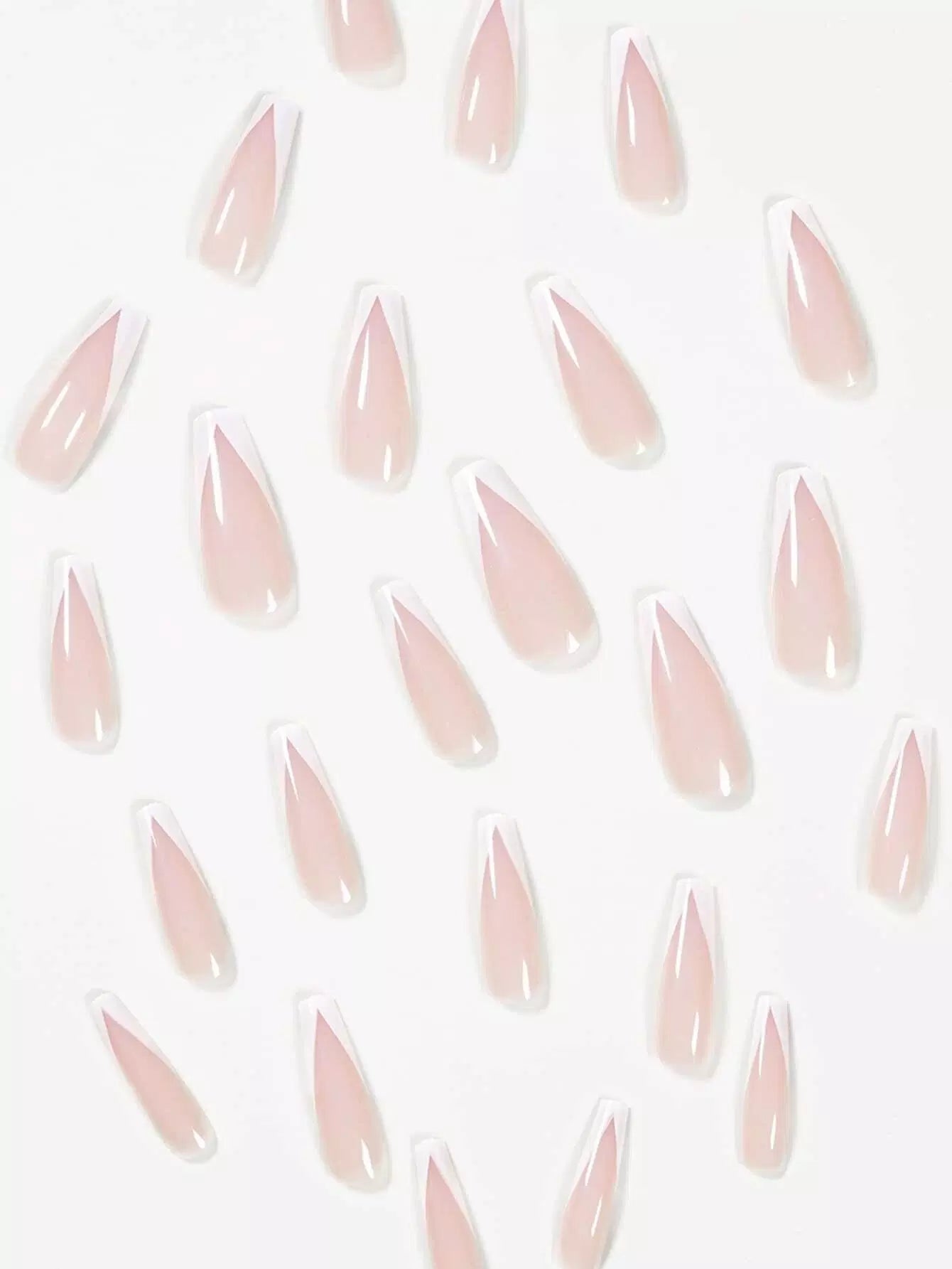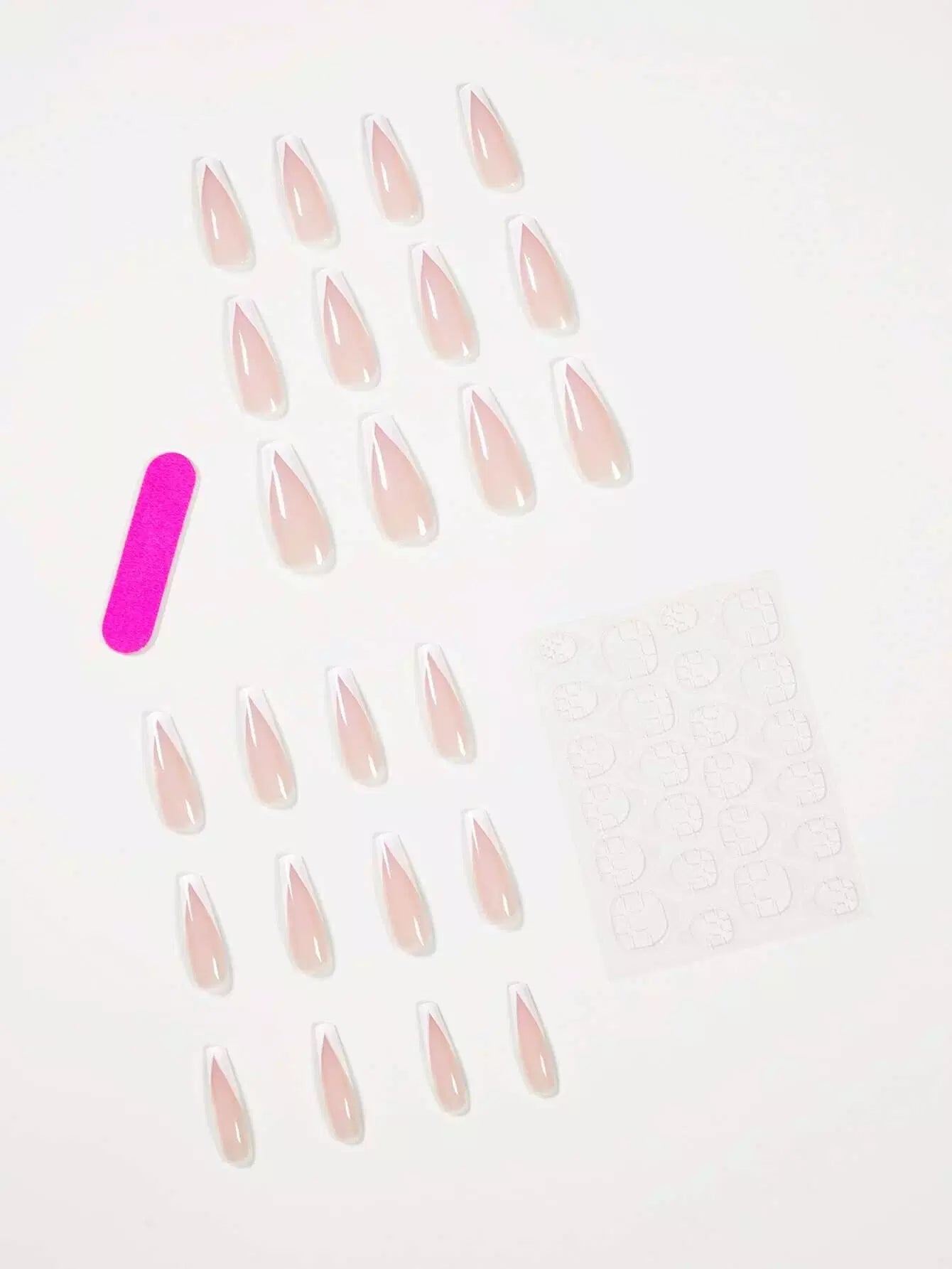 Women - 24pcs Color Block Fake Nail & 1sheet Tape