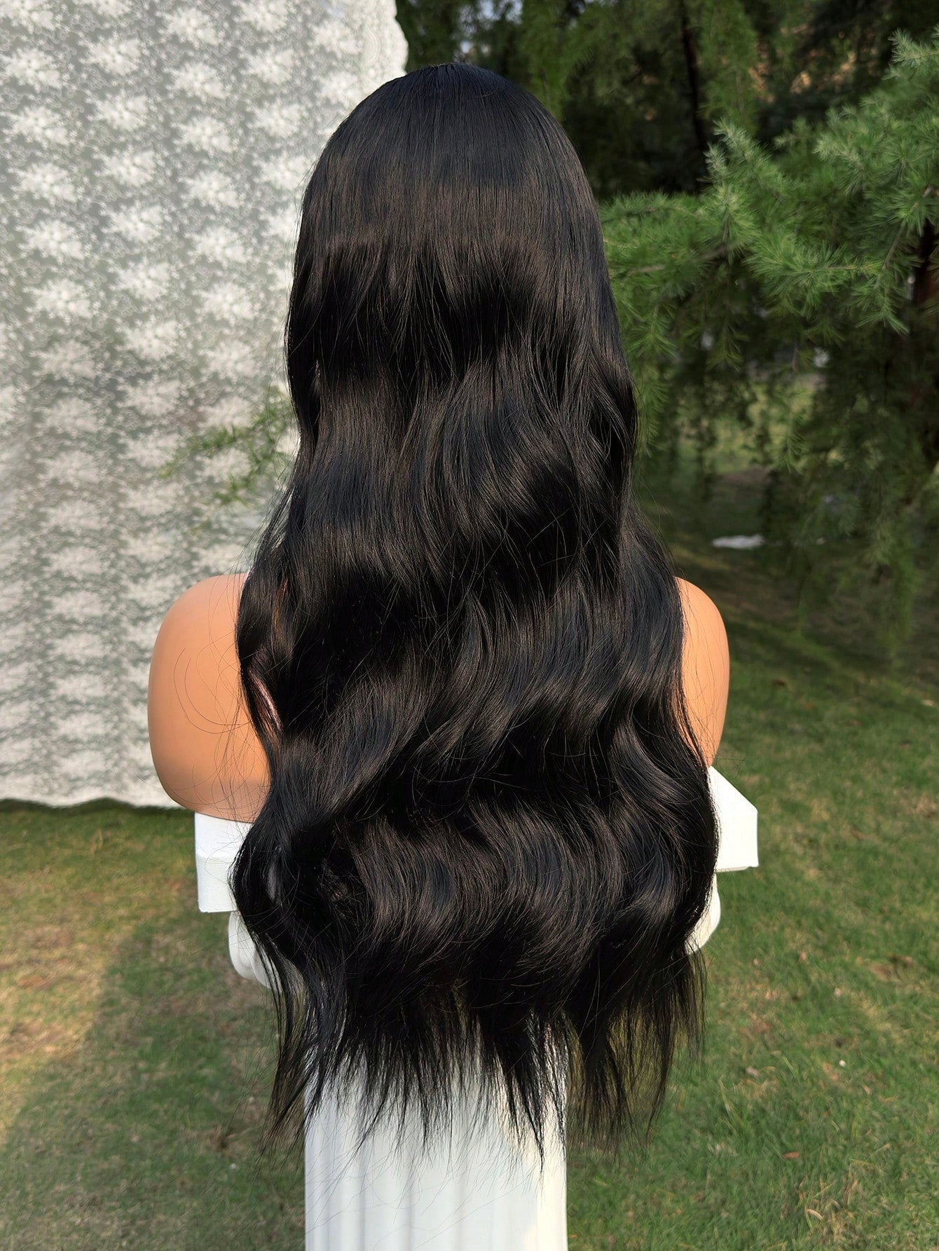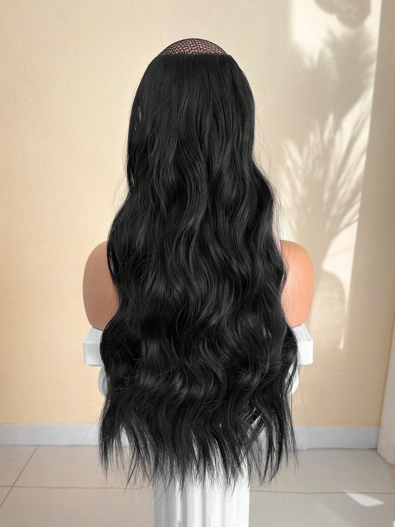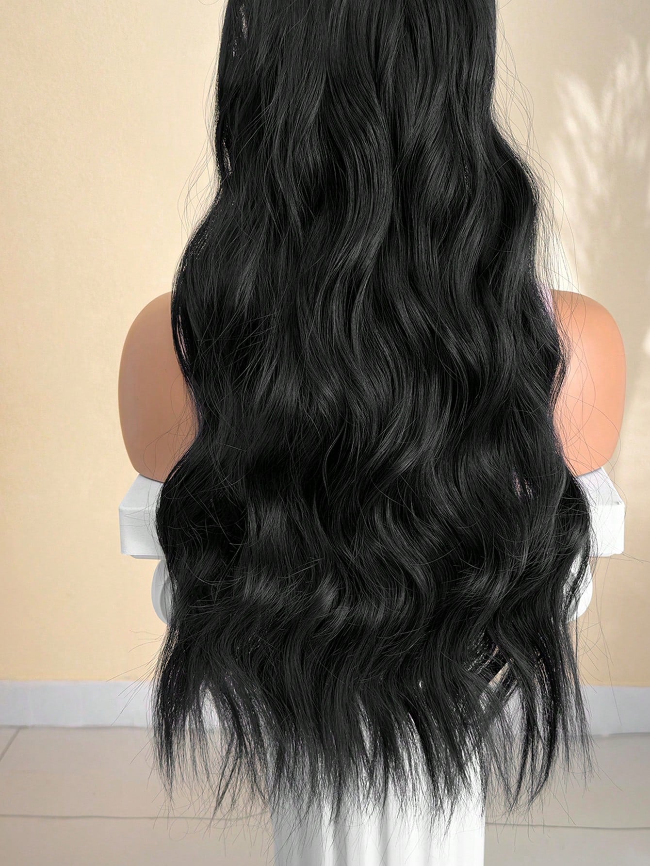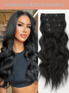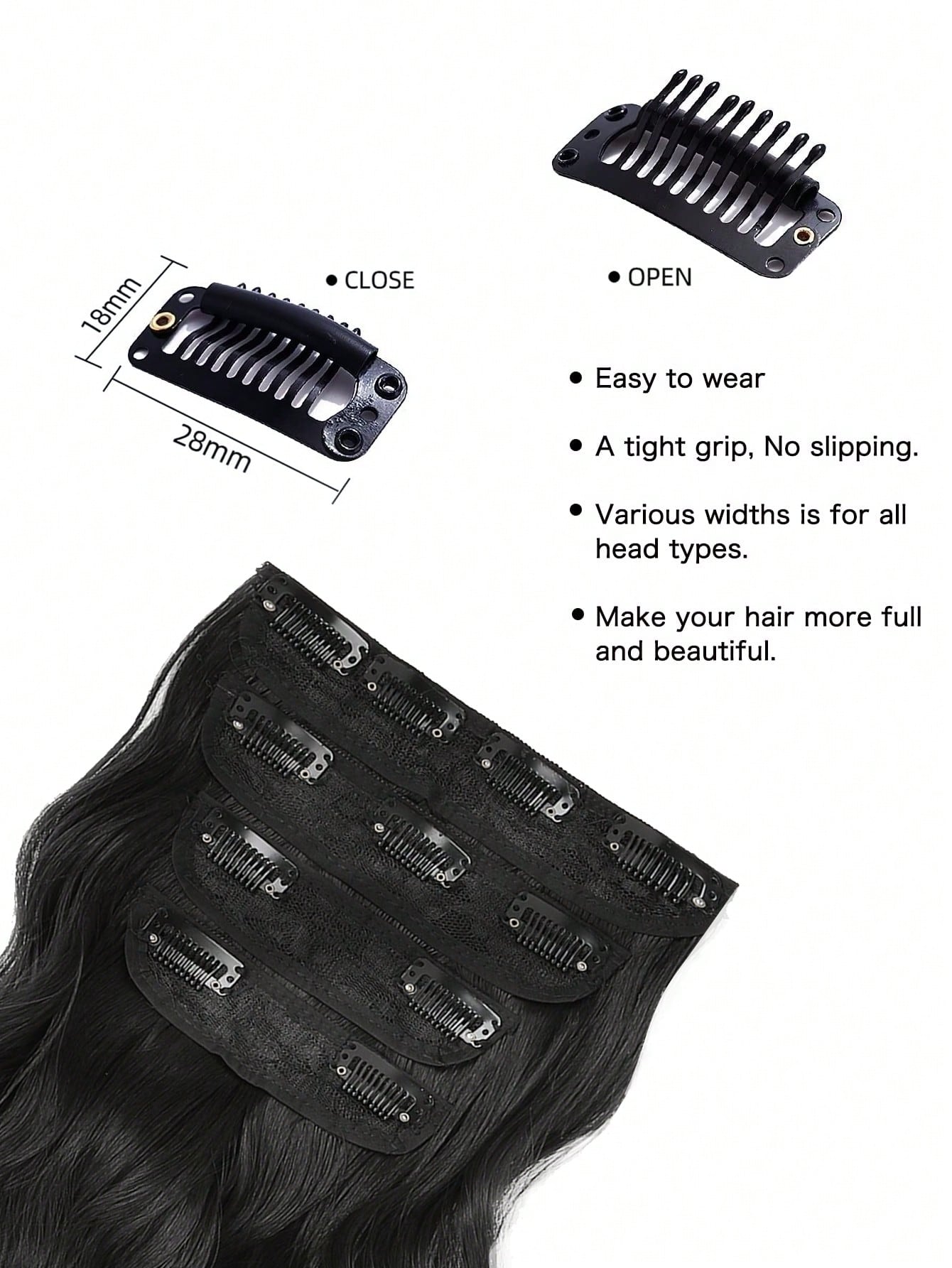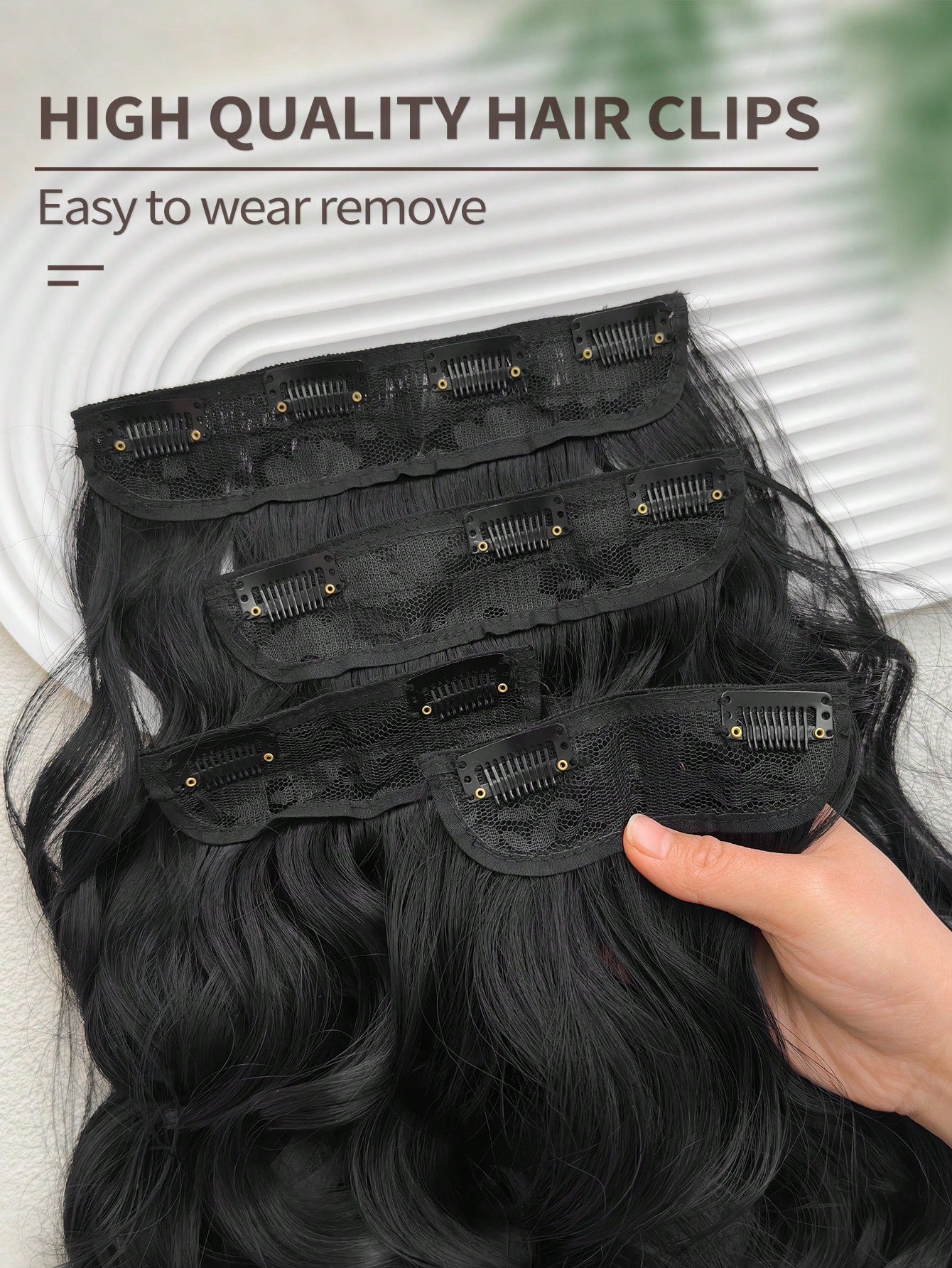Clip In Hair Extensions Black Color 24 Inch 4pcs Set Long Natural Water Wave Heat Resistant Fiber Synthetic