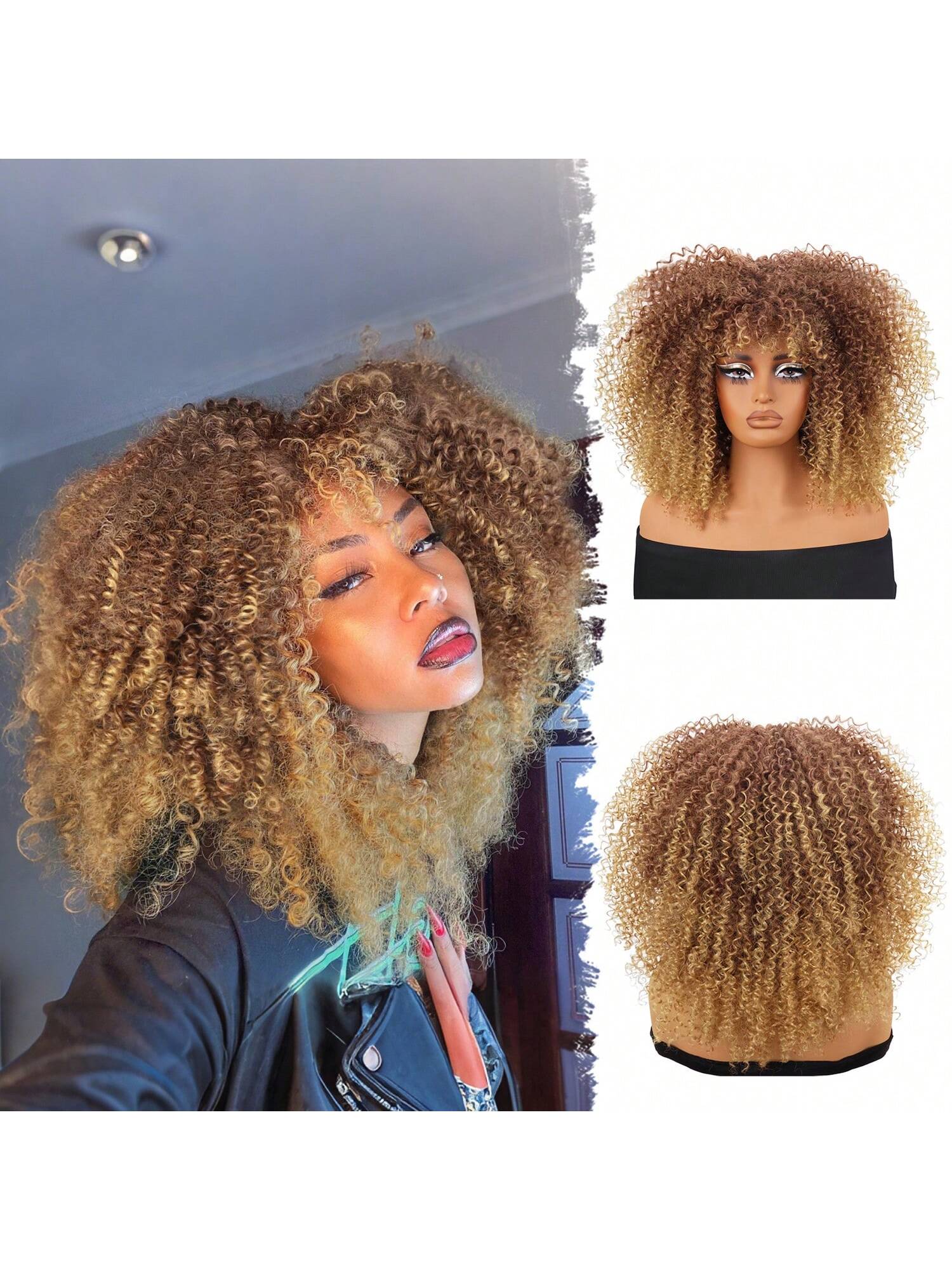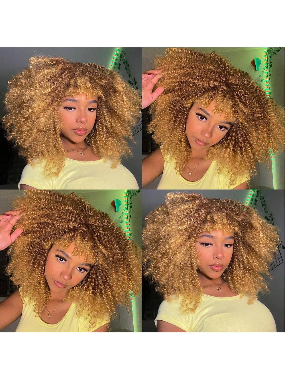 Curly Wigs For Women Afro Bomb Curly Wig With Bangs Synthetic Fiber Glueless Long Kinky Curly Hair