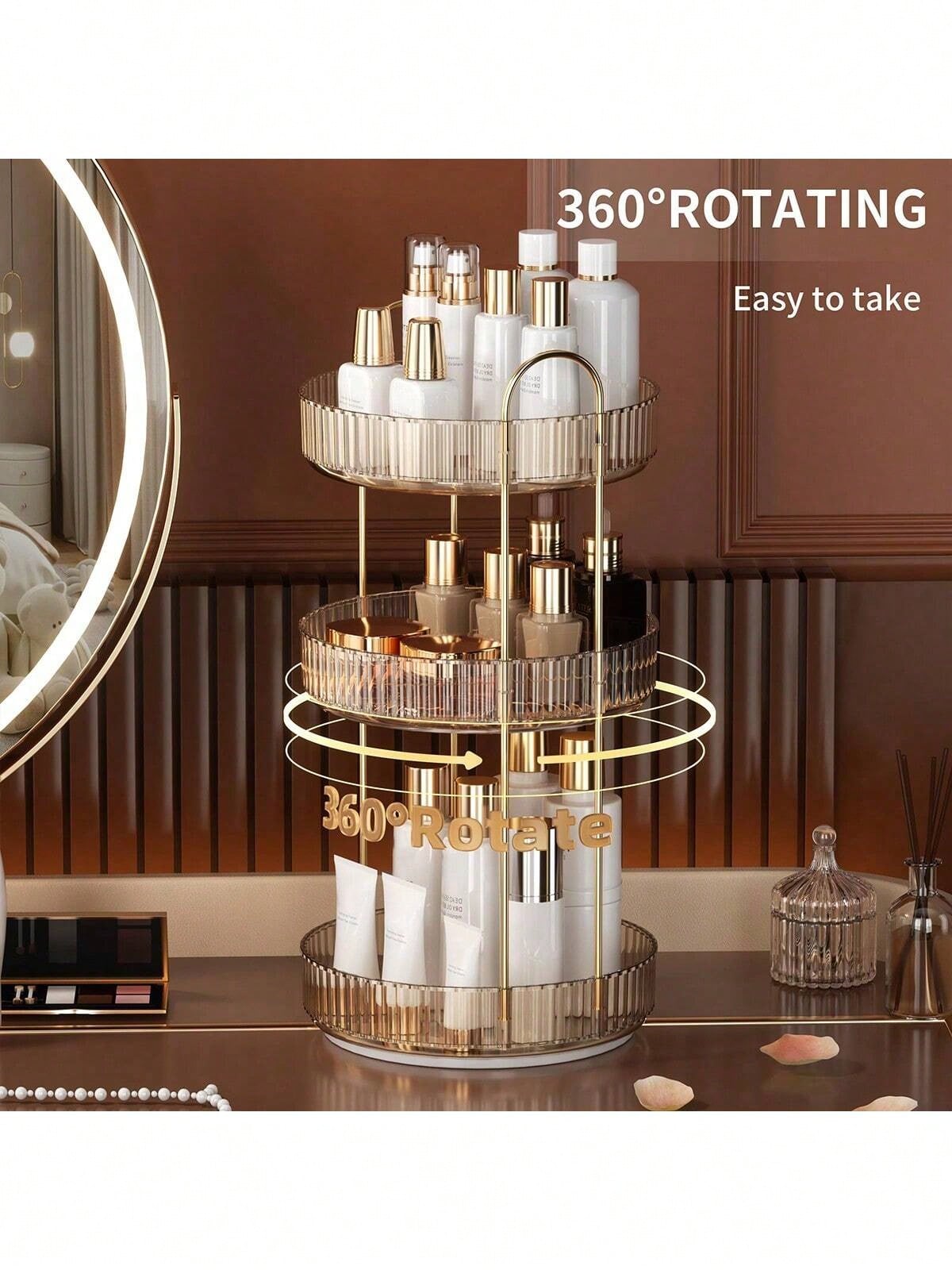 Rotating Makeup Organizer - High-Capacity Bathroom Organizer Countertop Skincare Perfume Cosmetics Organizer