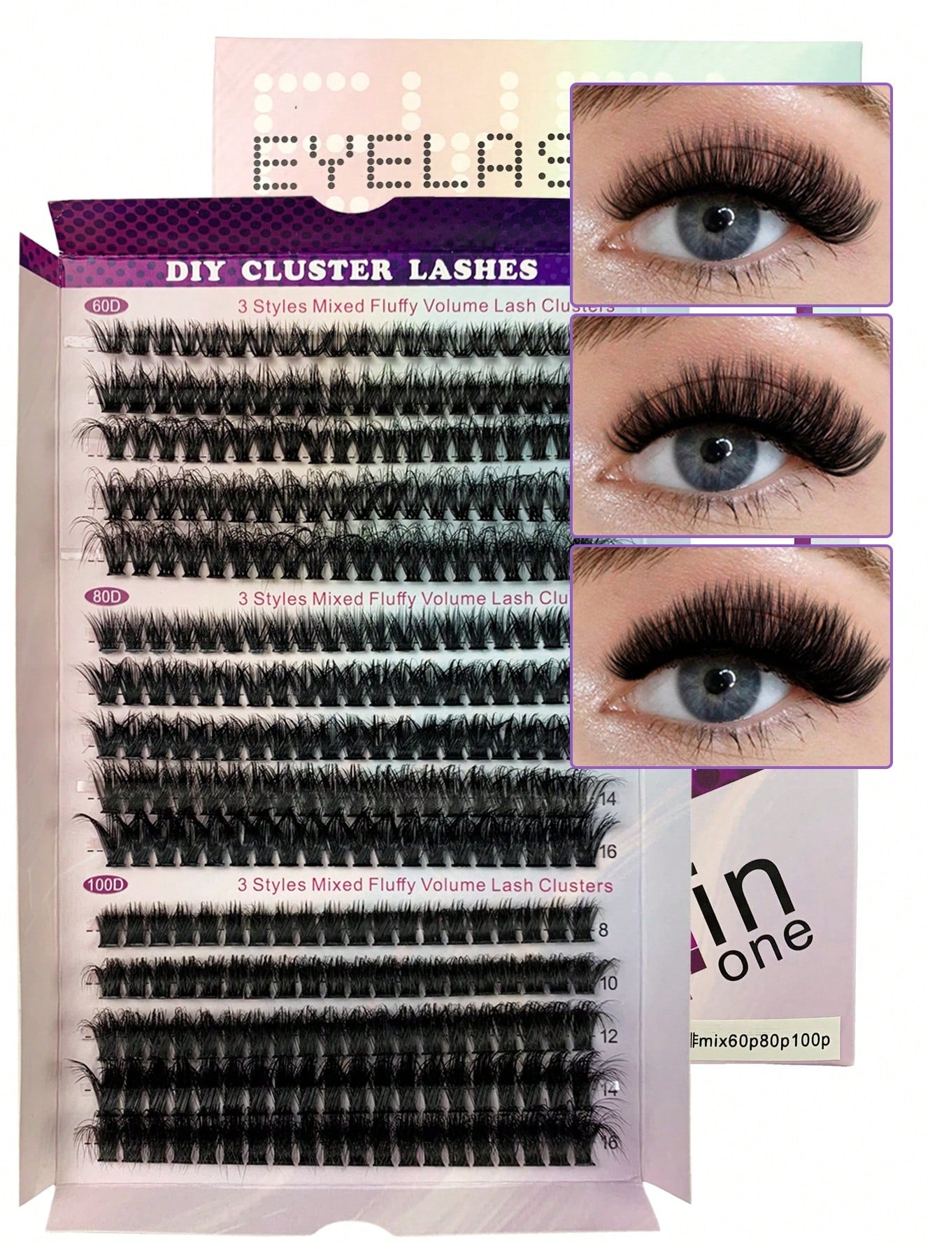 Hinarin 300 Pcs D Curl Fluffy Lash Clusters 60D+80D+100D Individual Eyelash Natural Look Thick Cluster