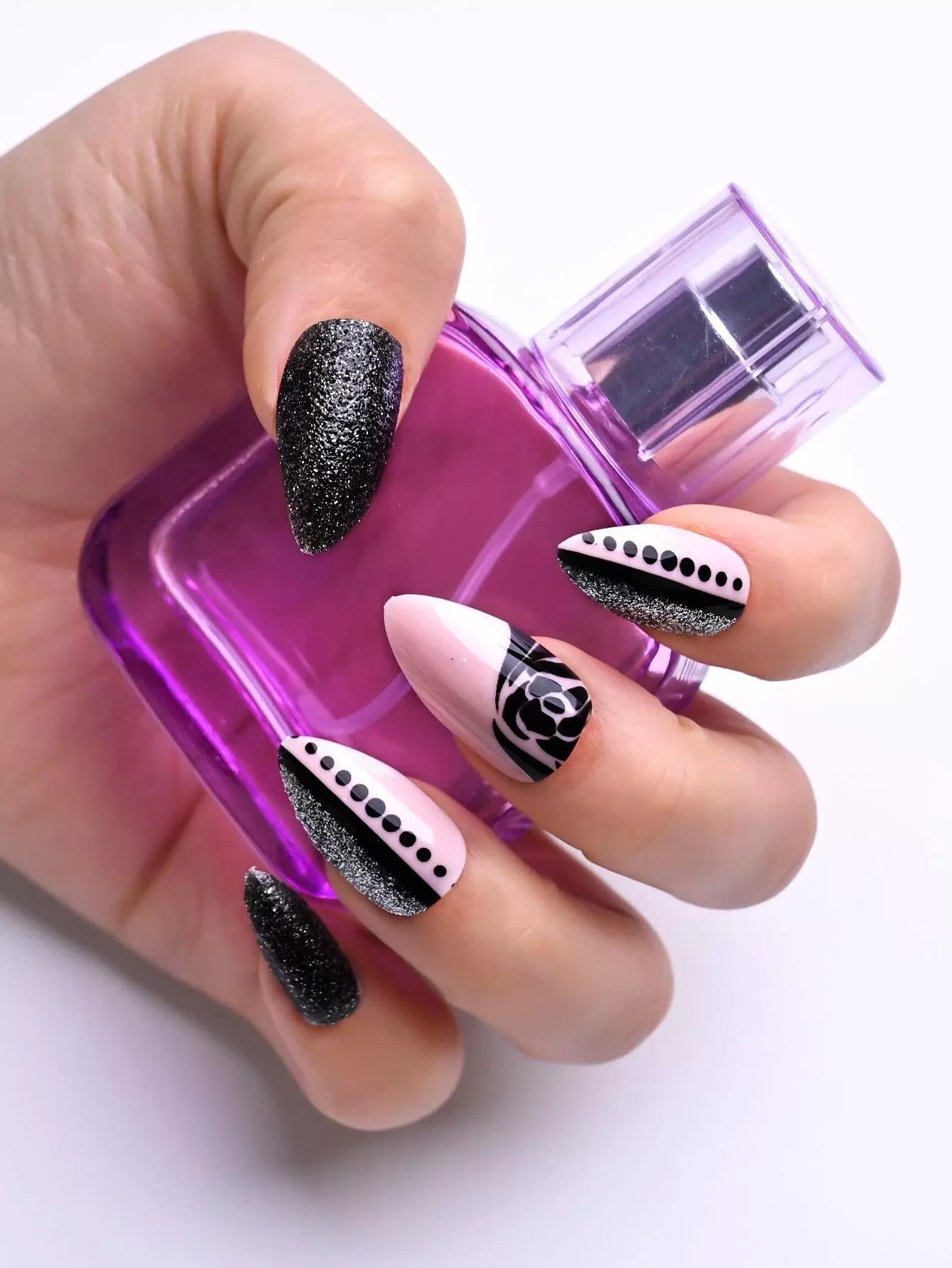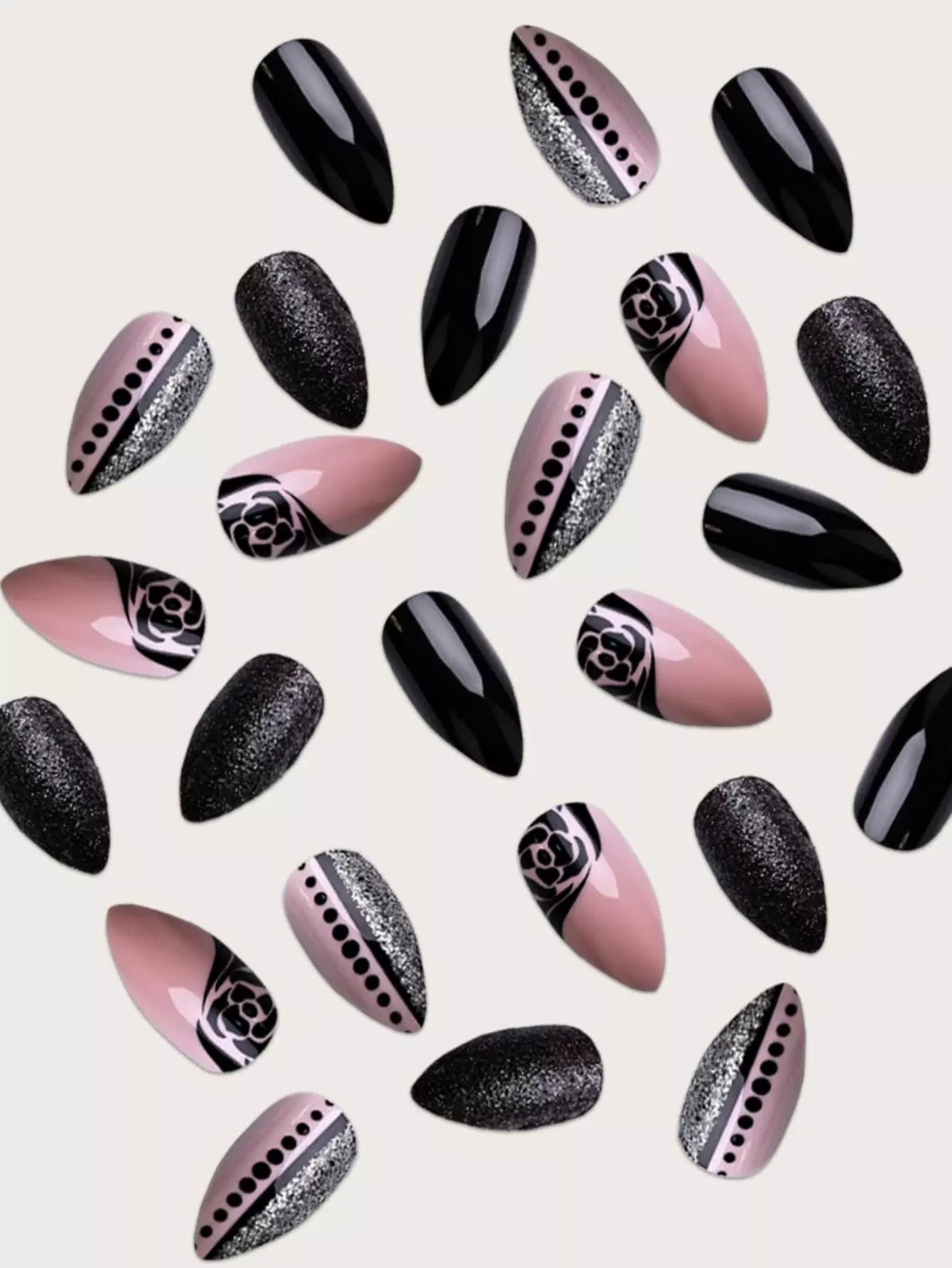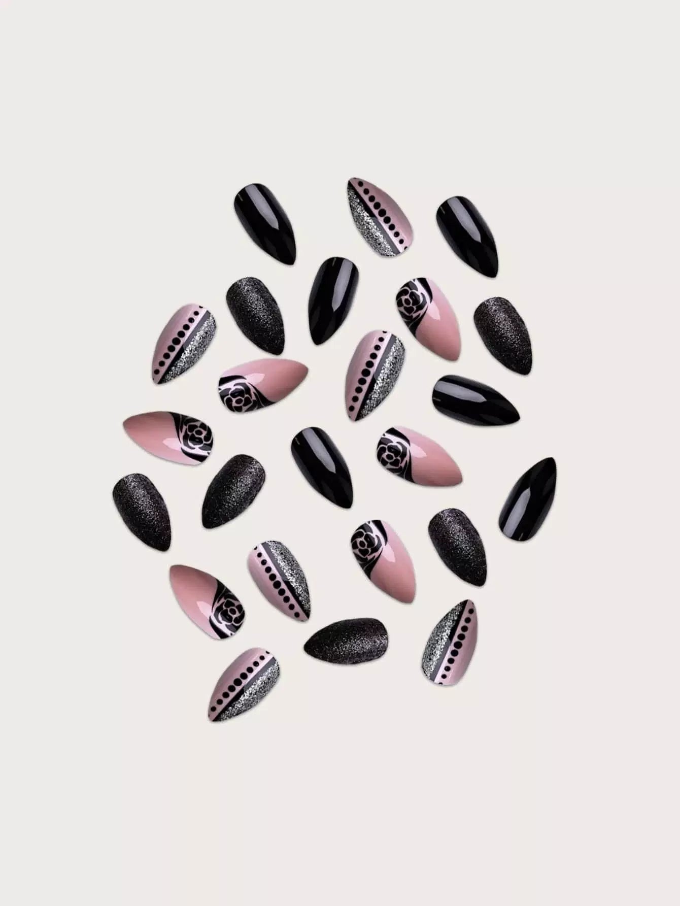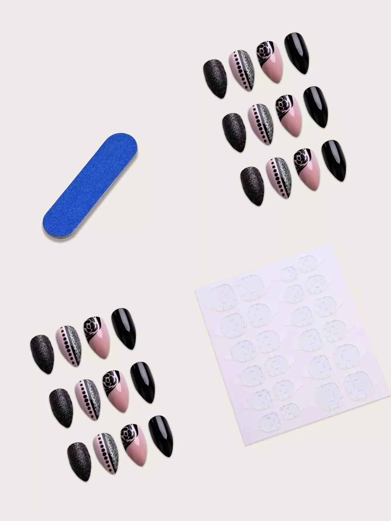 24pcs Floral Fake Nail & 1sheet Tape & 1pc Nail File