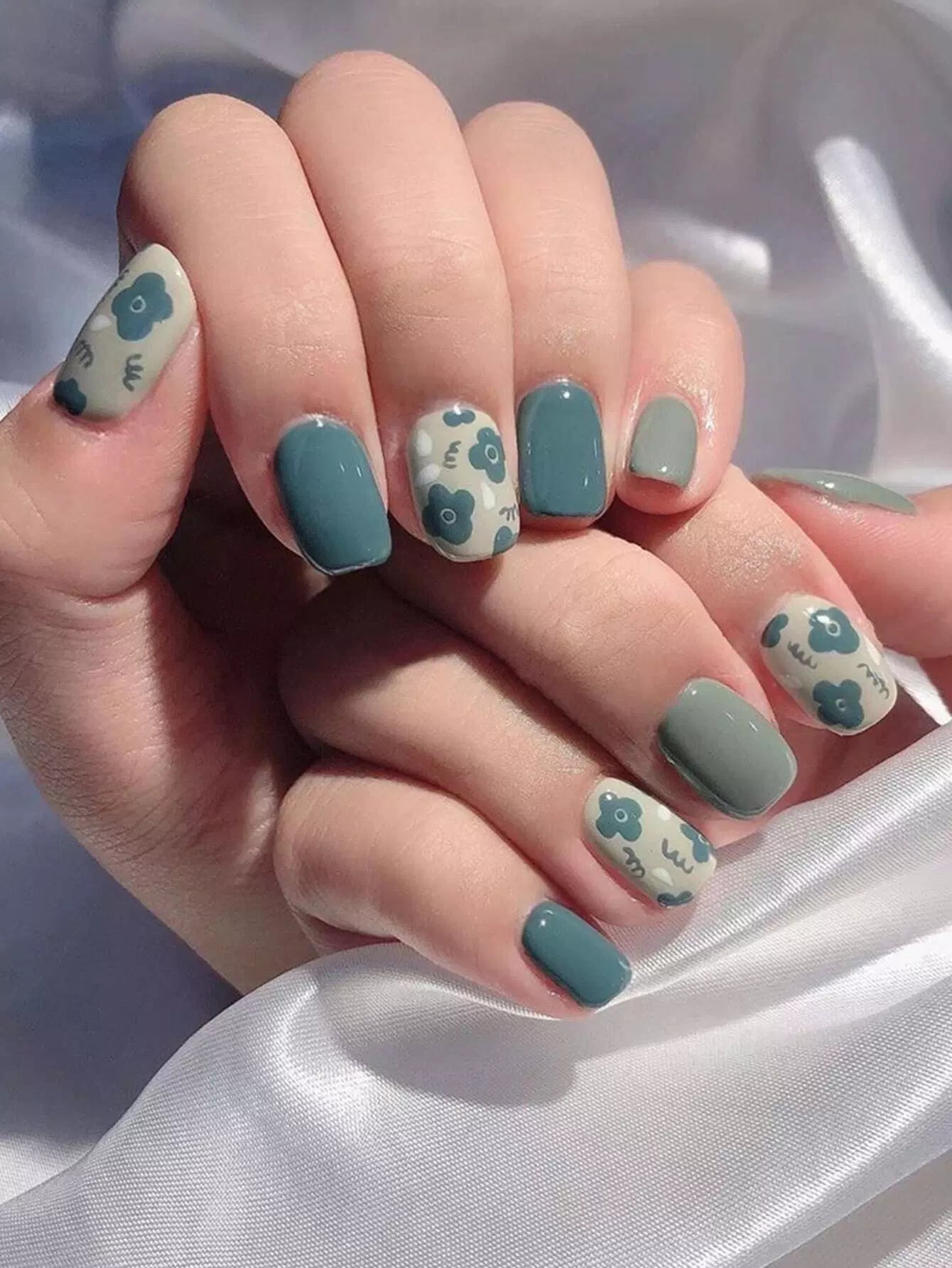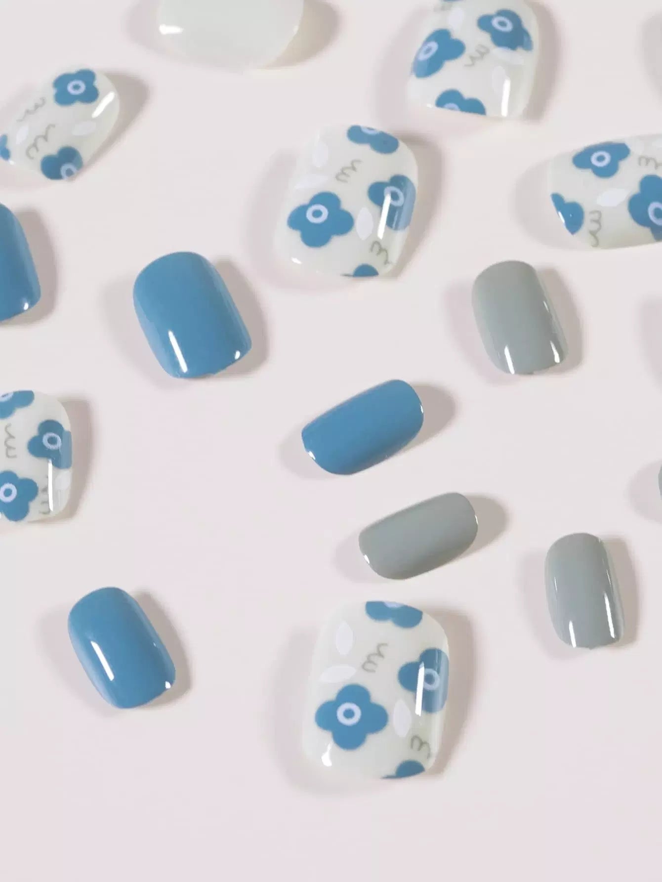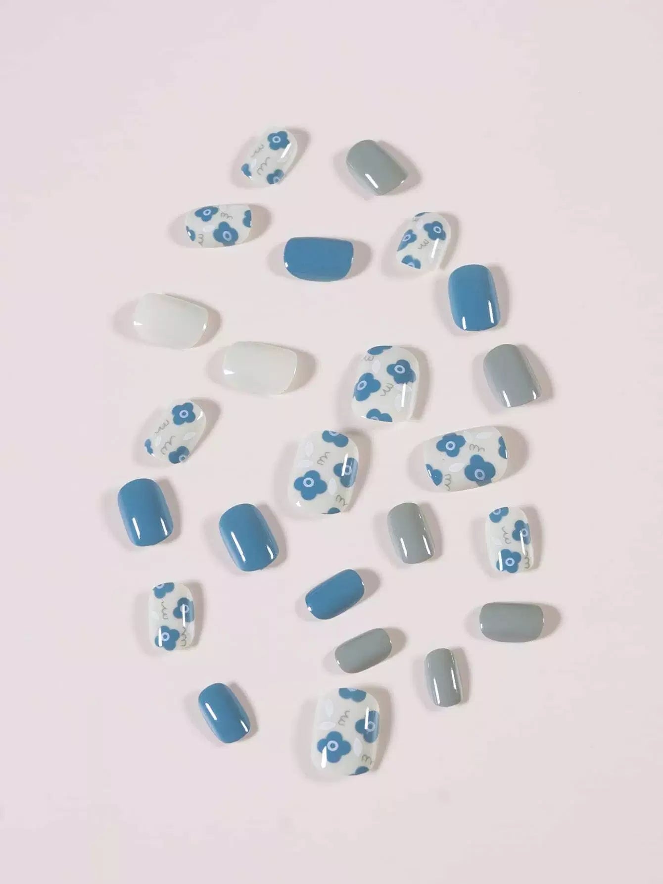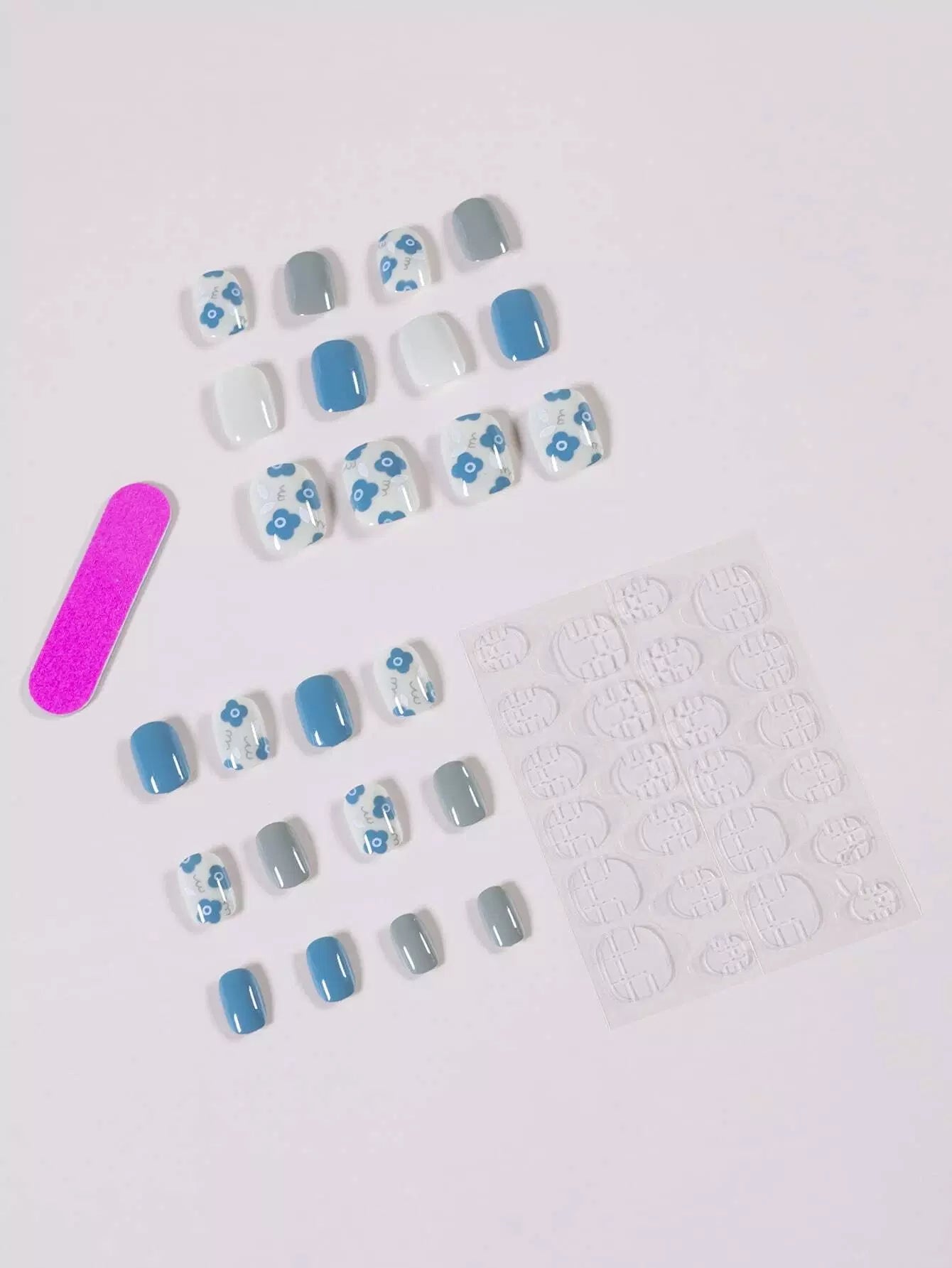 Women - 24pcs Flower Pattern False Nail & 1pc Nail File & 1sheet Tape