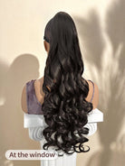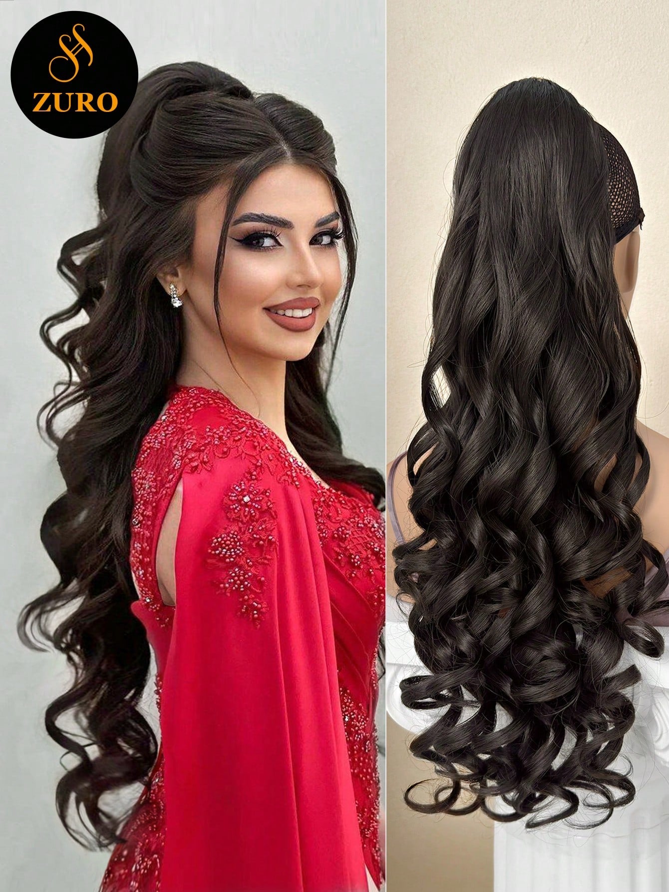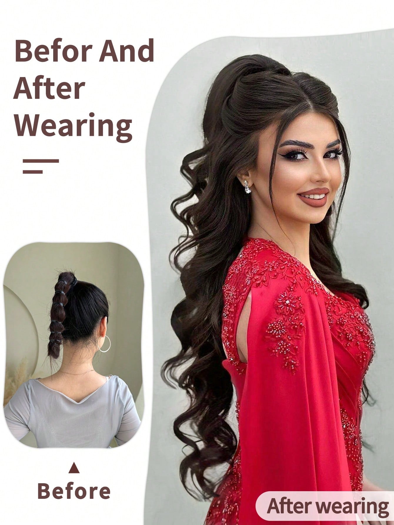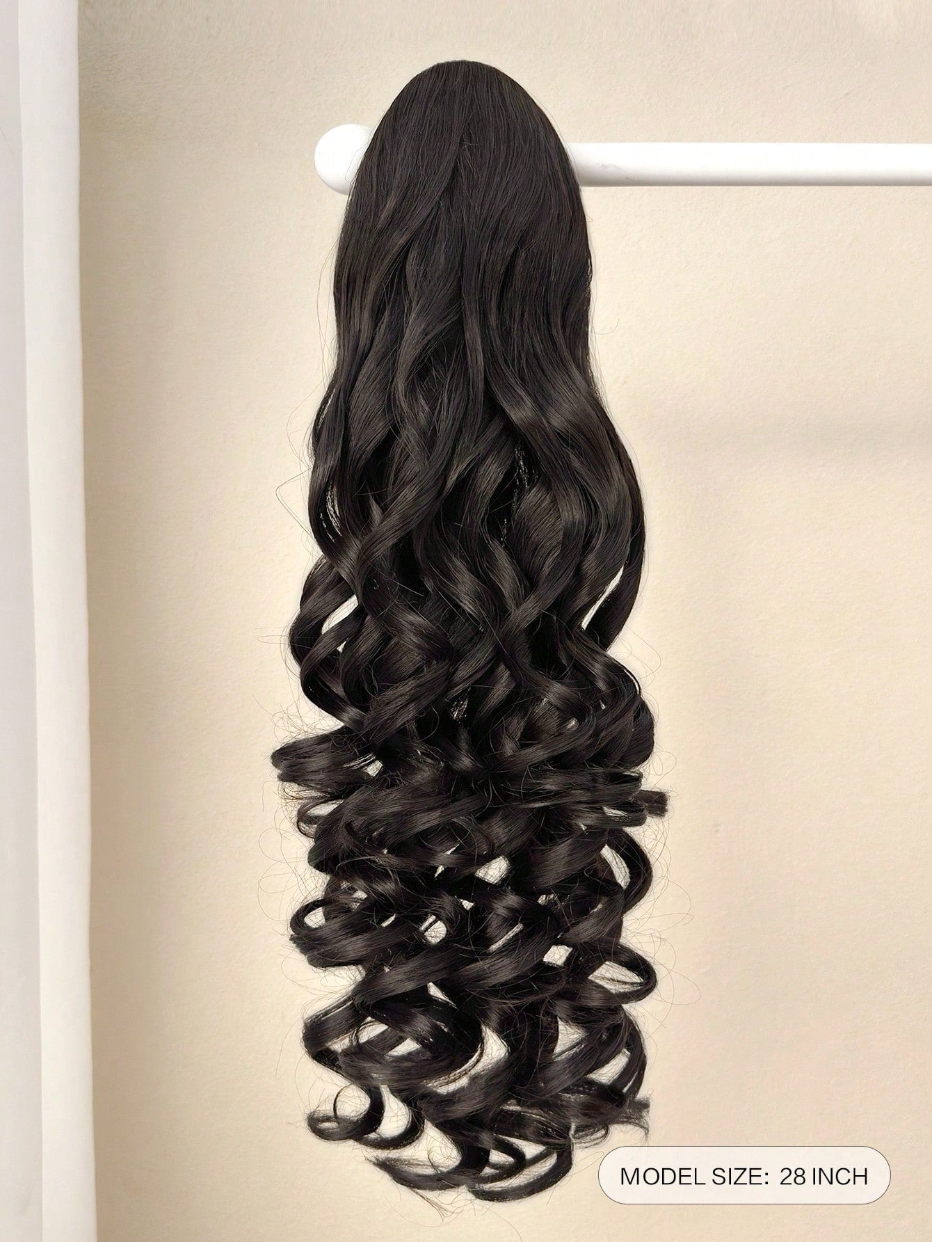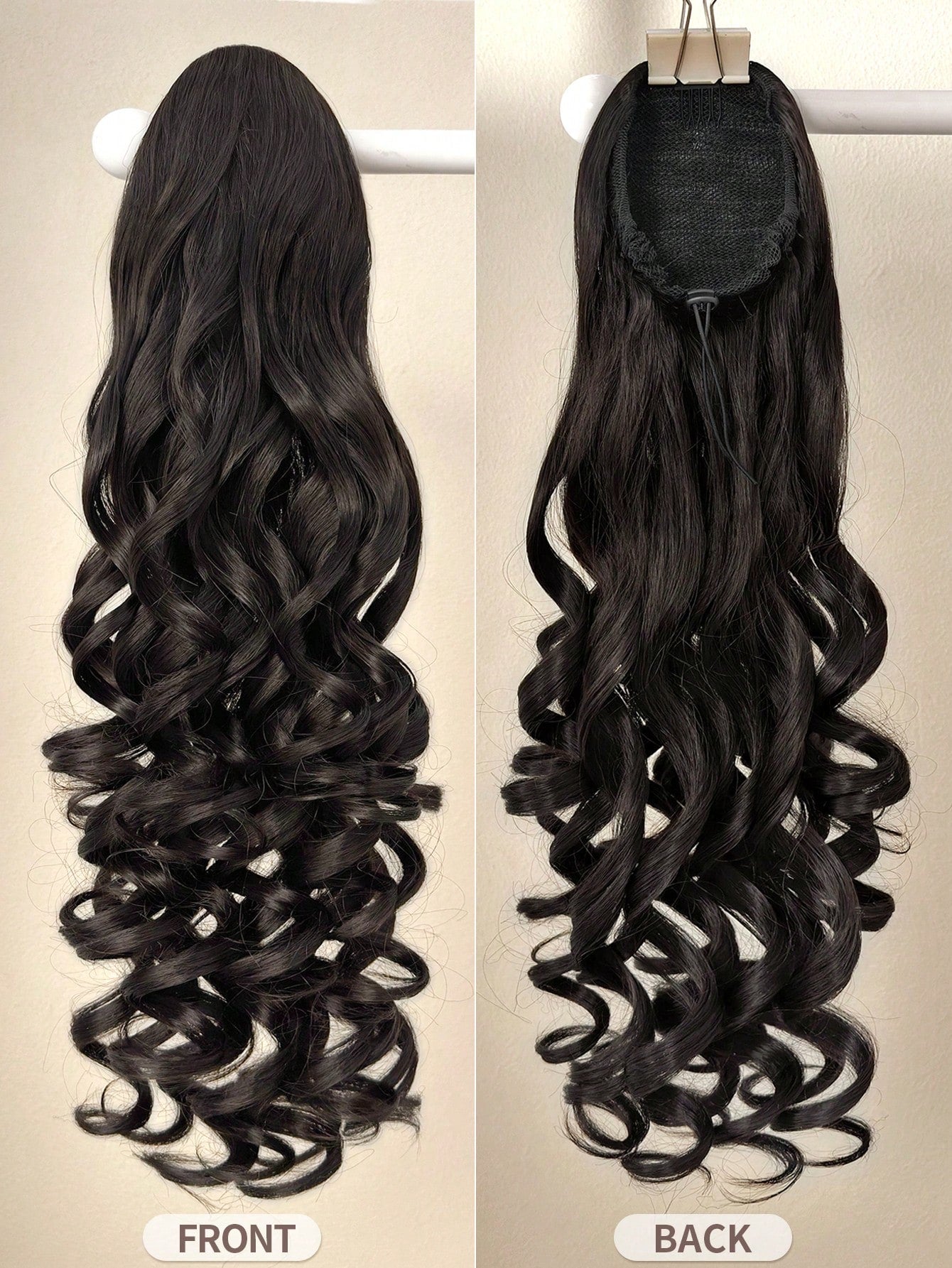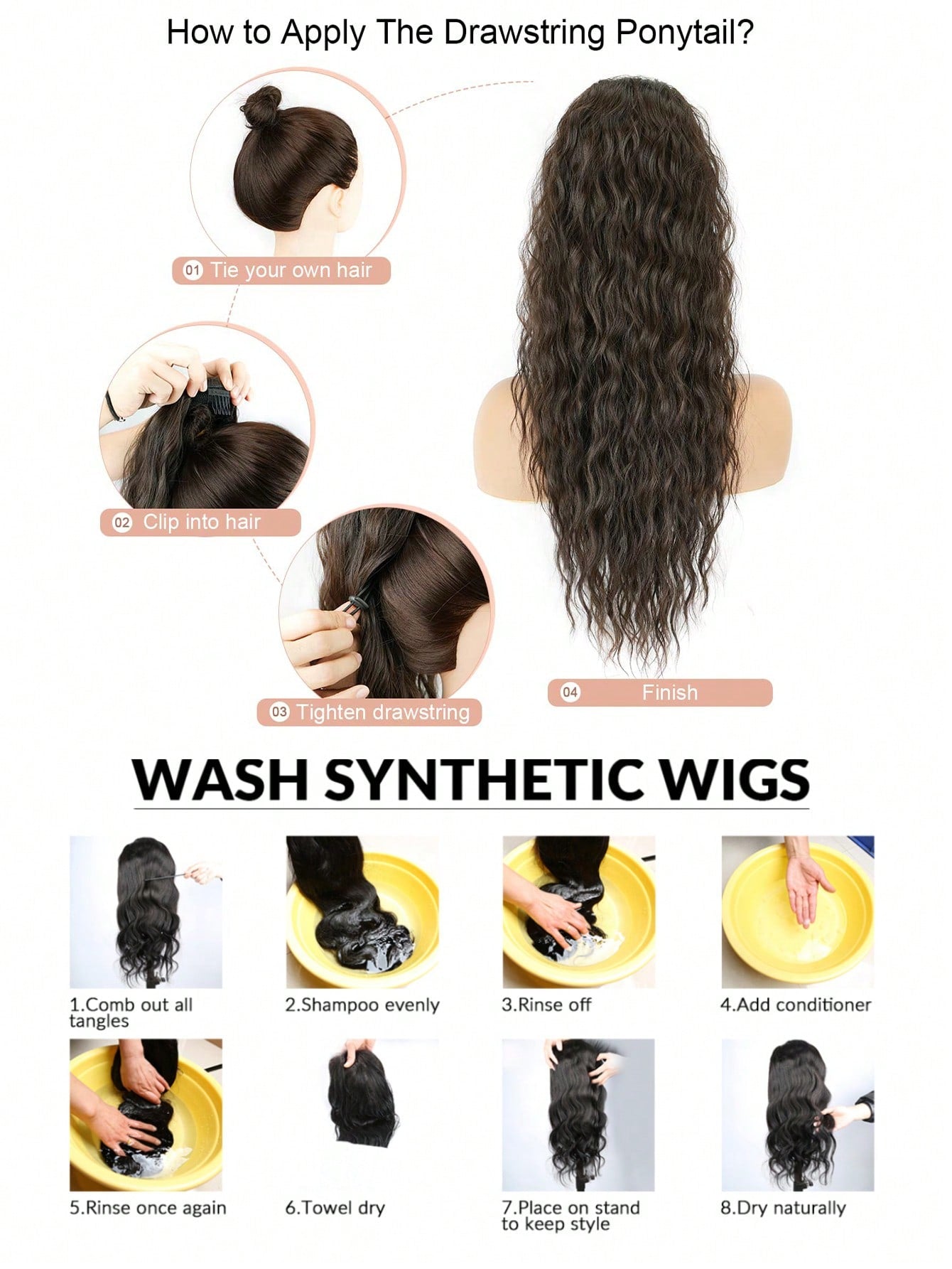 Drawstring Ponytail Extension Hair Clip In Hair Extensions 28 Inch Black Brown Long Natural Wave Heat