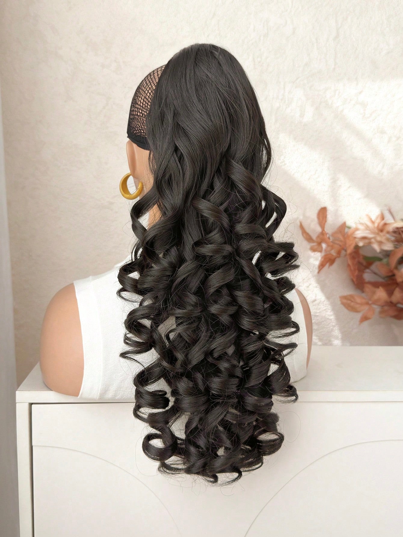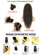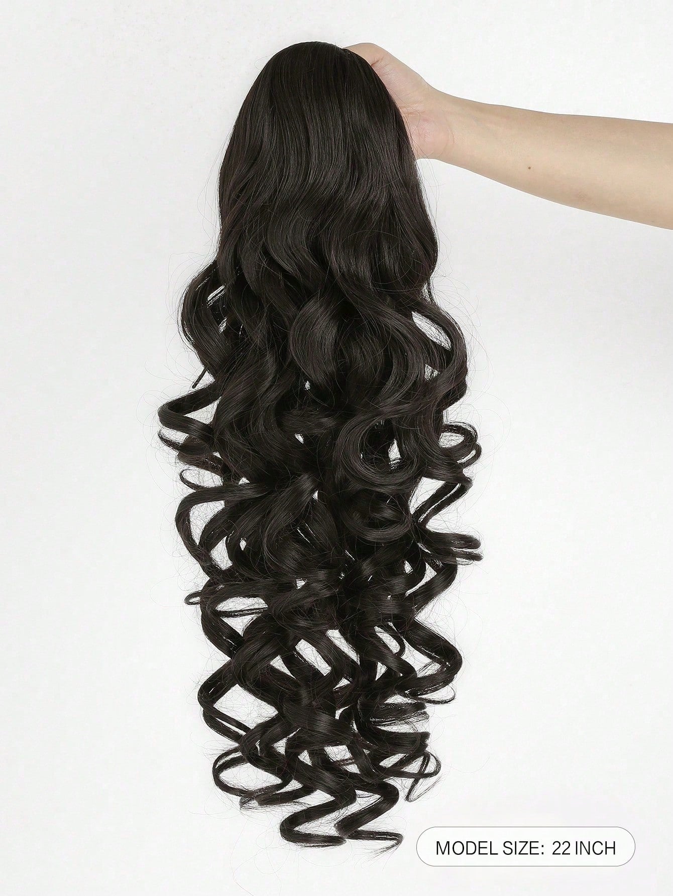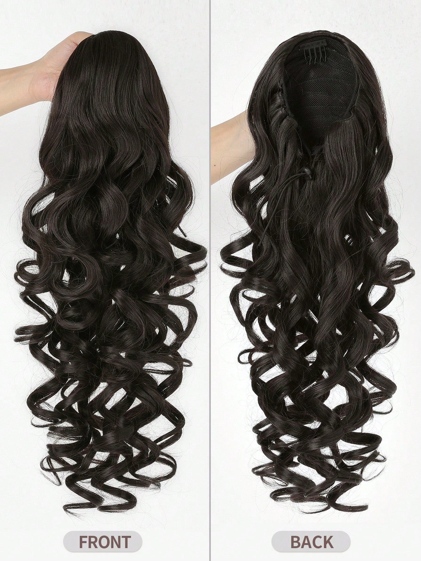 Ponytail Extension Hair Drawstring Clip In Hair Extensions 22 Inch Black Brown Long Natural Wave Heat