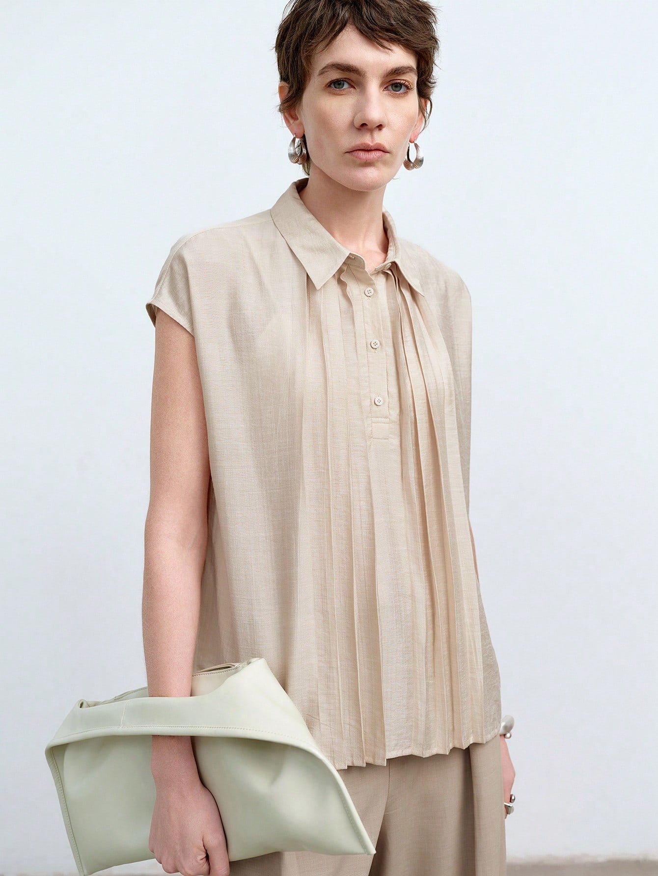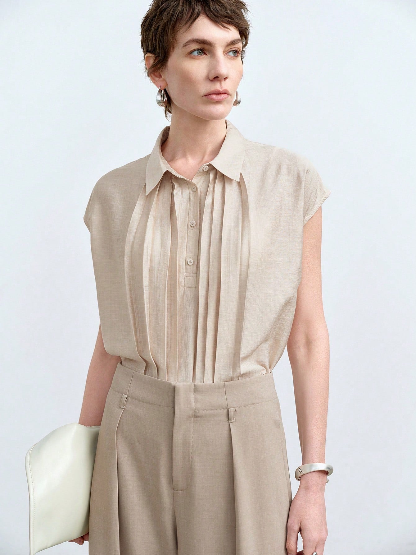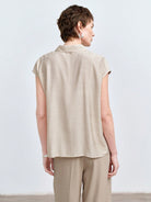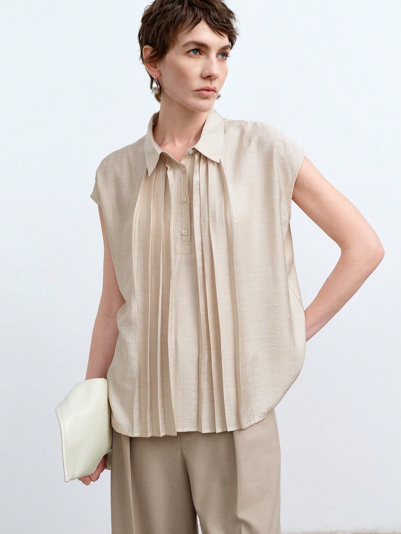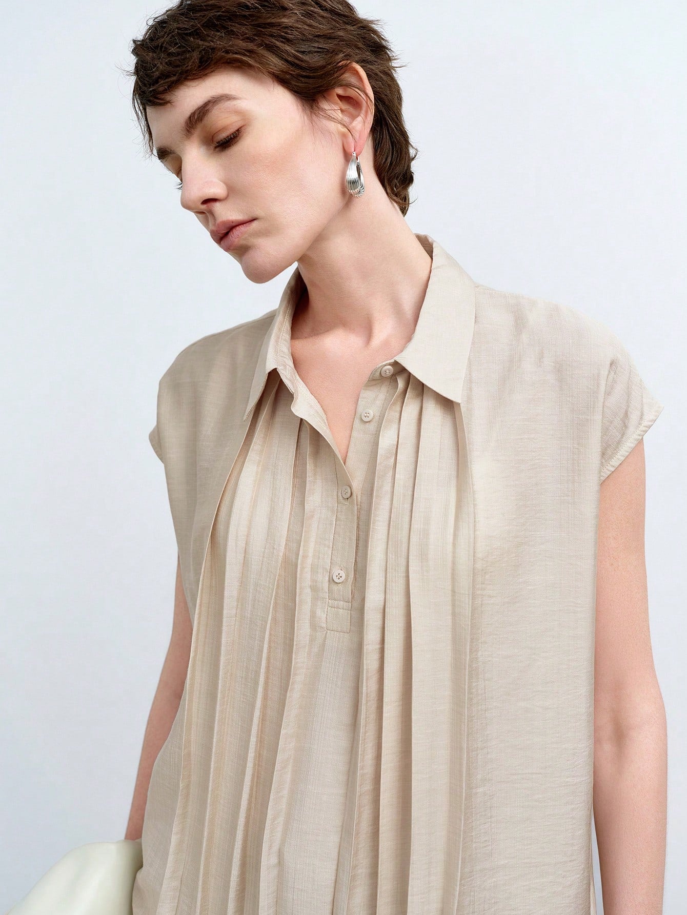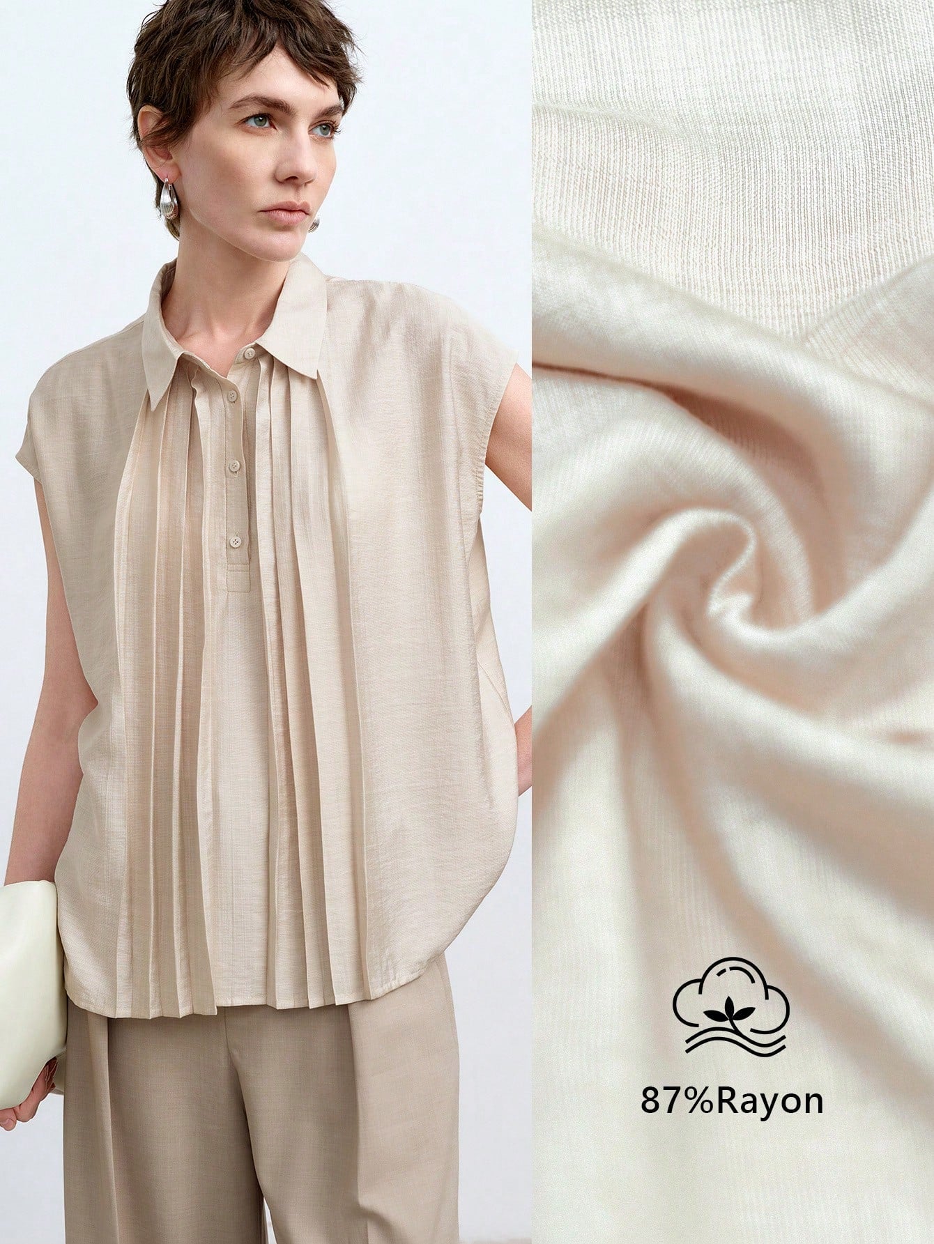 Aalyst Women's Casual & Elegant Solid Color Loose Fit Shirt With Lapel Collar, Half Sleeve & Side Ruching,