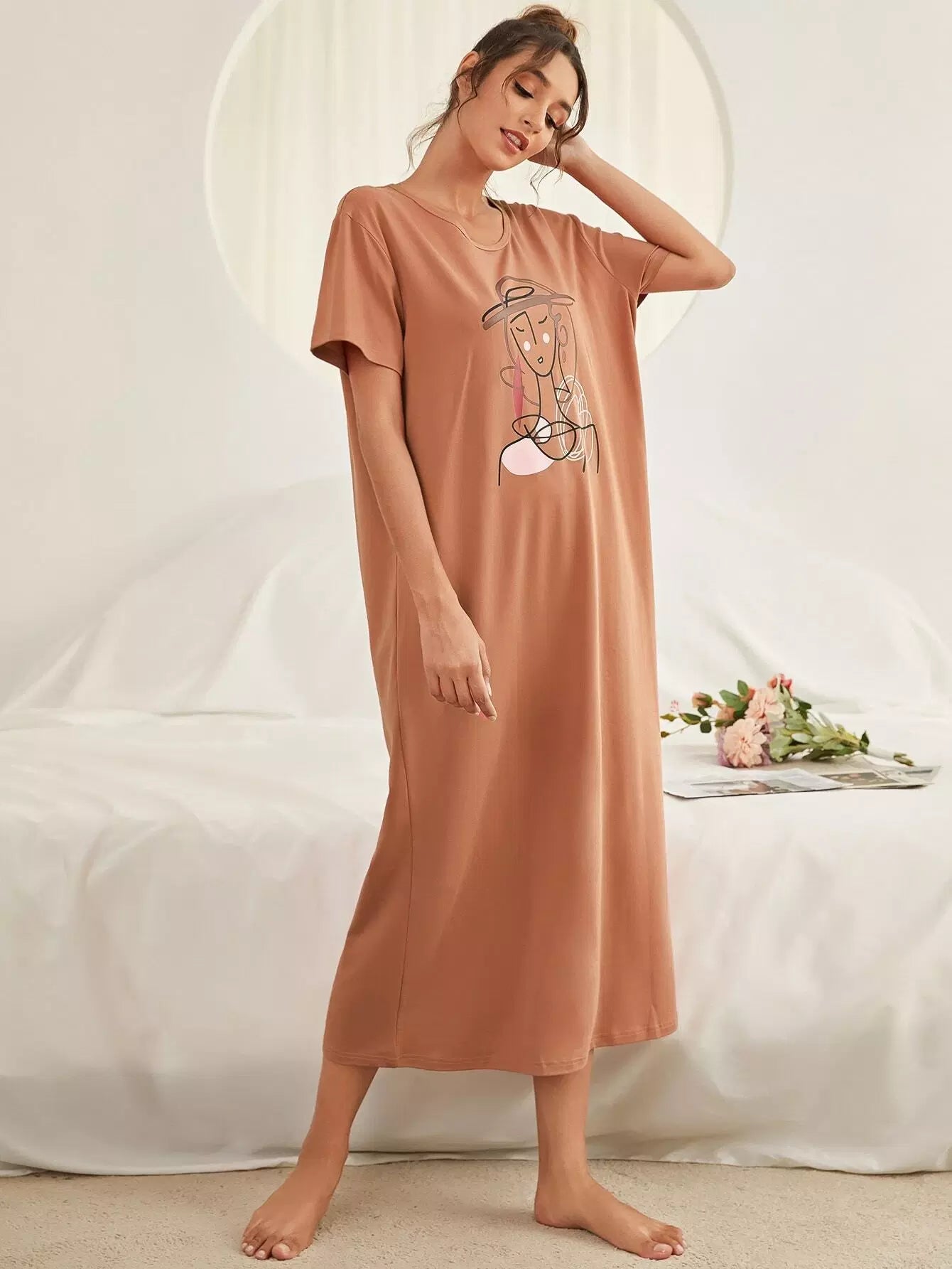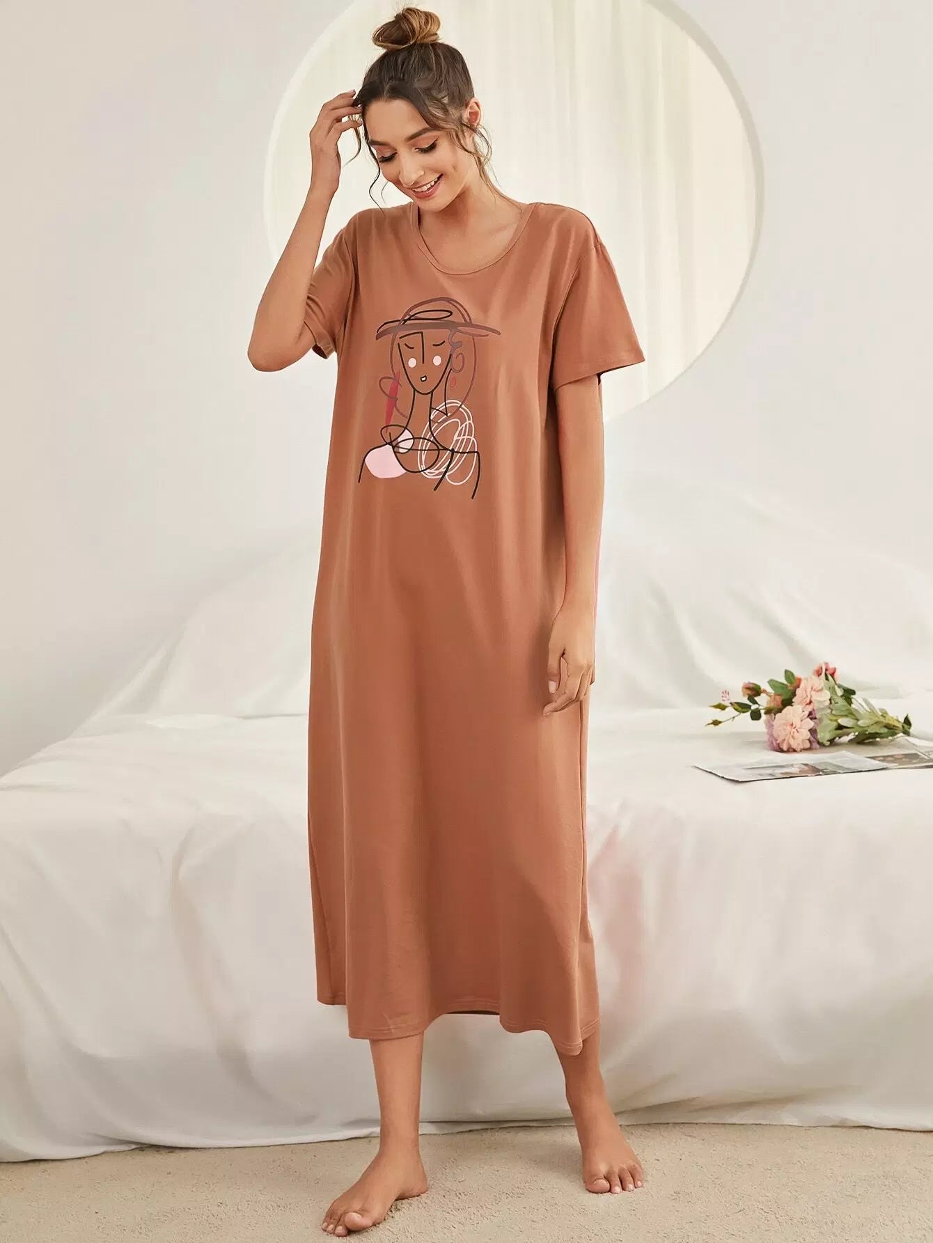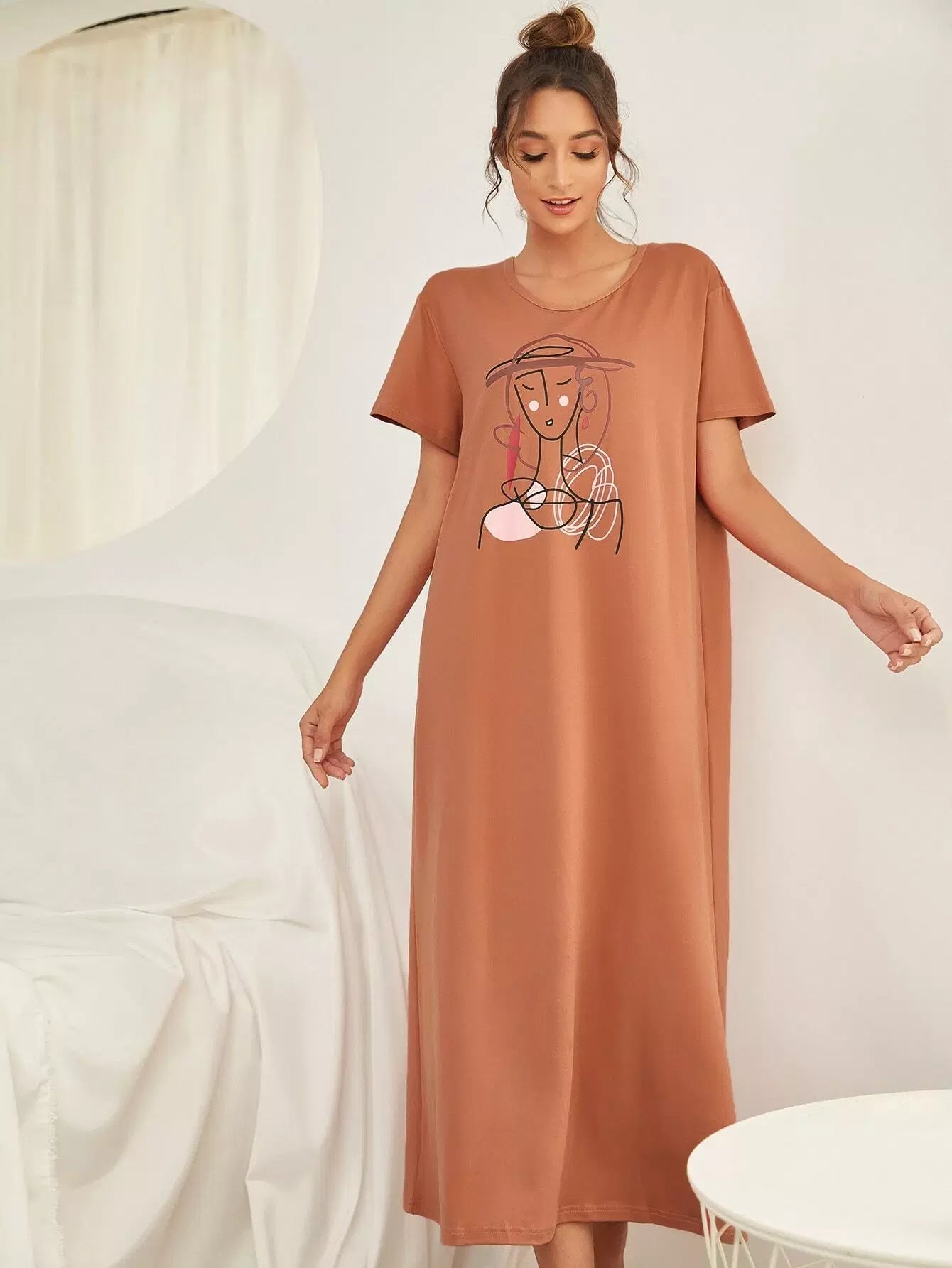 Abstract Figure Graphic Night Dress