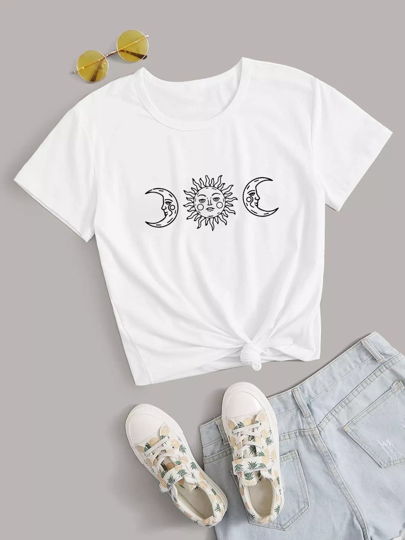 Abstract Sun And Moon Print Tee
