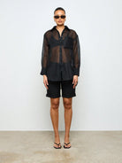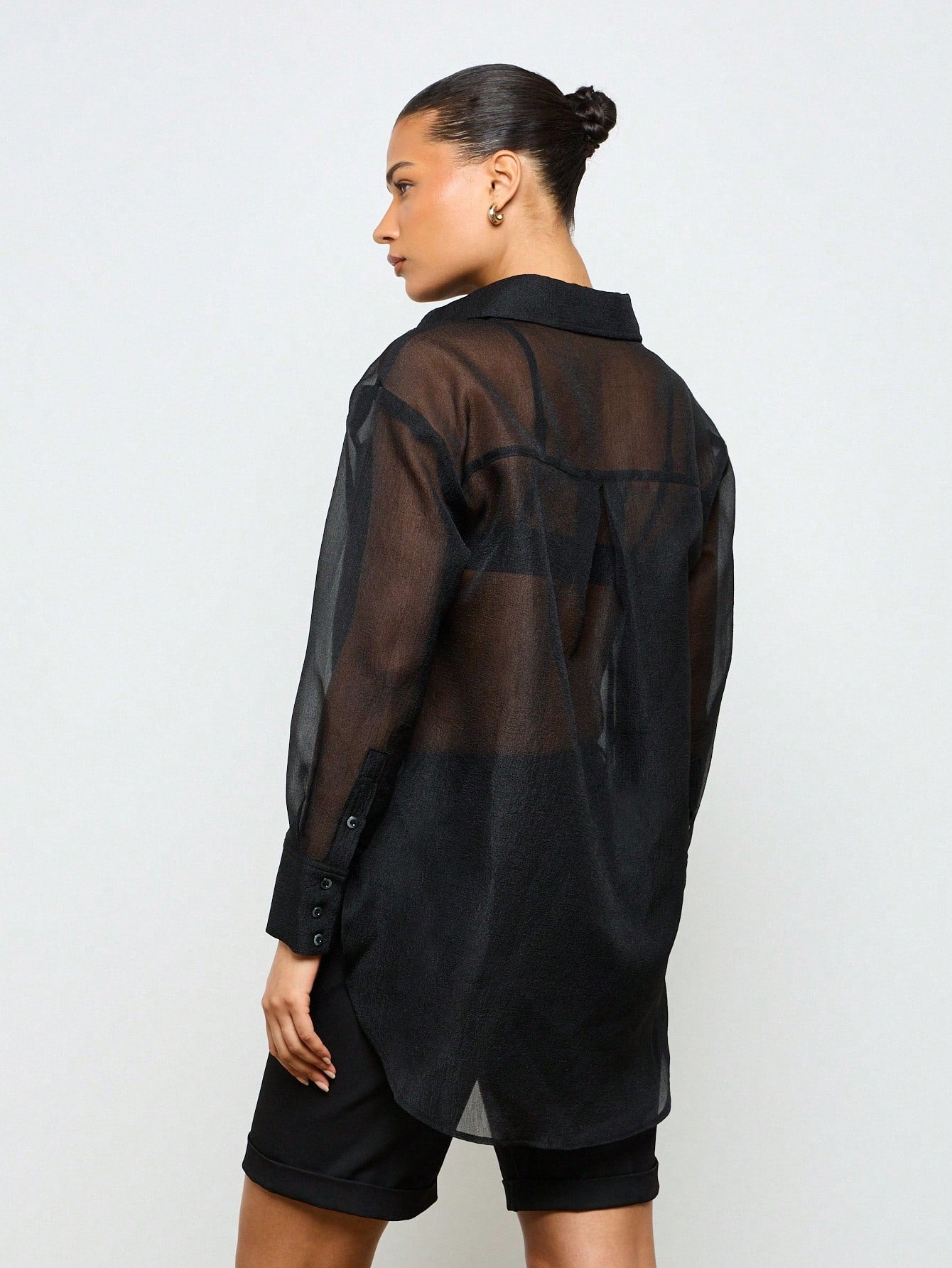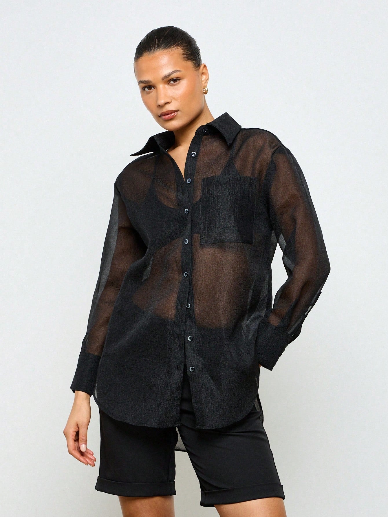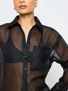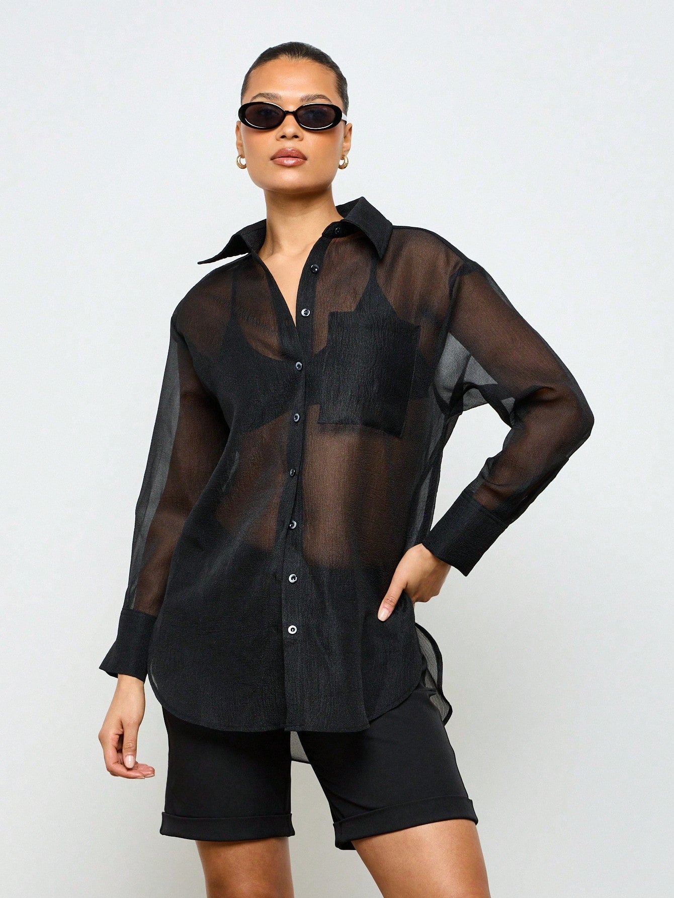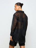 AiiRZ Longline Button-Up Sheer Chiffon Collared Shirt Blouse Oversize Tunic Evening Party Club Top Festival