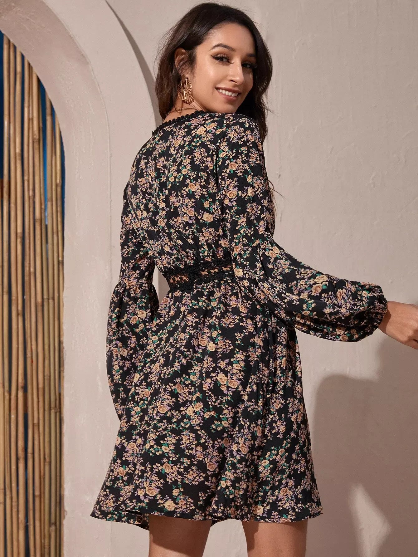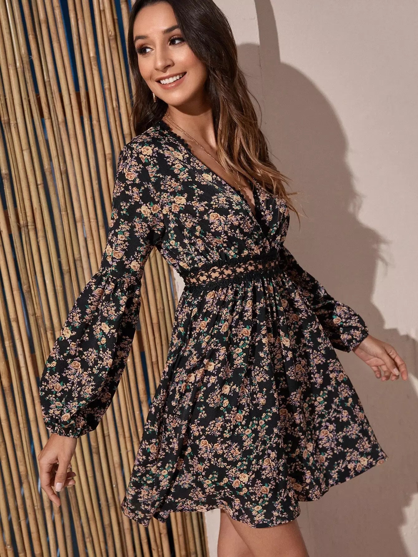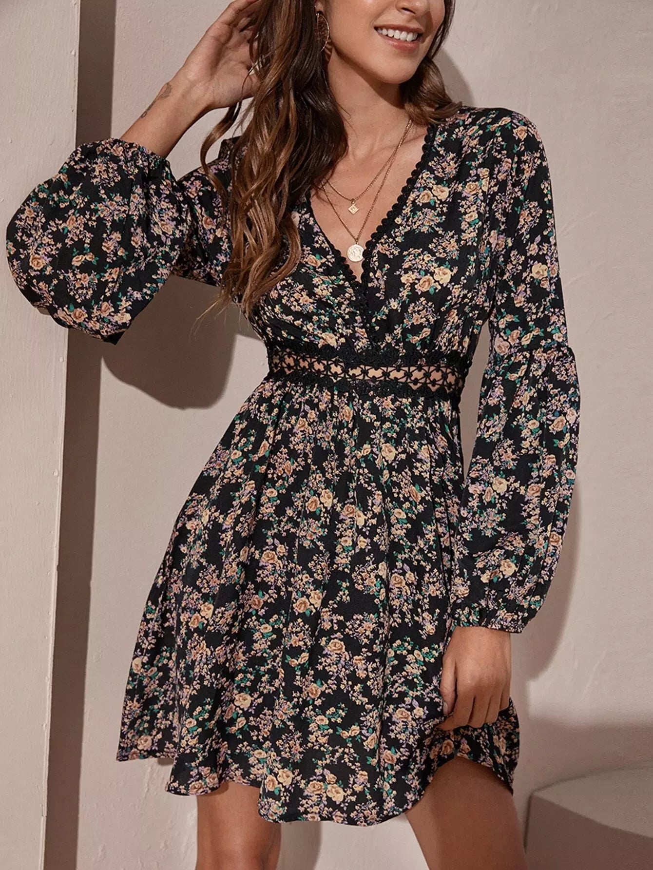 Allover Floral Lace Insert Dress