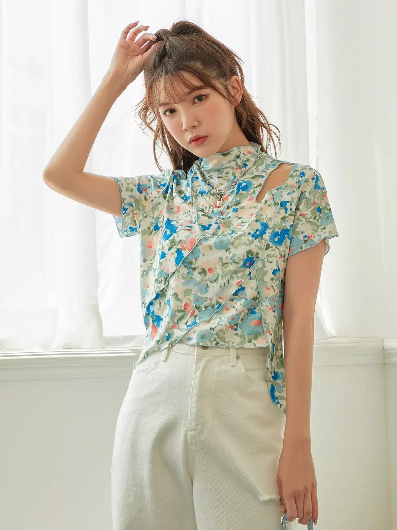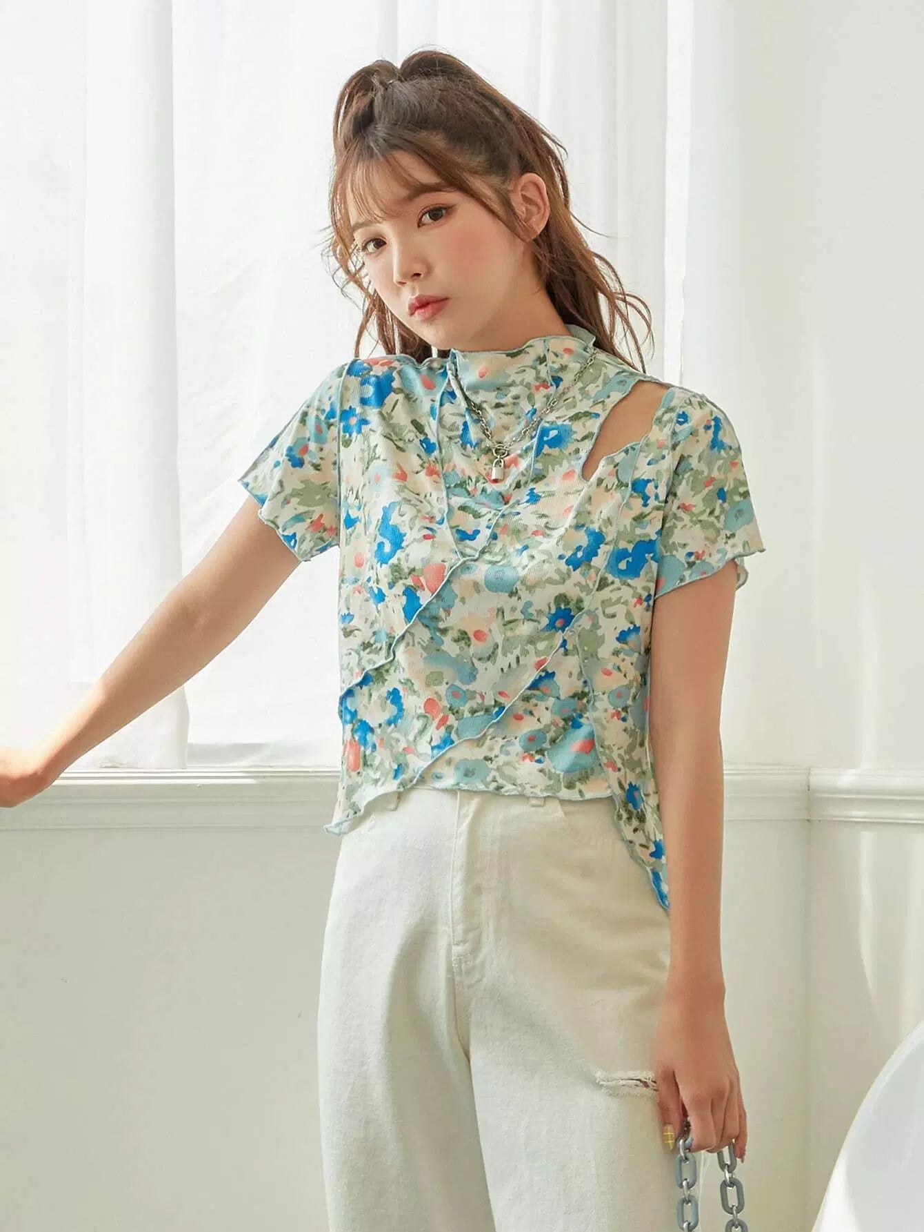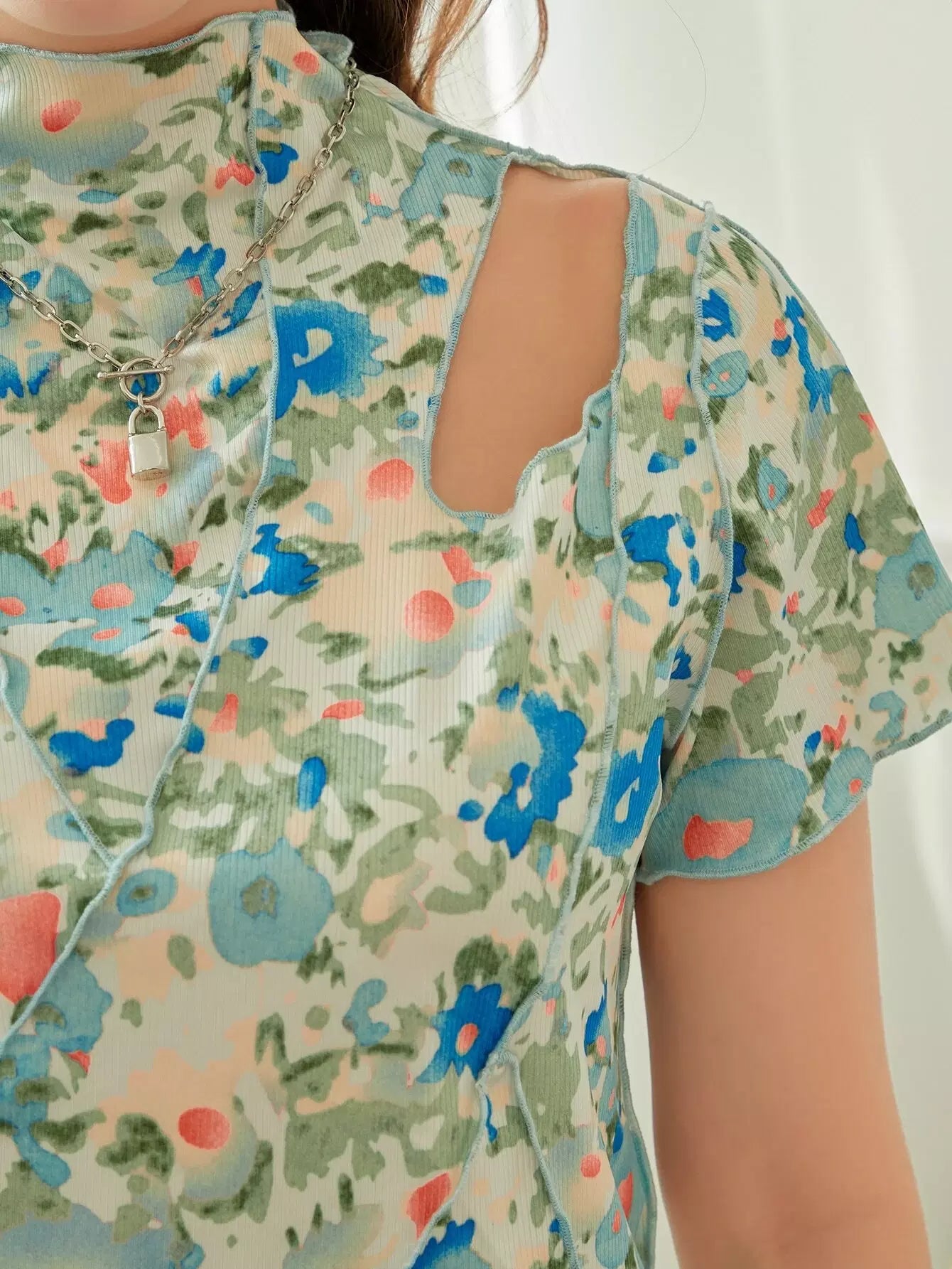 Allover Floral Lettuce Trim Tee