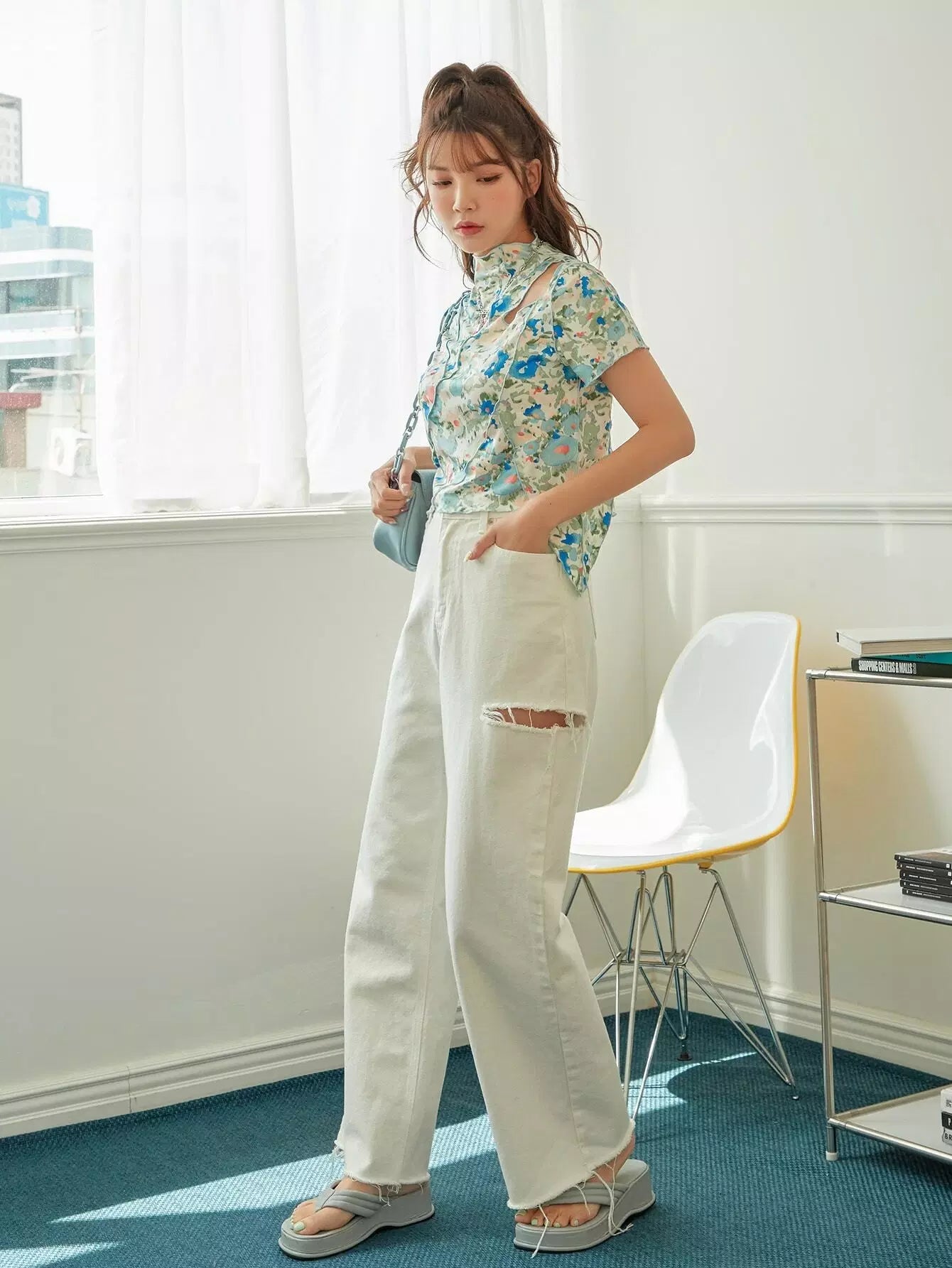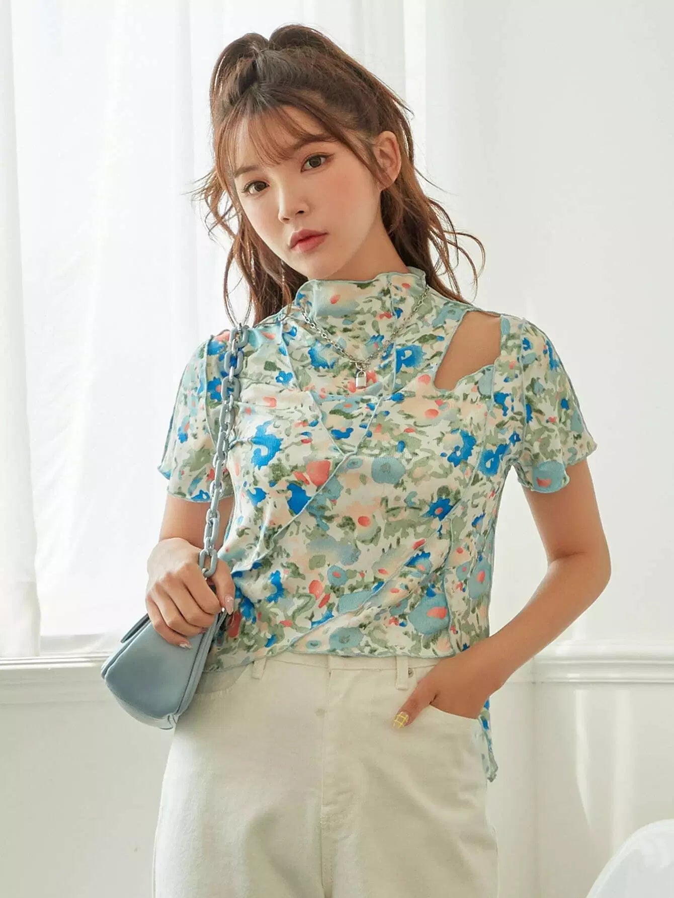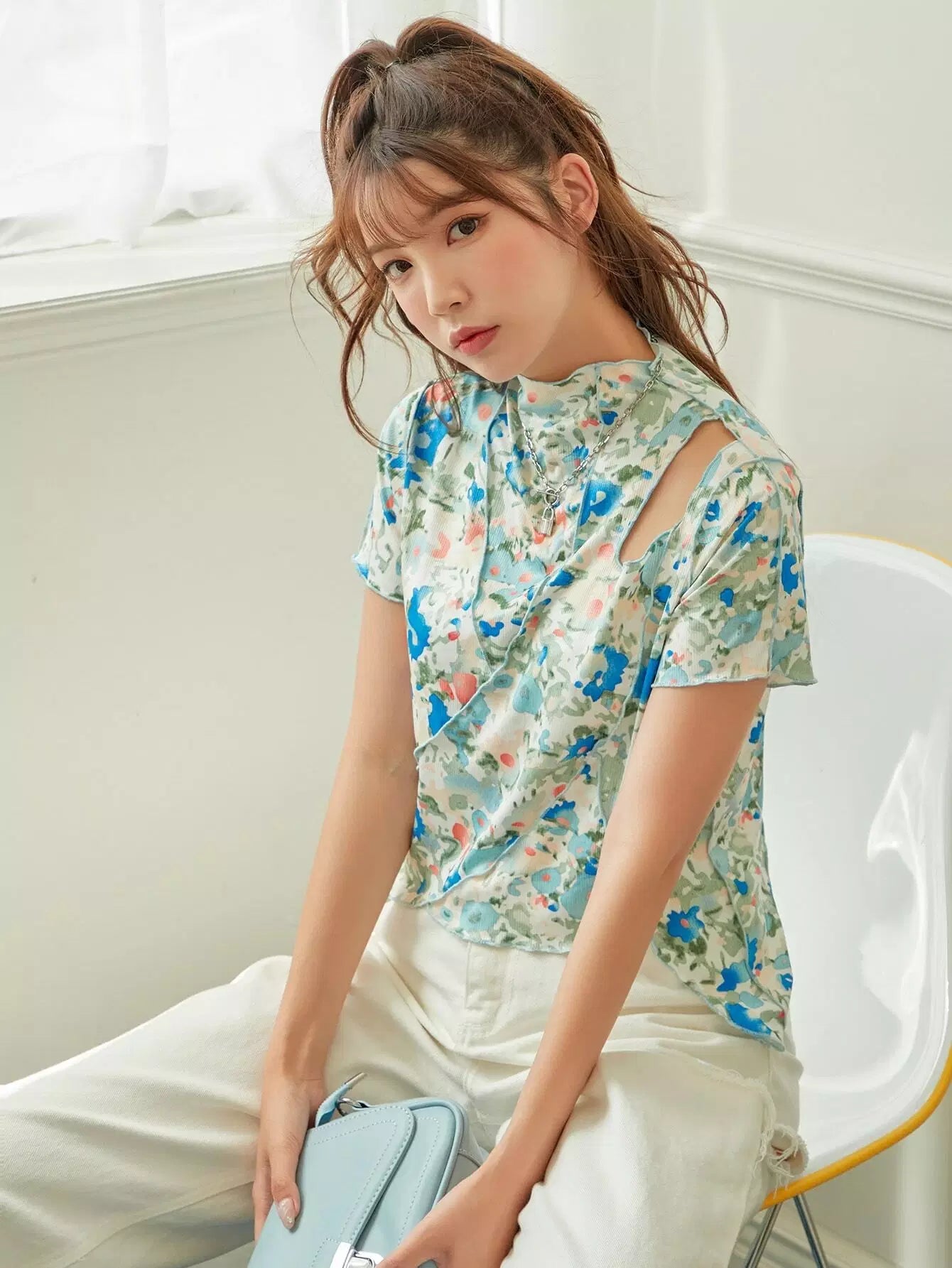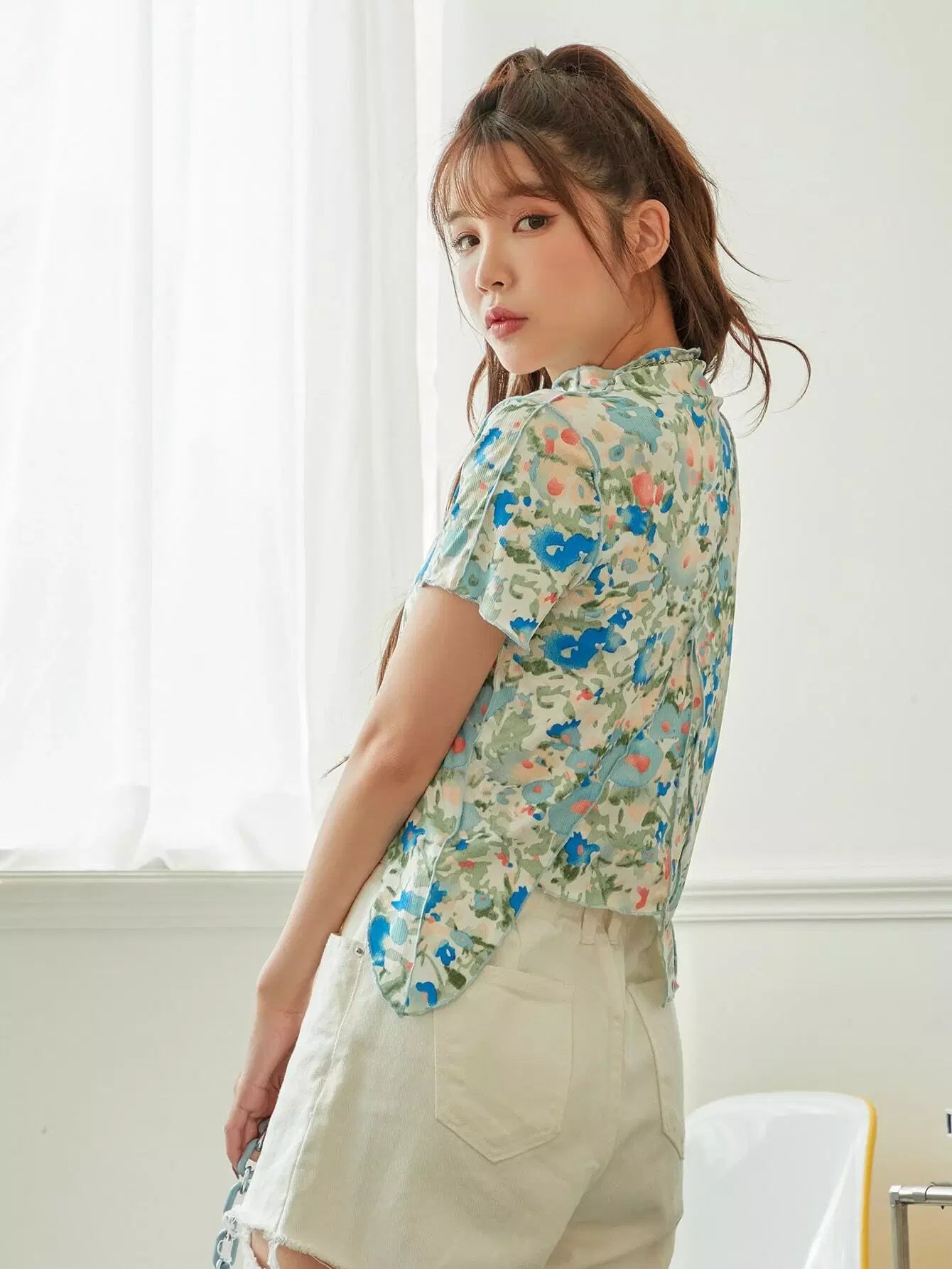 Allover Floral Lettuce Trim Tee
