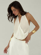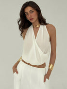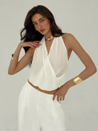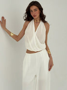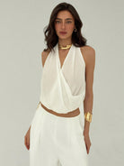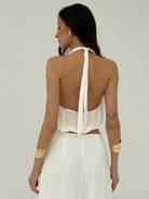 Aloruh Sexy Deep V-Neck Criss-Cross Backless Halter Strap Fashionable Women Blouse